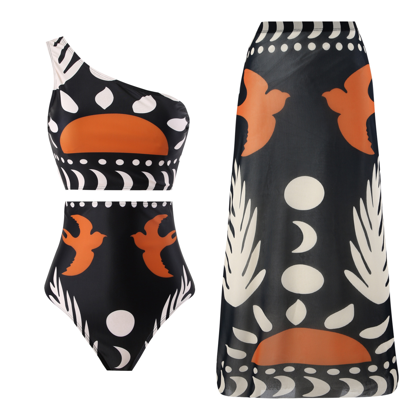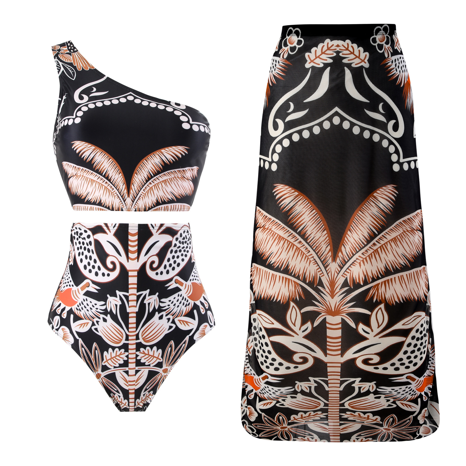 새로운 유럽과 미국의 보헤미안 인쇄 패턴 벨리 커버 슬리밍 수영복 여성 3 피스 분할 수영복 세트