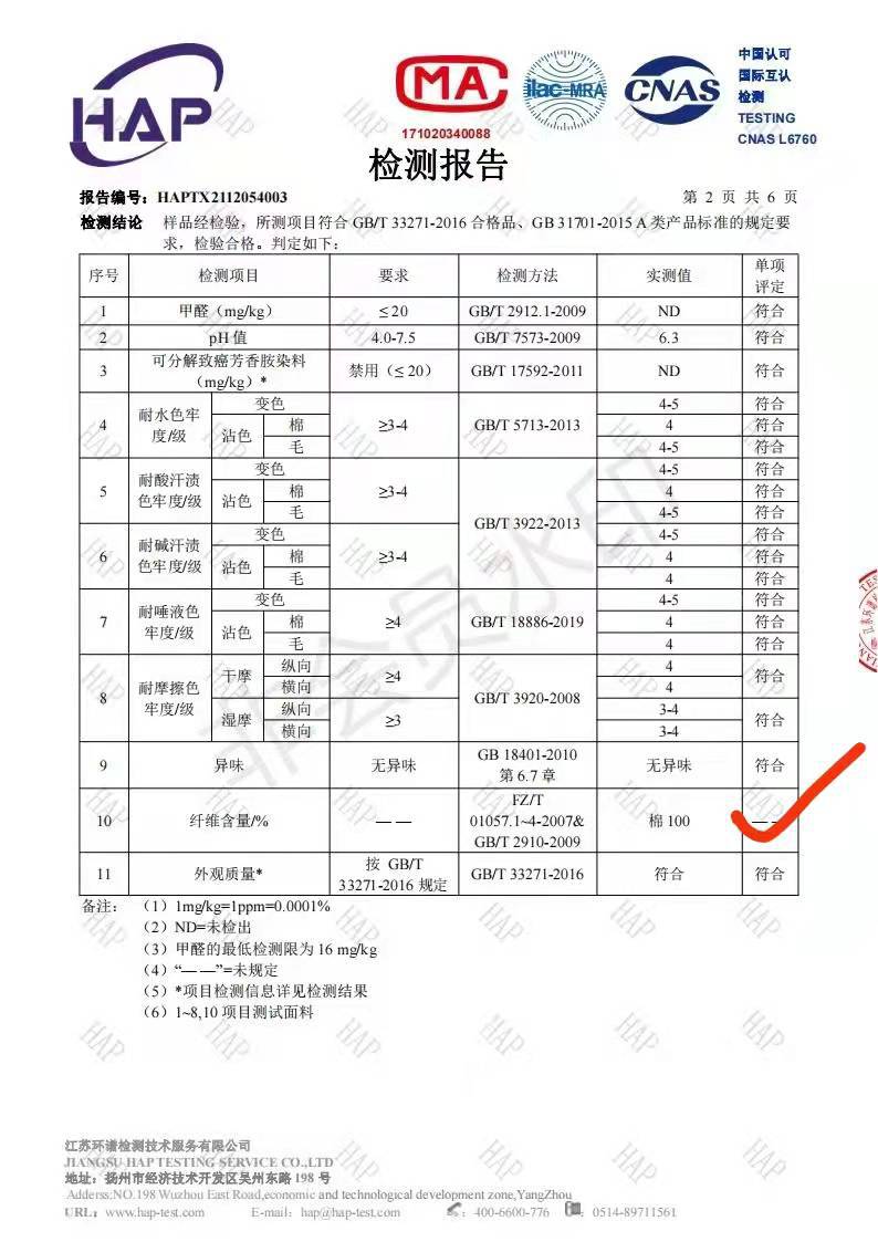 (需要婴童A类质检报告联系客服)