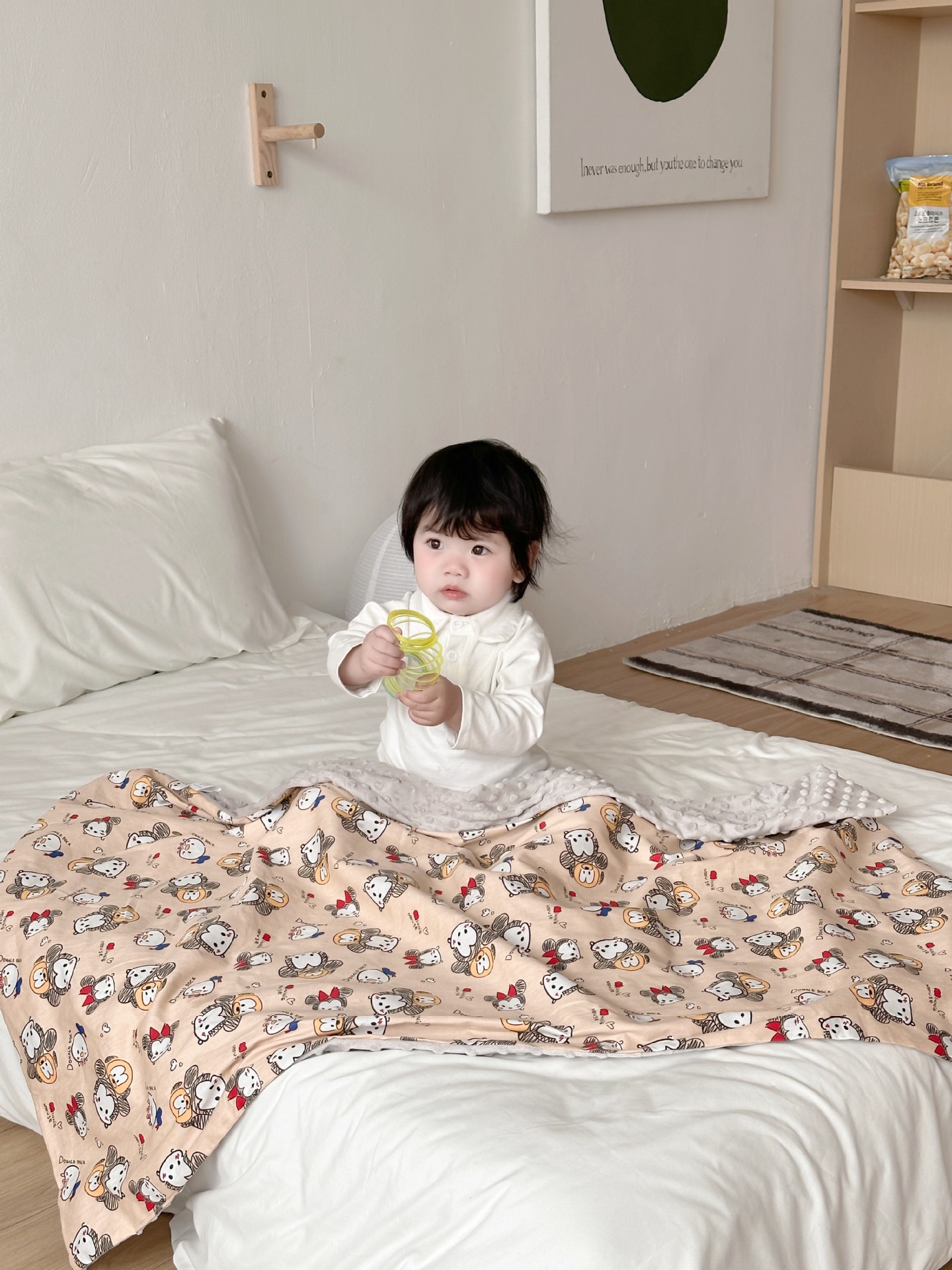 图案面纯棉双层婴童A类豆豆毯