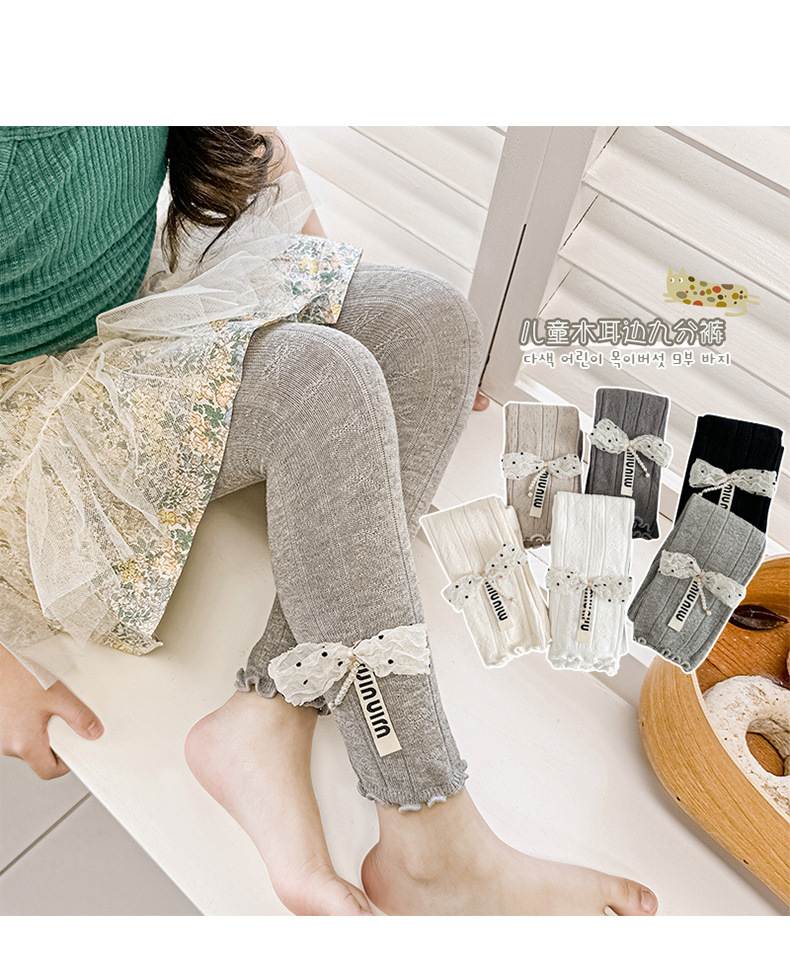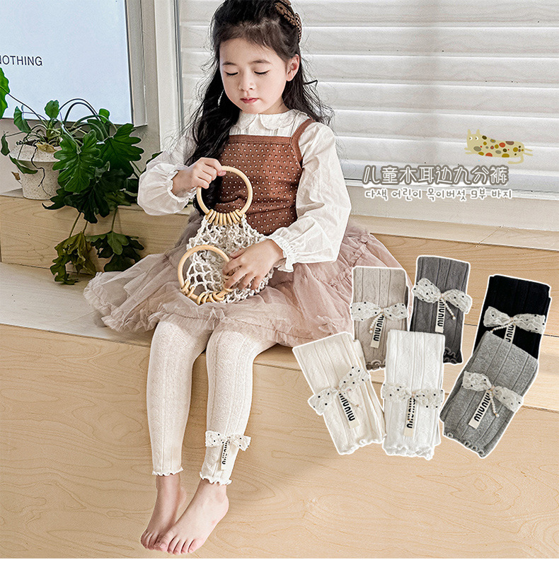 2025 봄 폭발 소녀 나비 어두운 활 나무 귀 9 점 바지 발 활 편지 레깅스스토어 가기