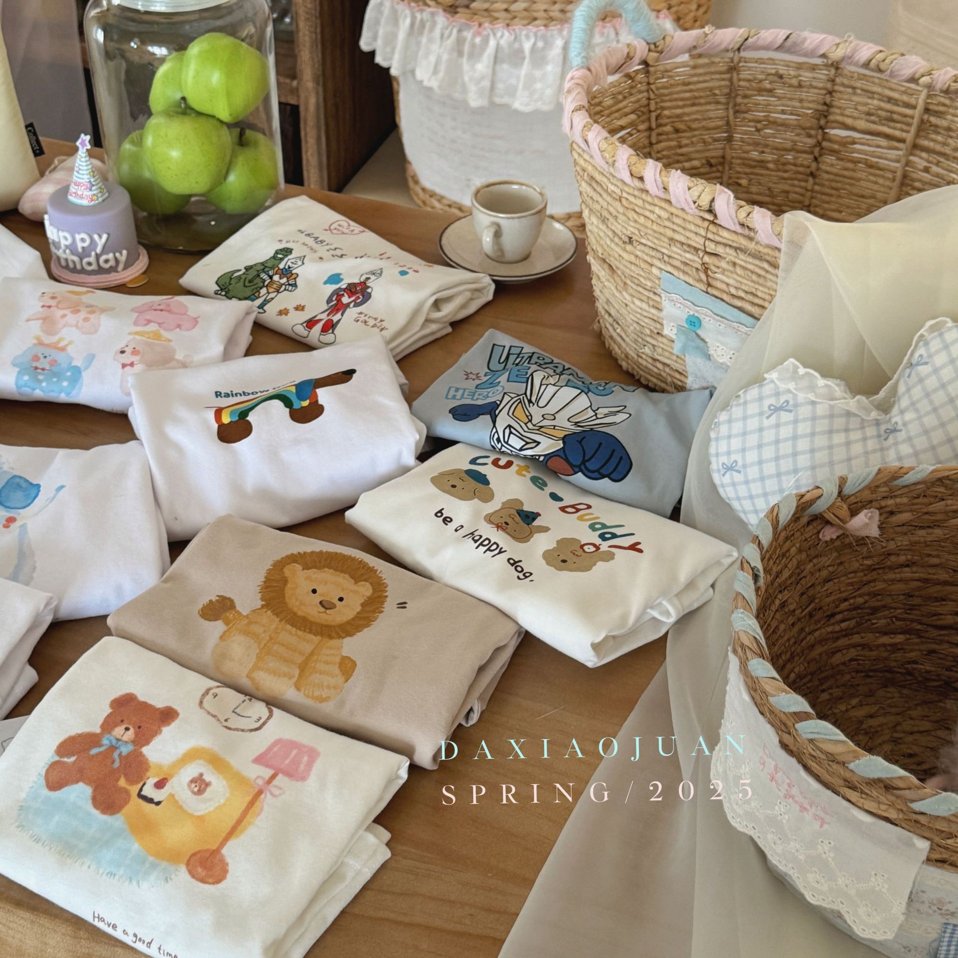 스팟 사이즈 롤 25 봄, 가을 어린이 한국어 만화 탑 아동복 남성과 여성을위한 긴팔 바닥 티셔츠