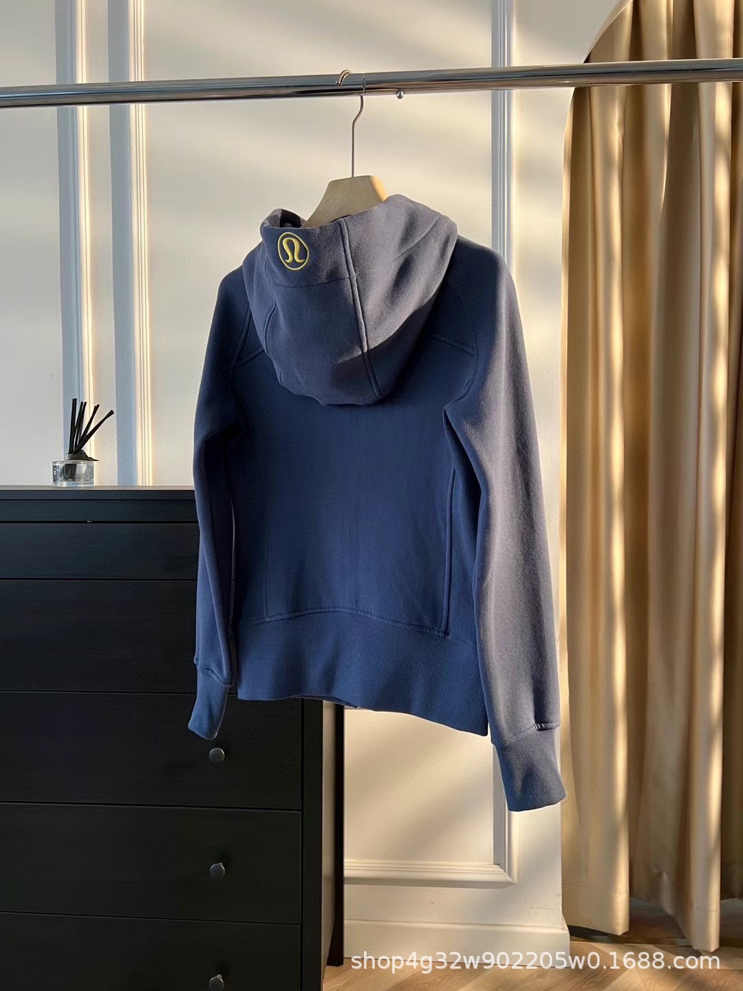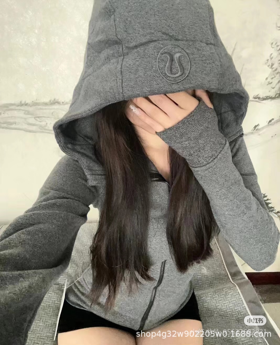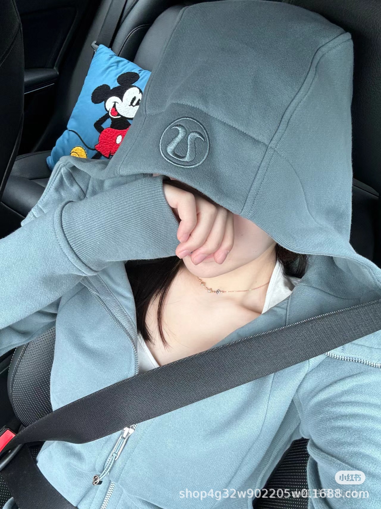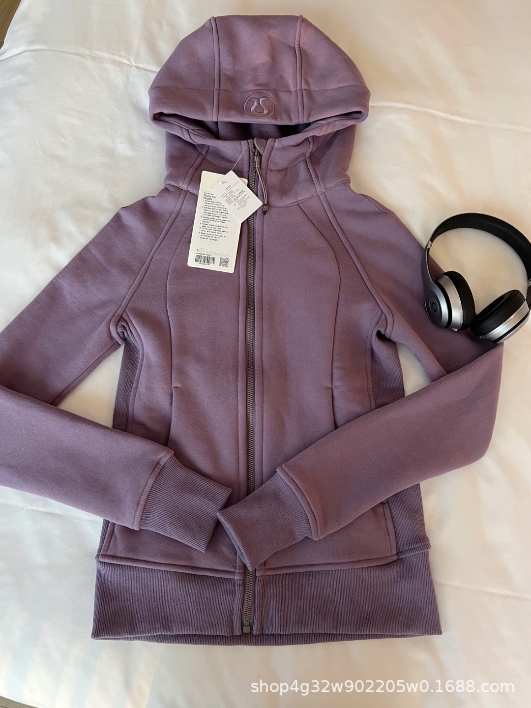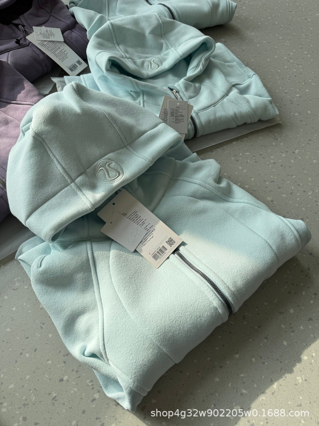Lulu lulu Scuba 가을과 겨울 기모 후드 슬림 핏 스웨트셔츠 풀 지퍼 두꺼운 코튼 요가 피트니스 세트스토어 가기