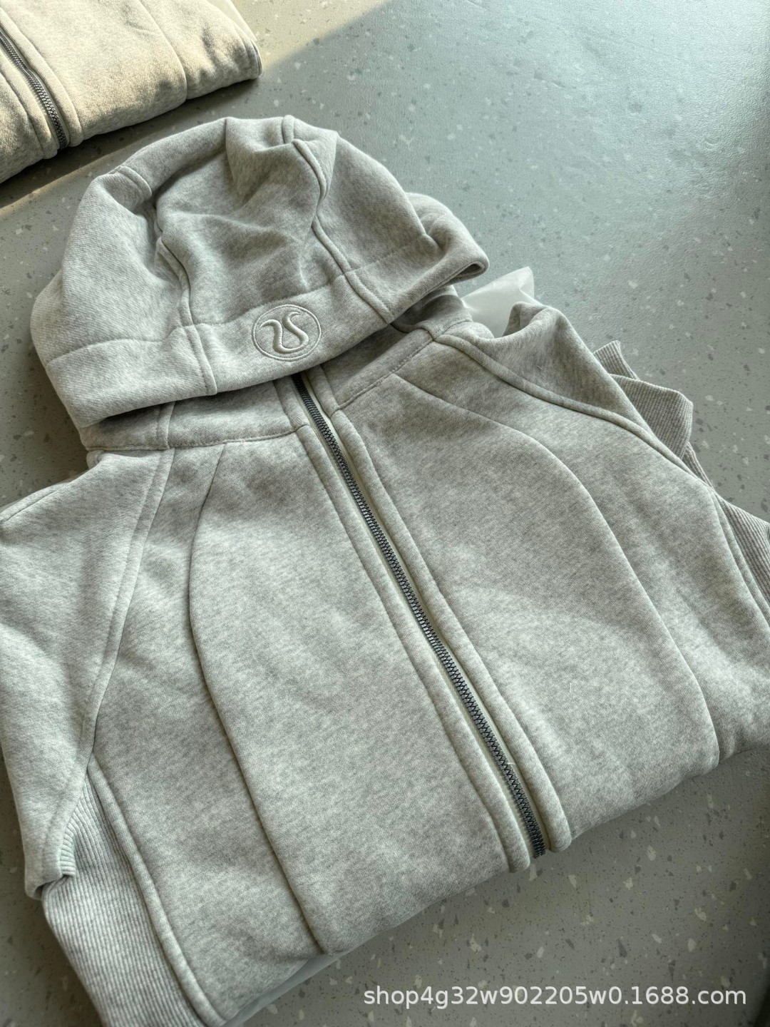 Lulu lulu Scuba 가을과 겨울 기모 후드 슬림 핏 스웨트셔츠 풀 지퍼 두꺼운 코튼 요가 피트니스 세트