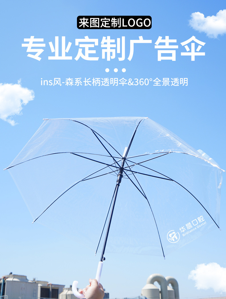 학생, 성인 및 어린이를 위한 작고 신선한 투명 우산, 인터넷 연예인 모델, 긴 손잡이 우산, 광고 우산, 인쇄된 로고, 경량스토어 가기