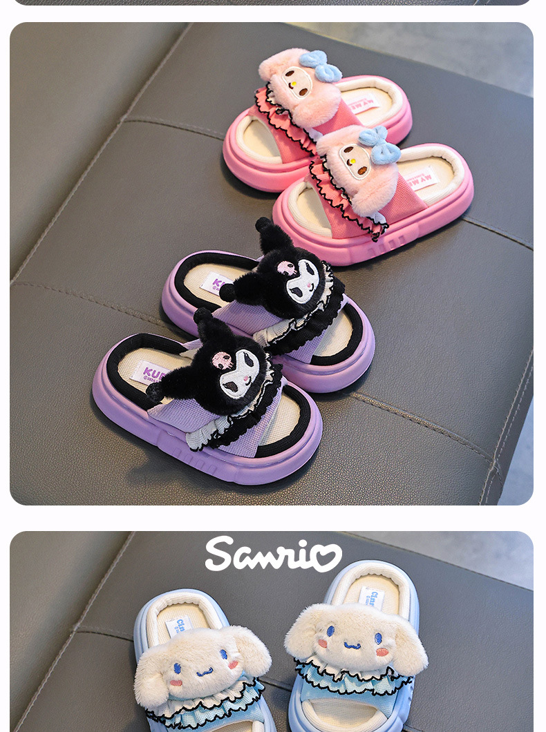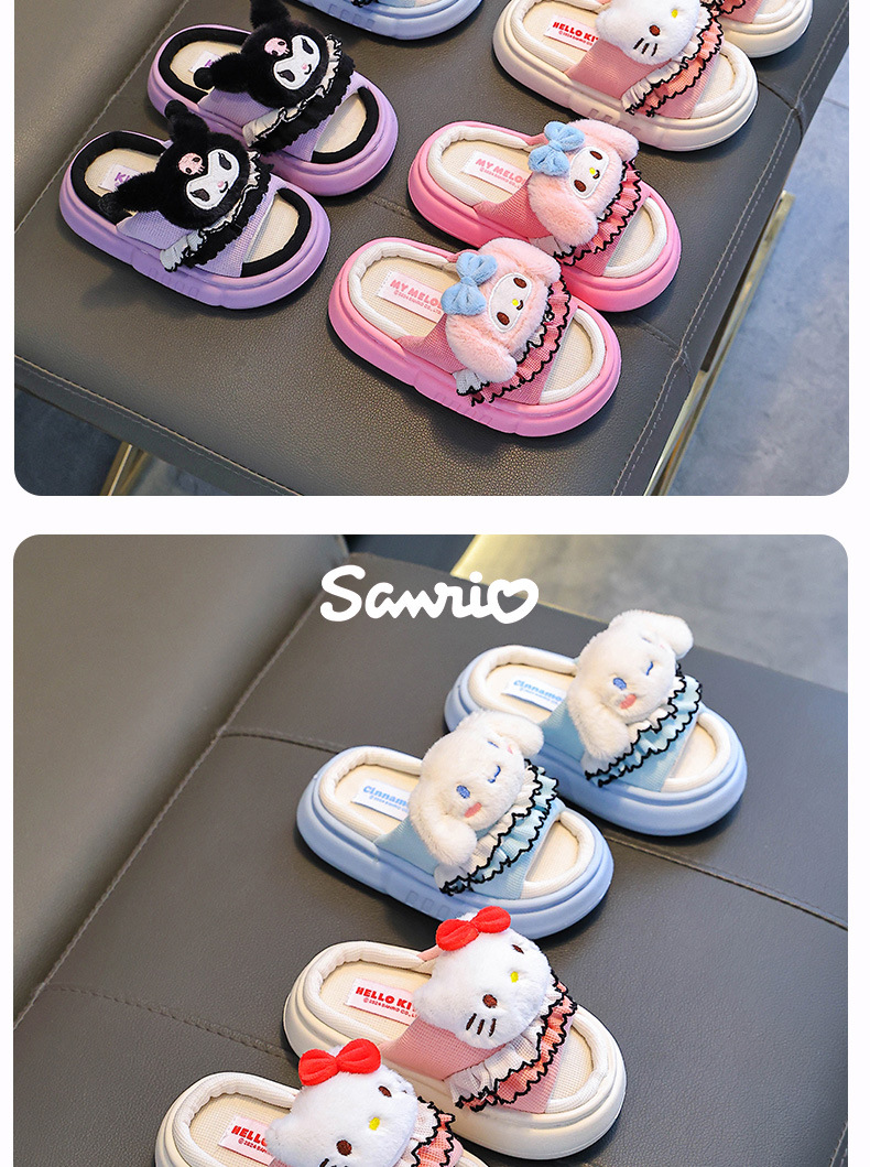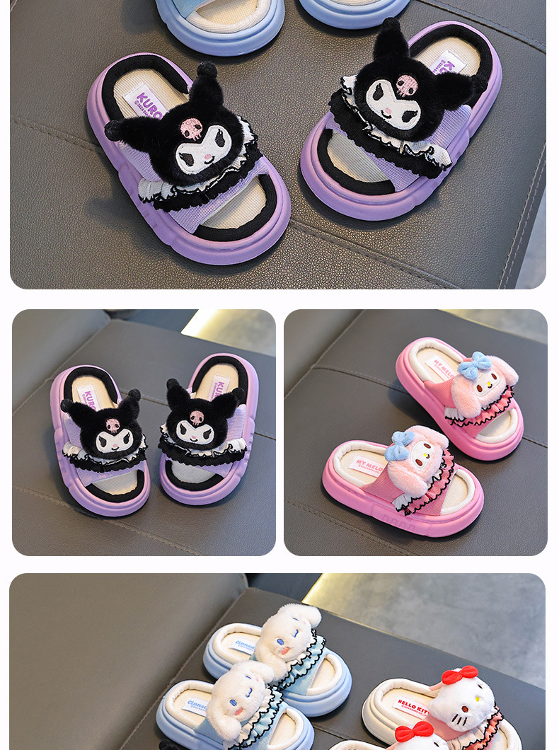 쿠로미 봄, 가을 어린이 린넨 슬리퍼 소년 소녀용 미끄럼 방지 부모-자식 바닥 슬리퍼스토어 가기