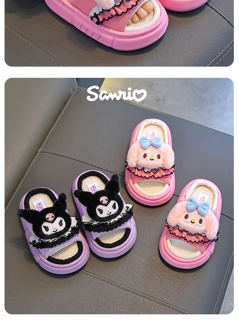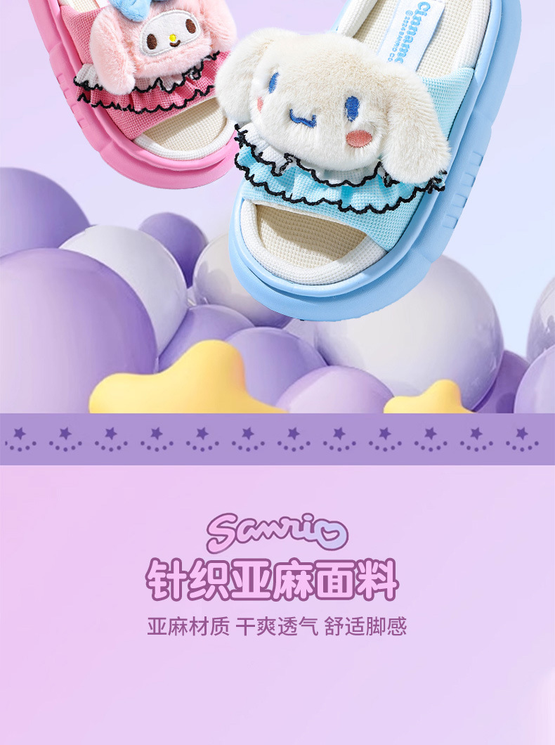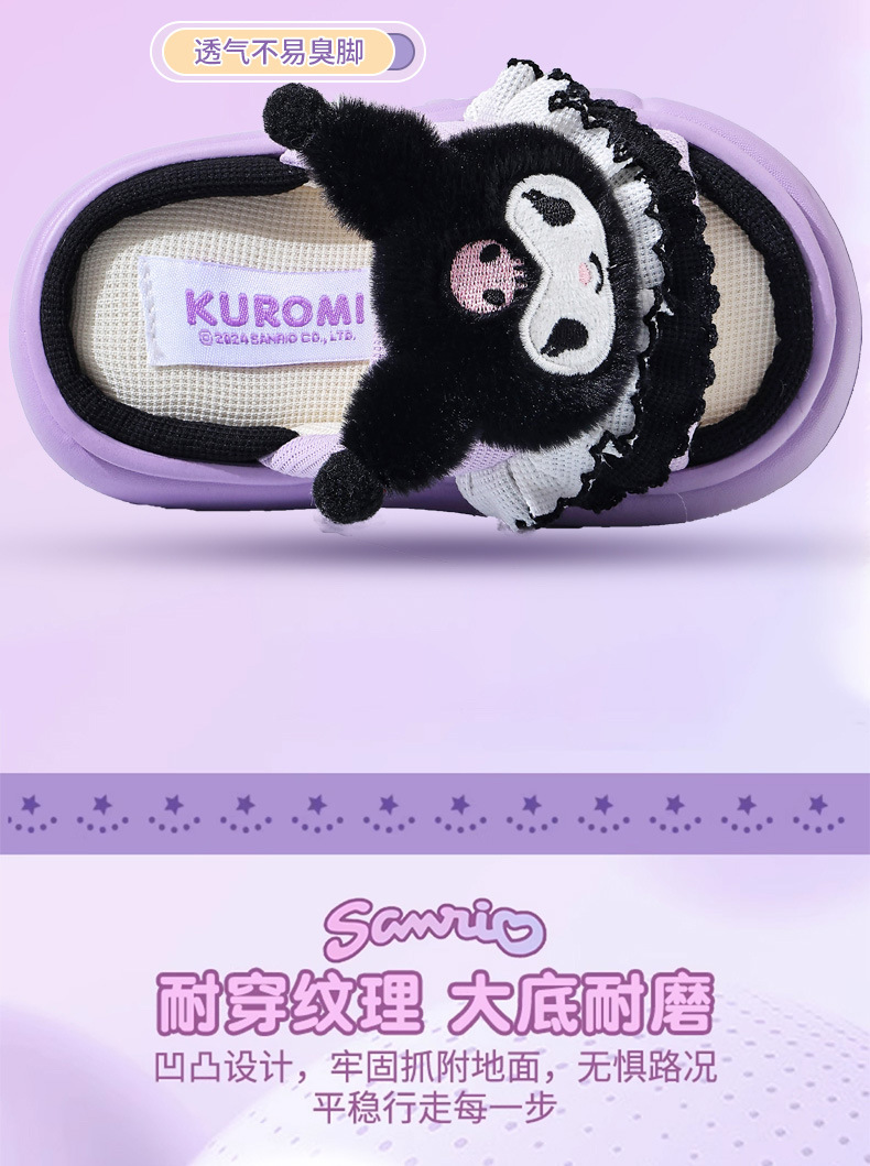 쿠로미 봄, 가을 어린이 린넨 슬리퍼 소년 소녀용 미끄럼 방지 부모-자식 바닥 슬리퍼