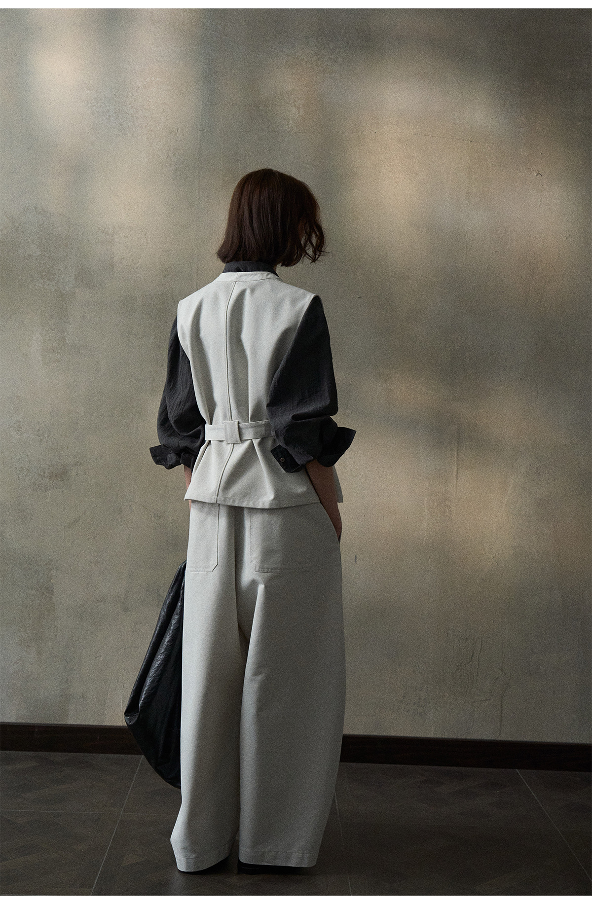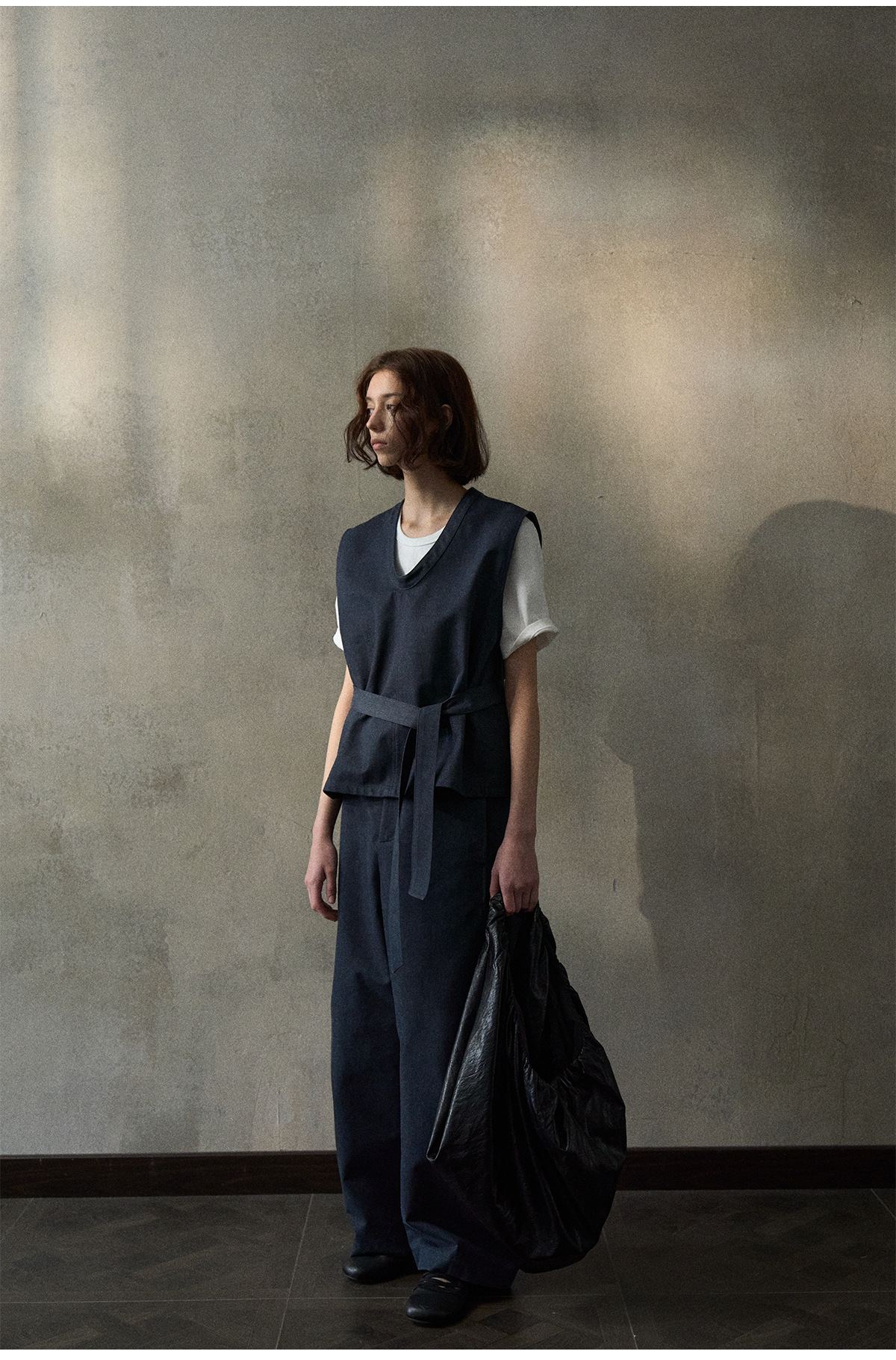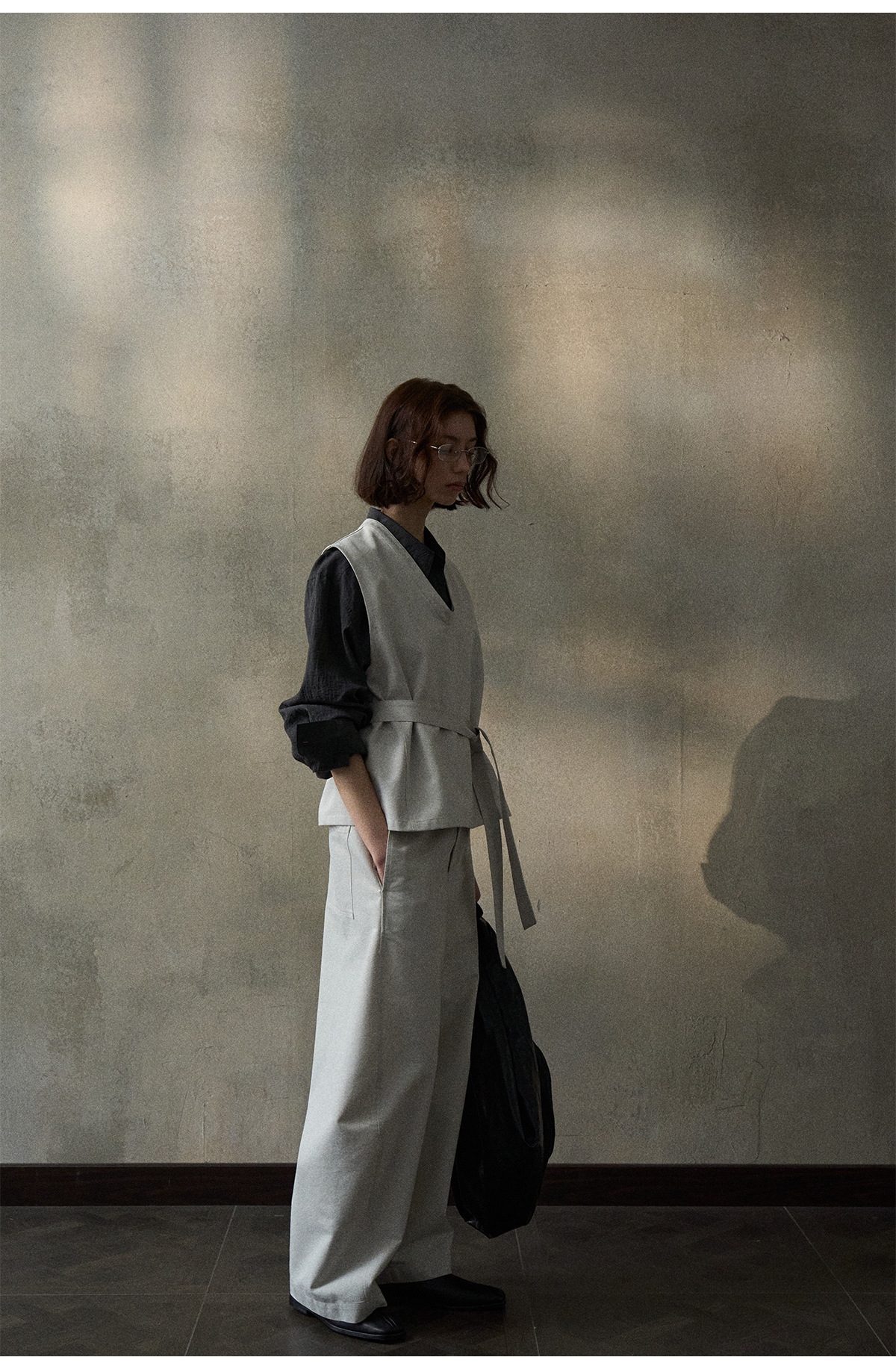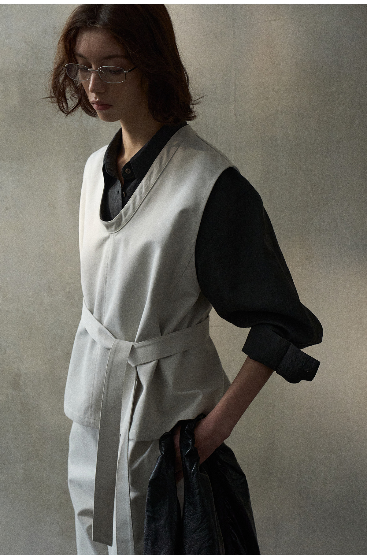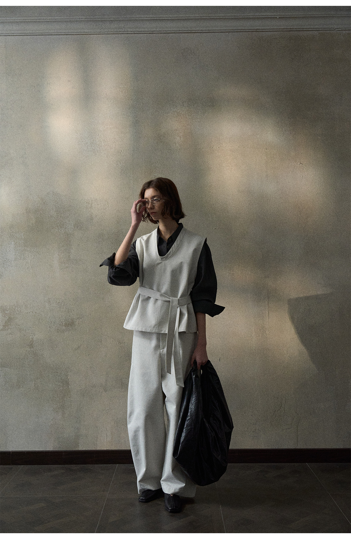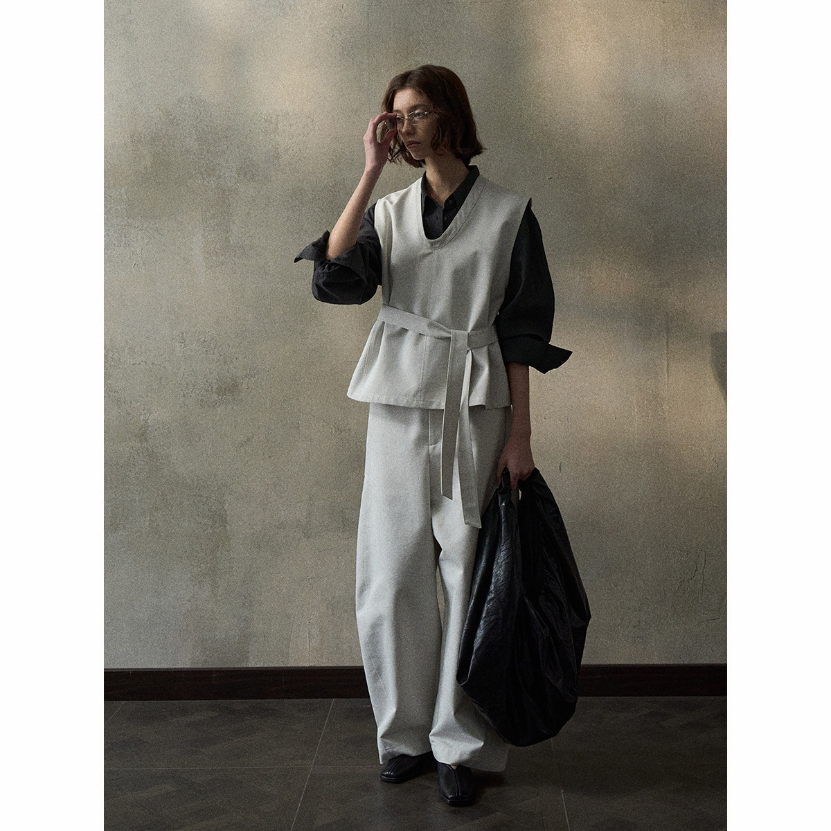 【識幾】데님 스타일 풀오버 조끼 봄 신상 심플 출퇴근용 끈 V넥 탑 여성용 M8374
