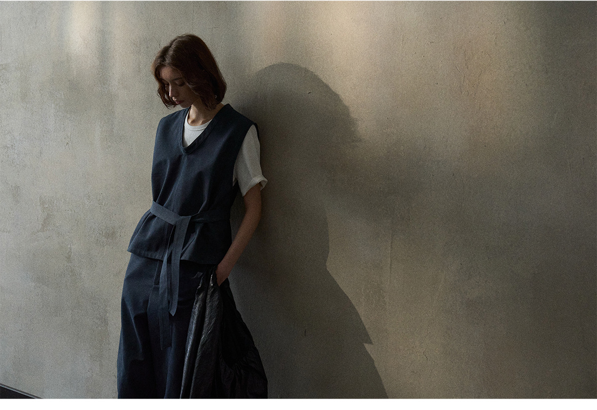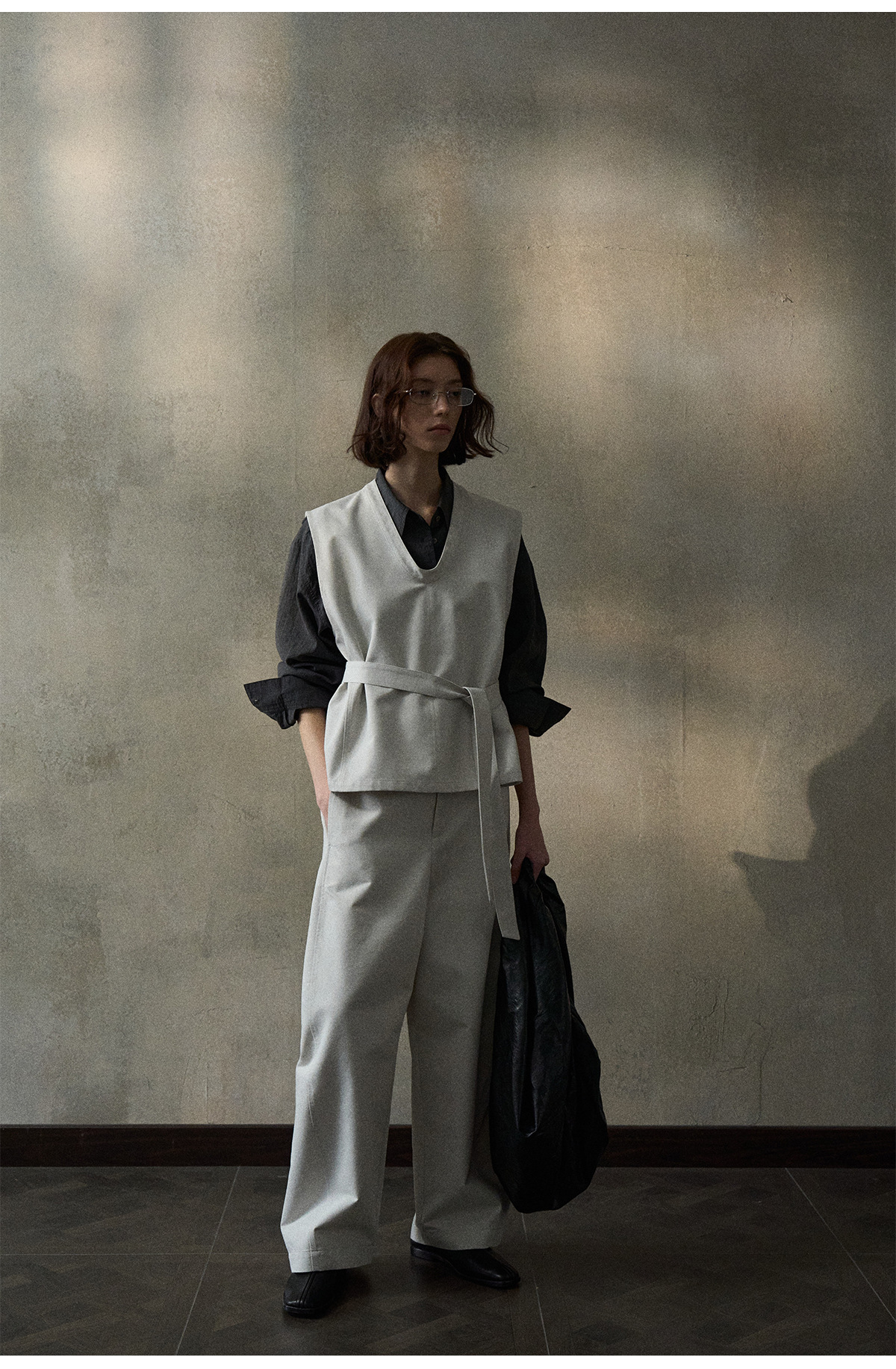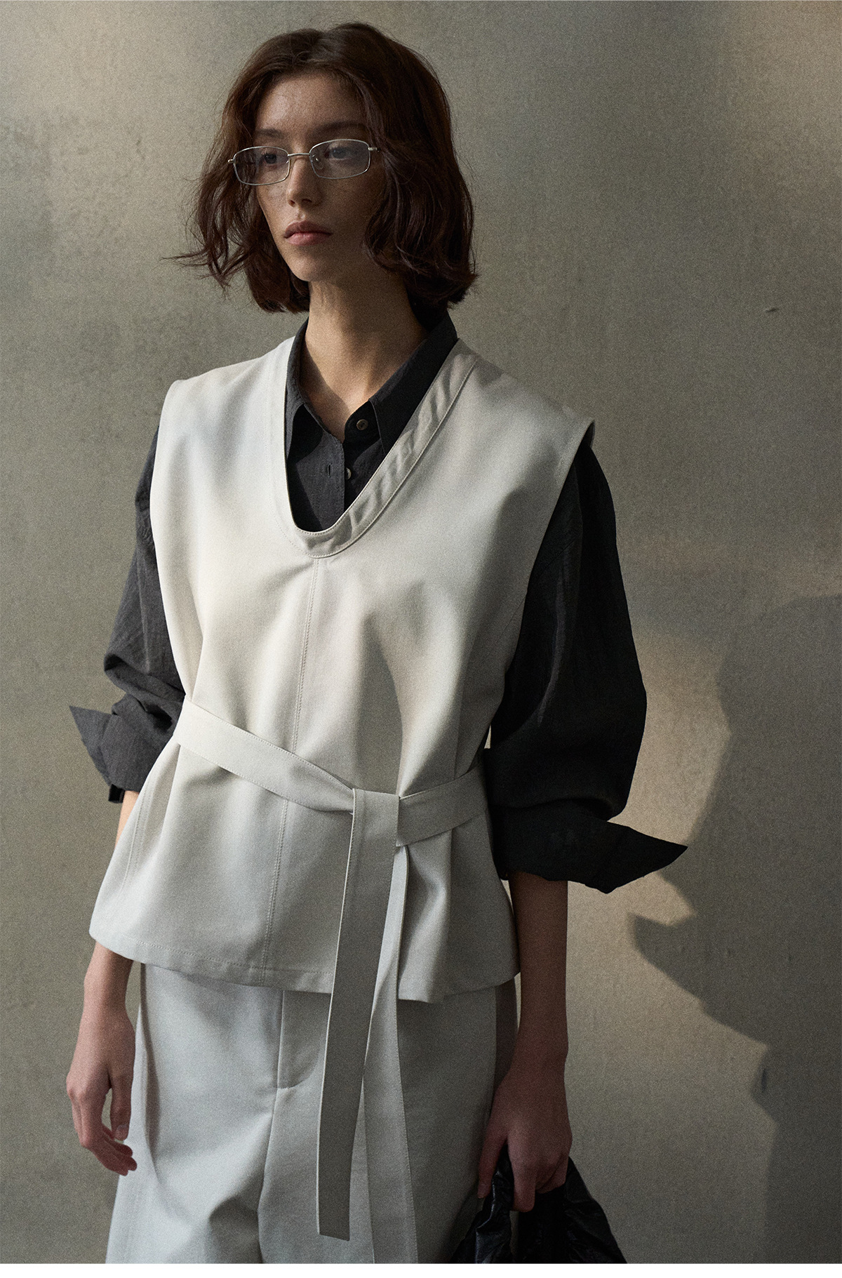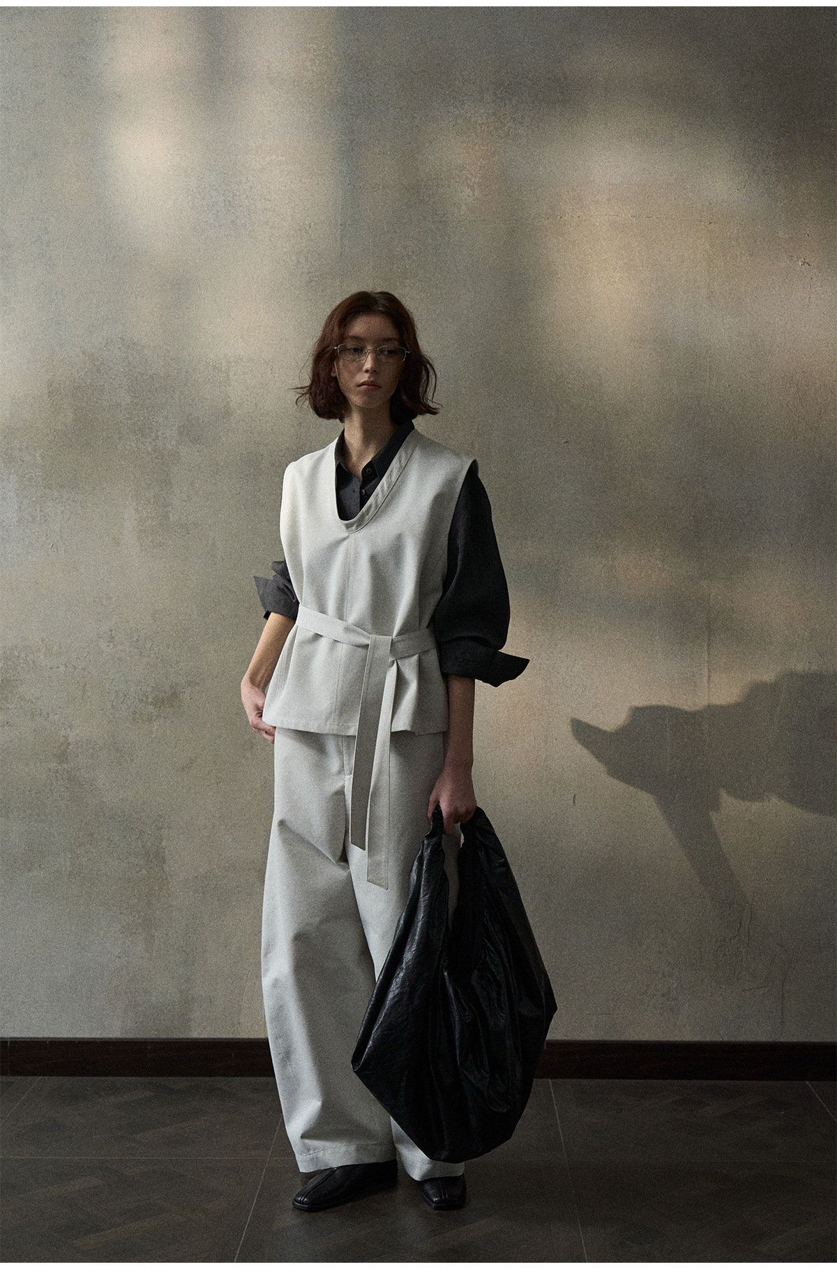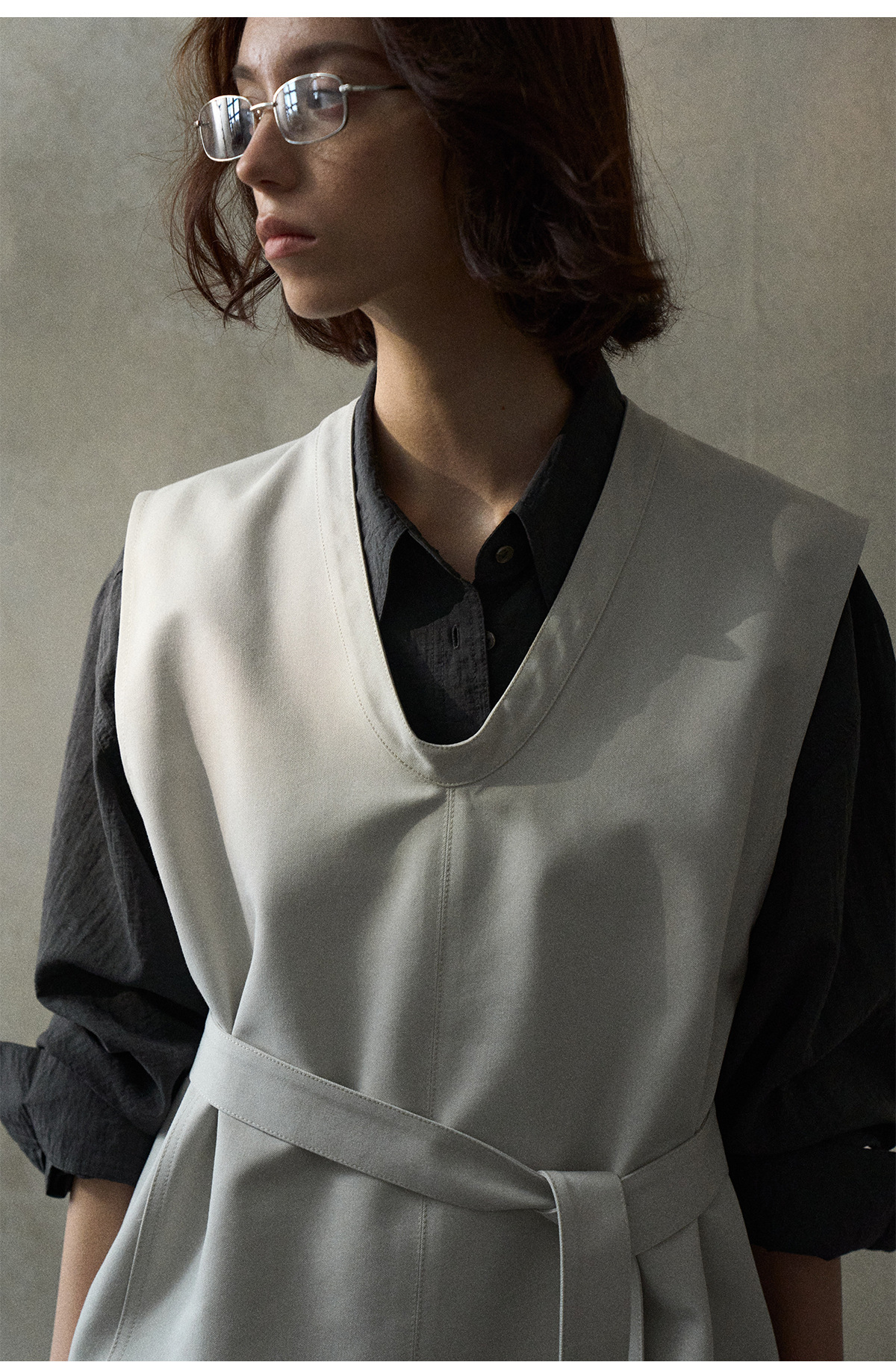【識幾】데님 스타일 풀오버 조끼 봄 신상 심플 출퇴근용 끈 V넥 탑 여성용 M8374