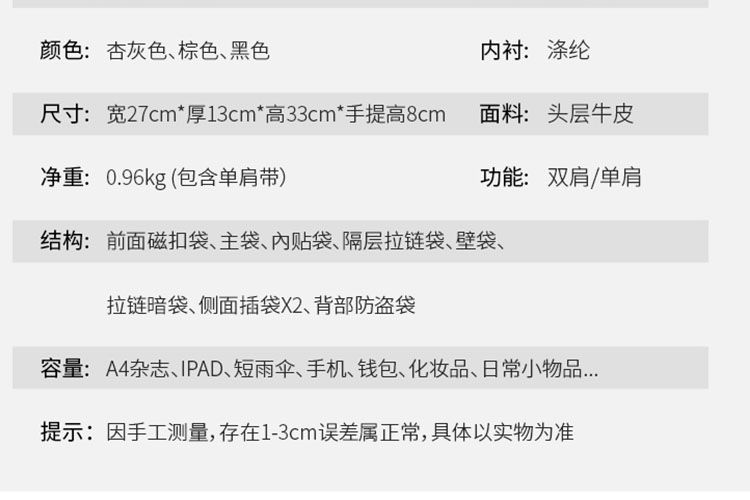 제조사 직송 여성용 천연 가죽 백팩 2026 대용량 백팩 1등급 소가죽 여성용 새 모델 여행 가방