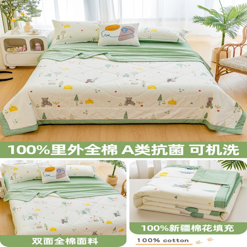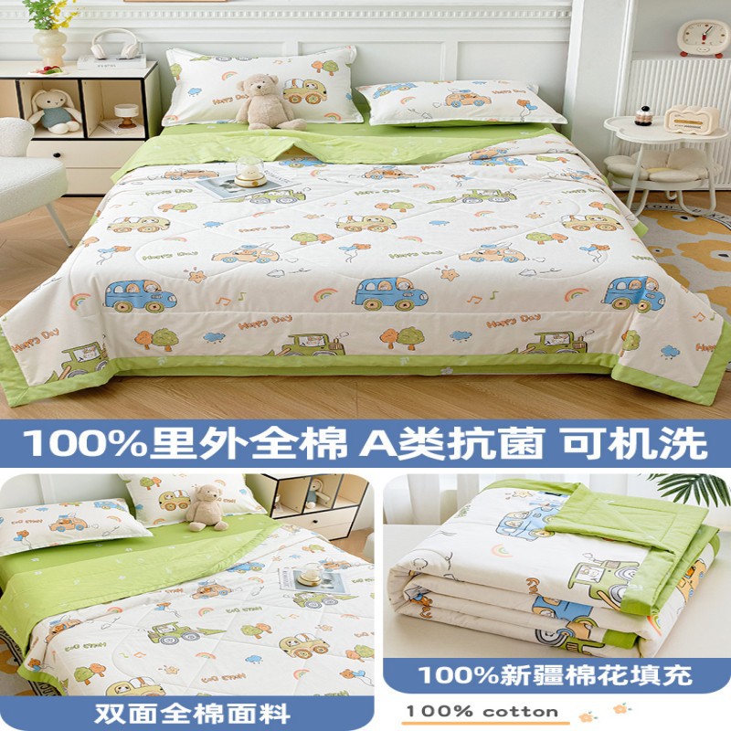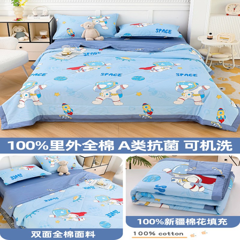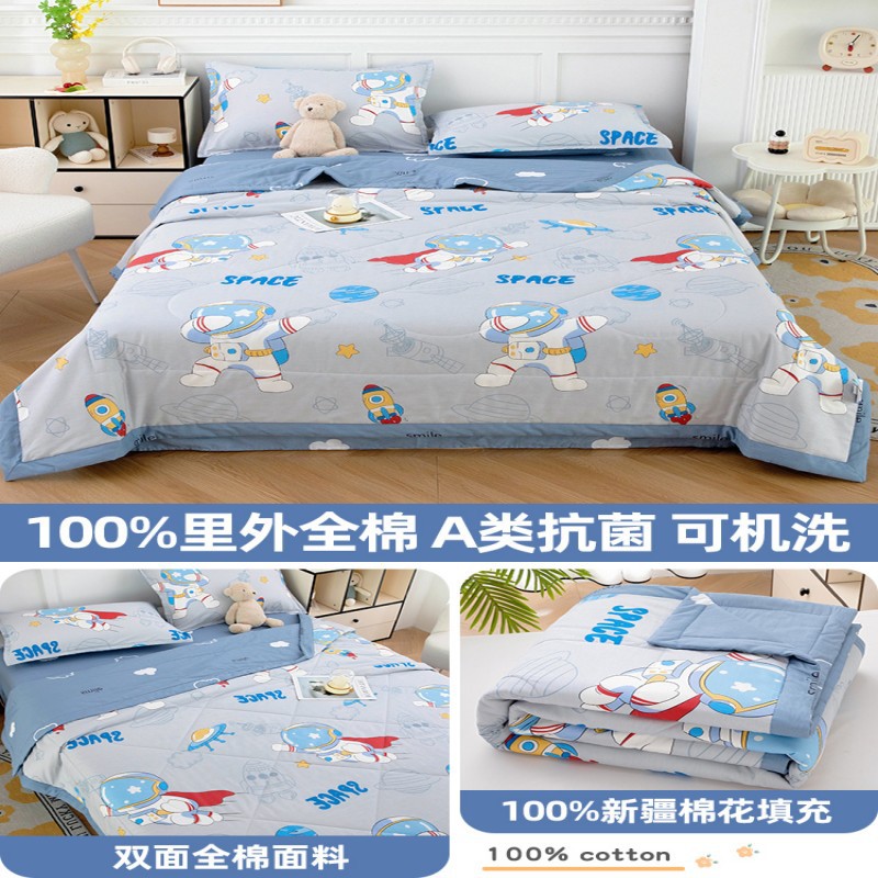 100% 순수 면 어린이 여름 이불 에어컨 이불 유치원 여름 얇은 이불 세척 가능한 여름 이불 봄과 가을 이불