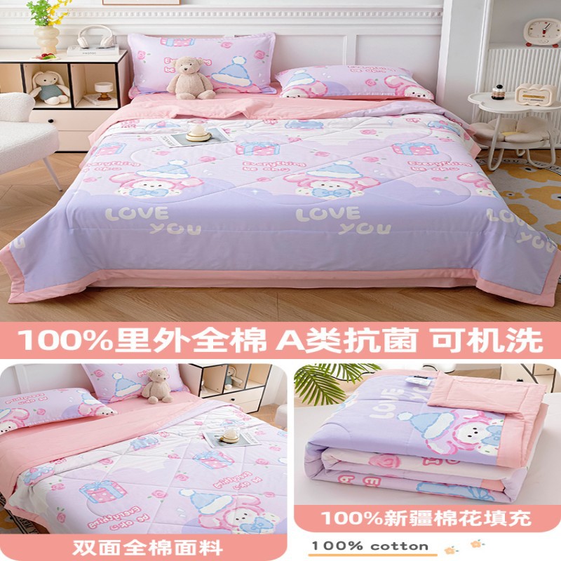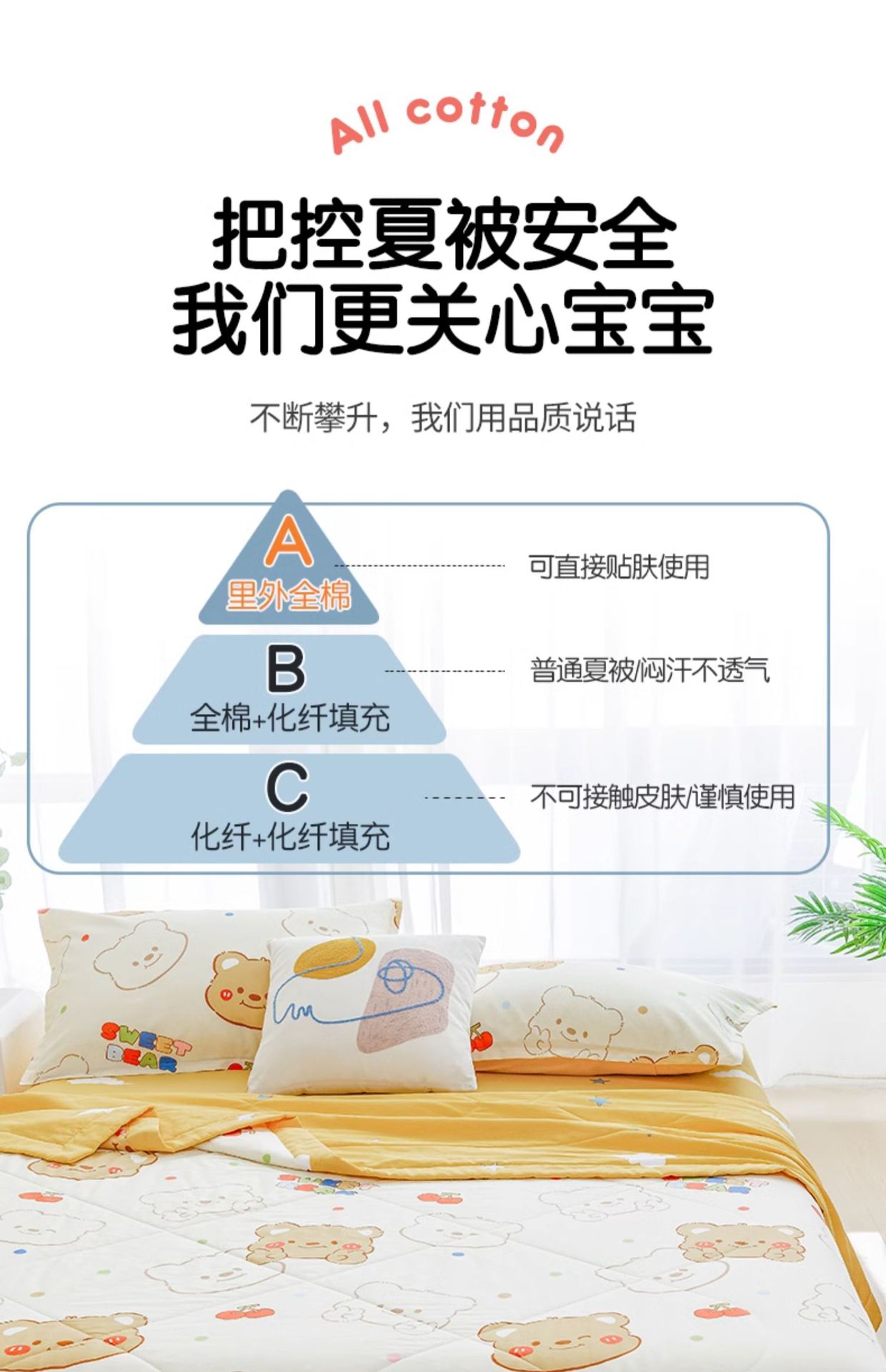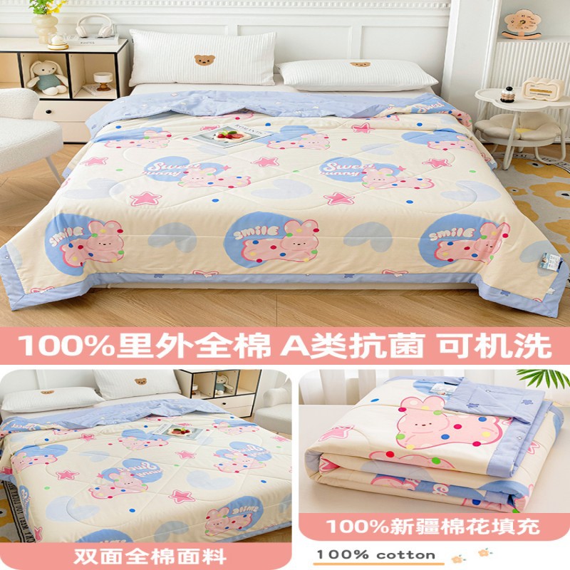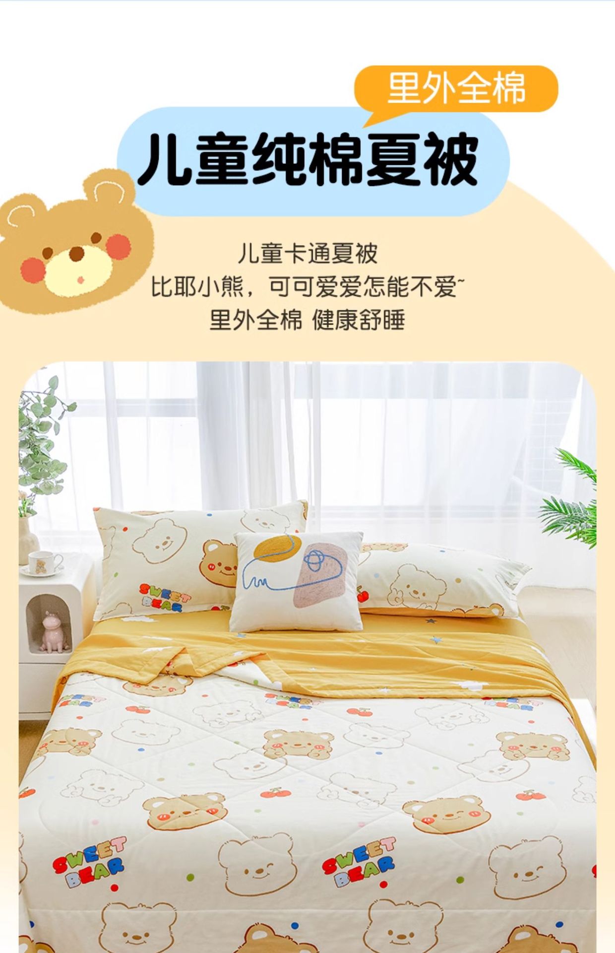 100% 순수 면 어린이 여름 이불 에어컨 이불 유치원 여름 얇은 이불 세척 가능한 여름 이불 봄과 가을 이불