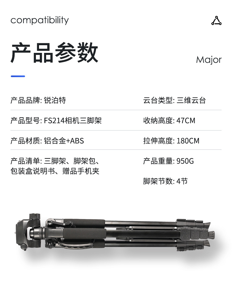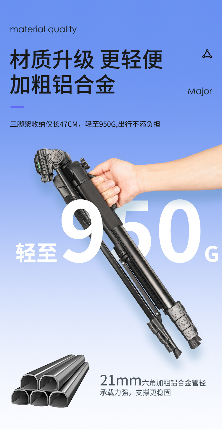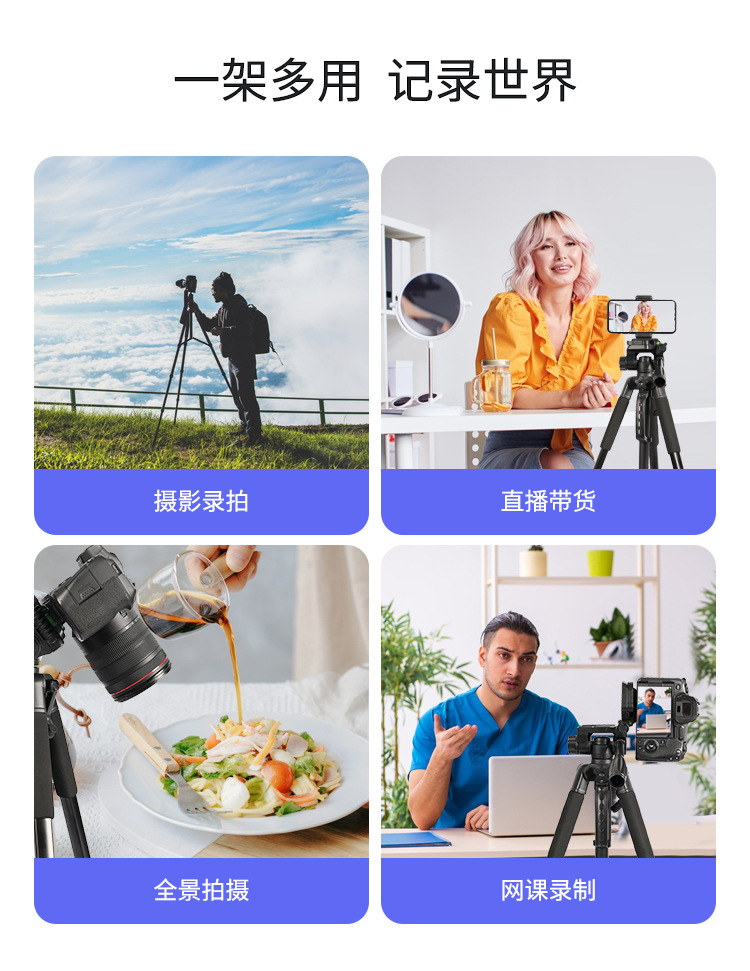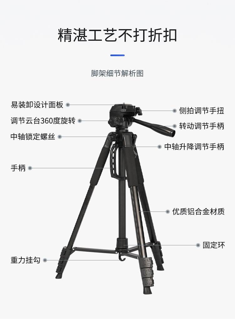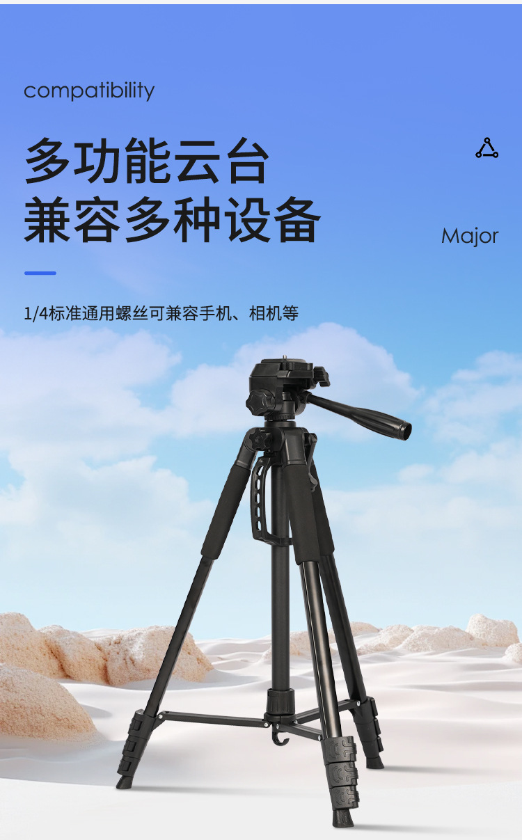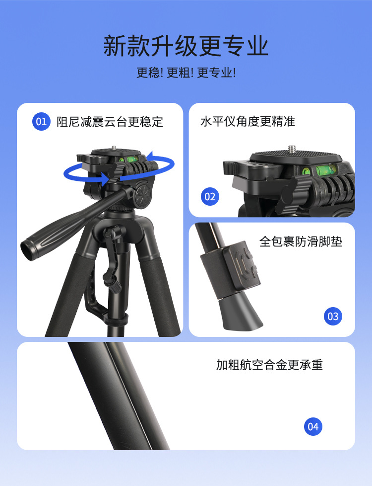 F180T 스탠드 1.8m 야간 낚시등 망원경 휴대폰 카메라 삼각대 3차원 짐벌 카메라 휴대용