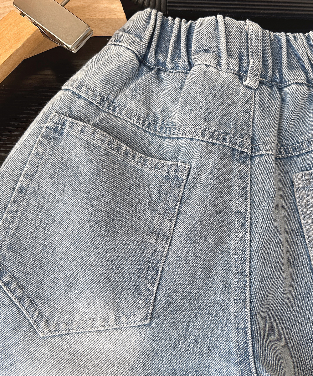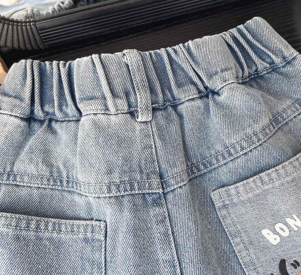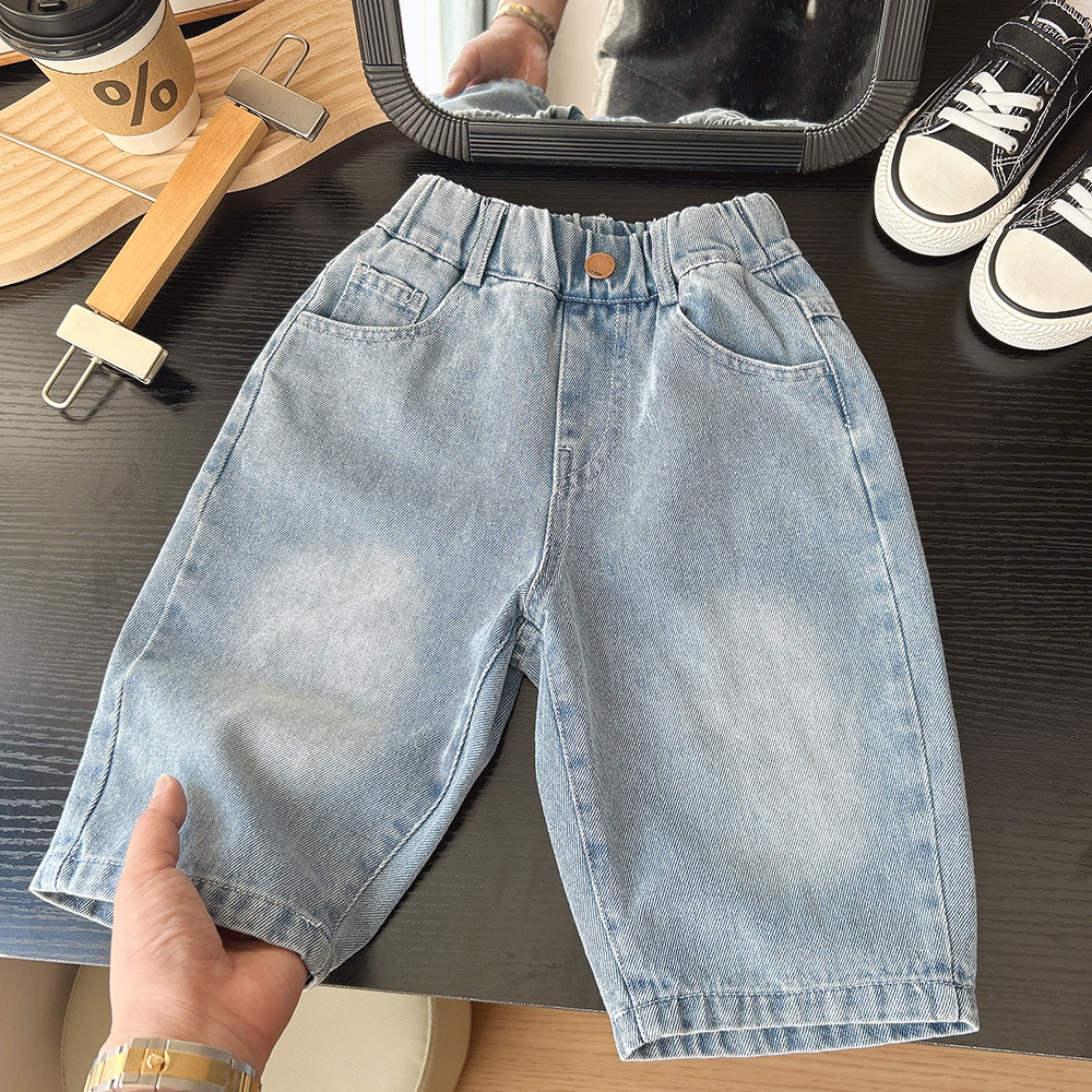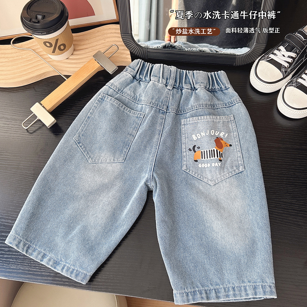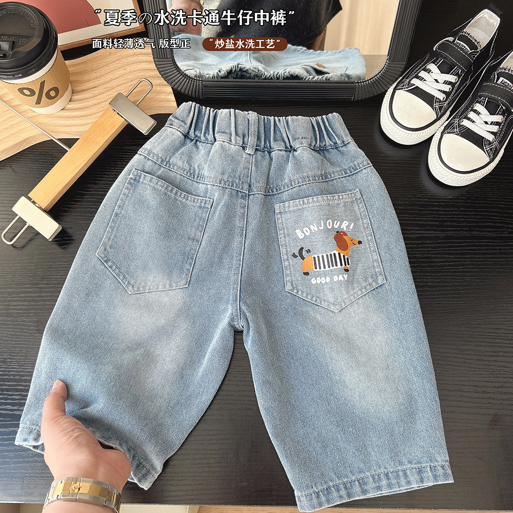 2025 년 새 여름 아동복 소년과 어린이 한국 만화 데님 자른 바지 바지 바지 도매 세대스토어 가기