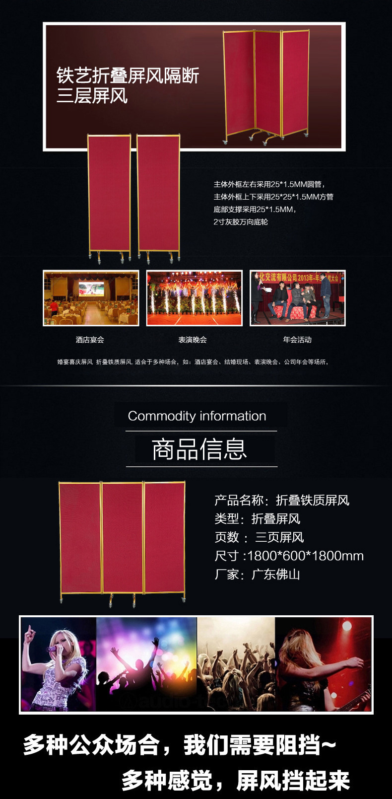 屏风使用的场合有:卧室、酒店、餐厅、书房、客厅、办公场所、化妆间等场所。