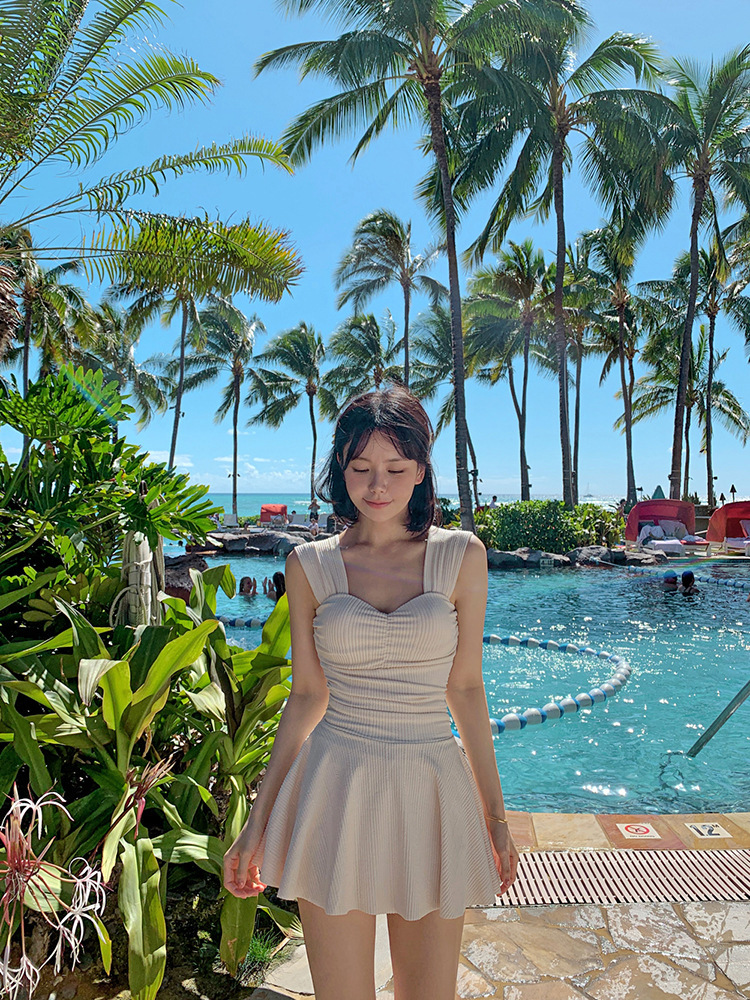 국경 도매 수영복 여성의 보수적 인 원피스 스커트 배꼽 슬리밍 섹시한 한국 인 요정 온천 수영복스토어 가기