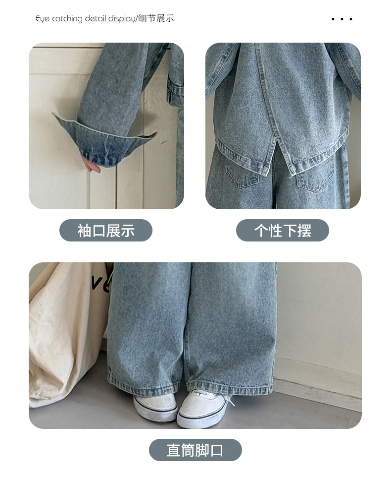 소녀 데님 세트 봄과 가을 2025 새로운 여자 한국 코트 어린이 봄 넓은 다리 바지 두 조각 세트스토어 가기