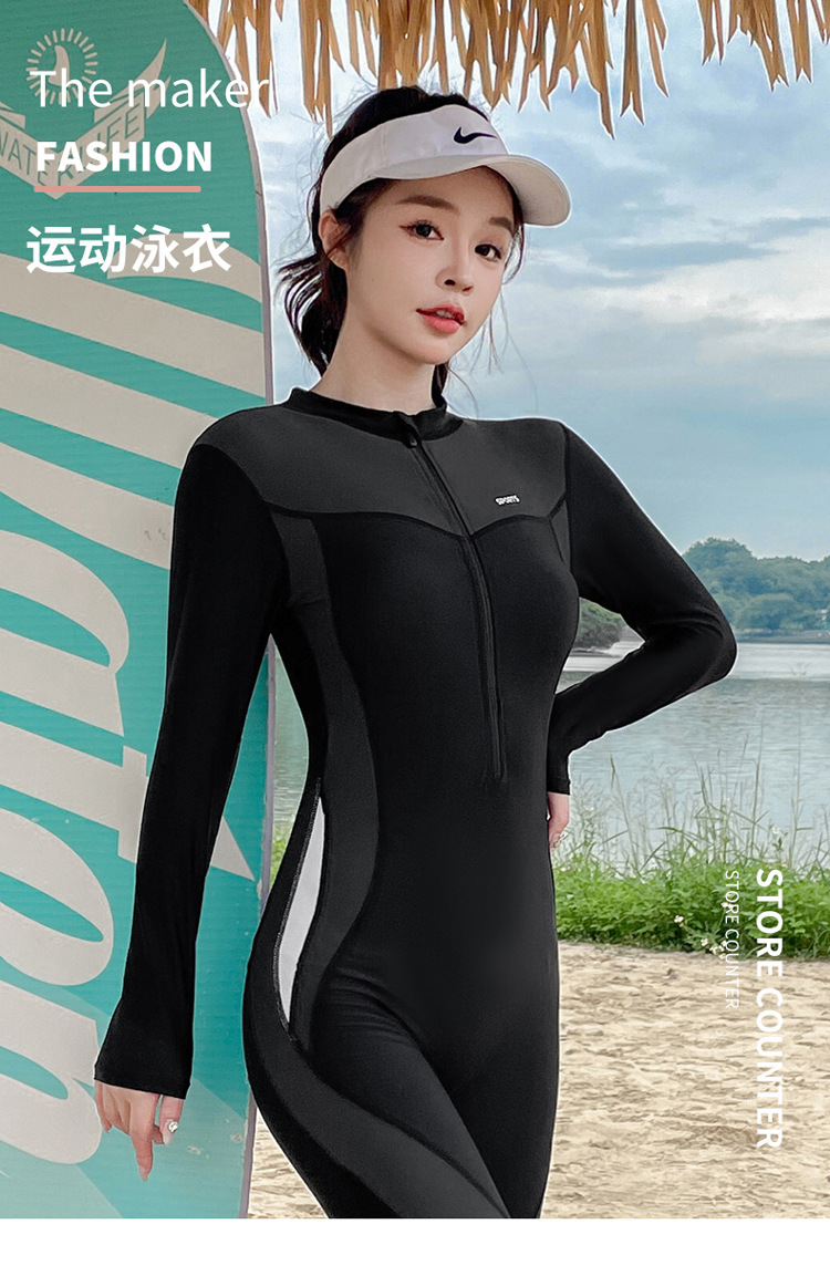 긴팔 원피스 수영복 여성의 보수적 인 배꼽 커버 슬리밍 온천 세트 패션 스포츠 수영복 플러스 사이즈 해파리 세트 도매스토어 가기