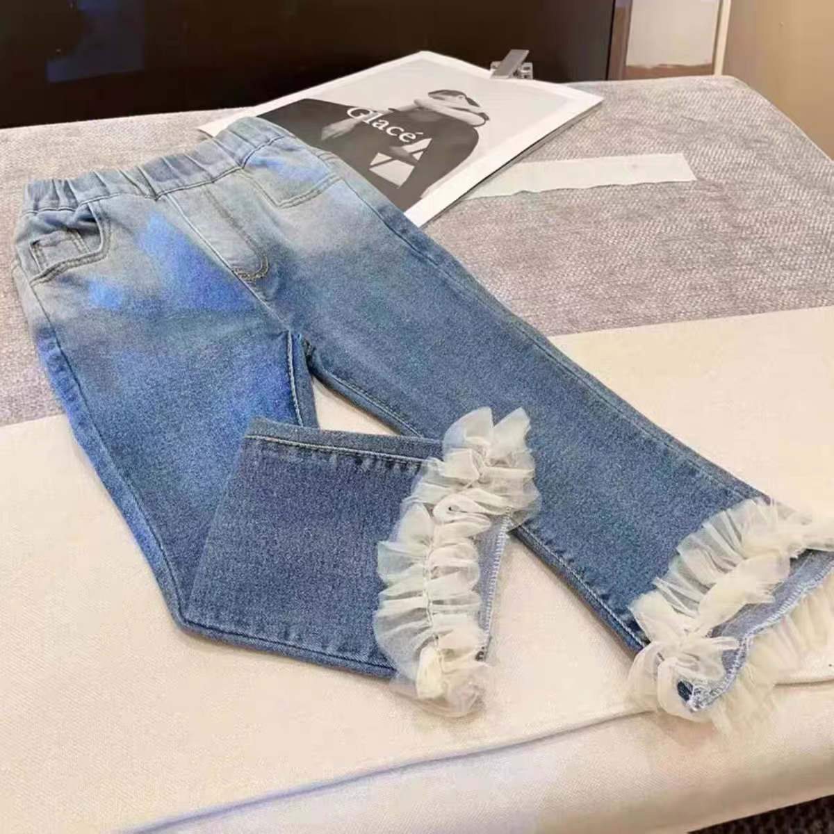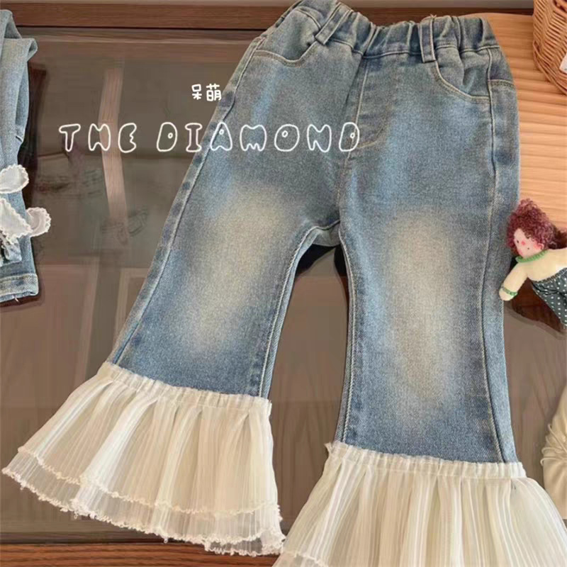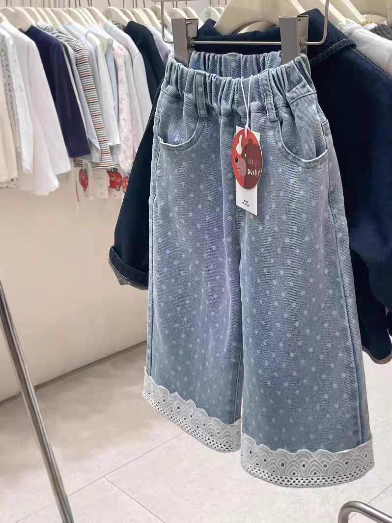【세븐세븐】여아 봄 데님 팬츠, 한국 스타일 디자인, 리본 장식, 스트레이트 와이드 팬츠, 트렌디한 유아용스토어 가기