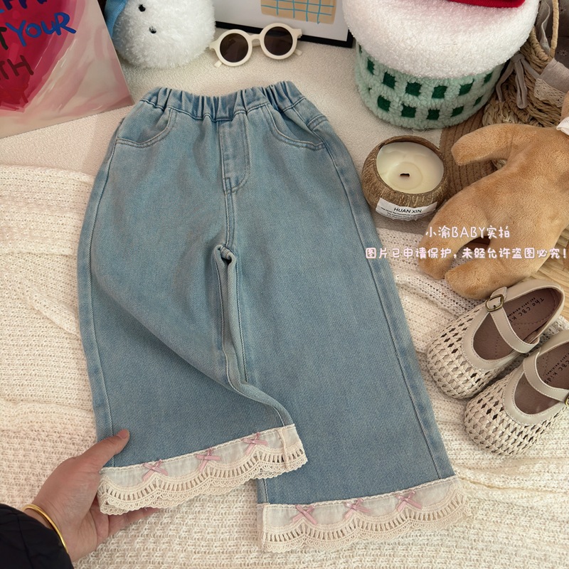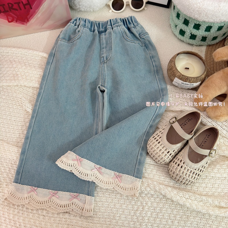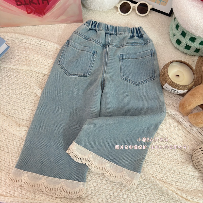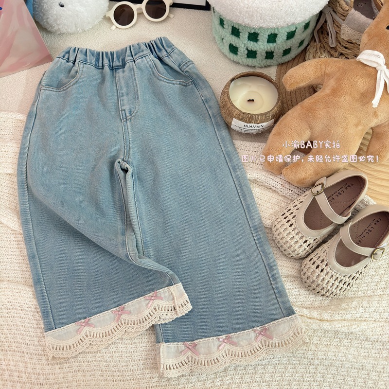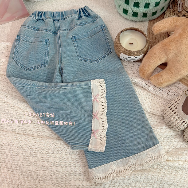 여자 청바지 2025 봄과 가을 새로운 한국 스타일 서양식 레이스 청바지 어린이 여성 보물 올매치 캐주얼 바지스토어 가기