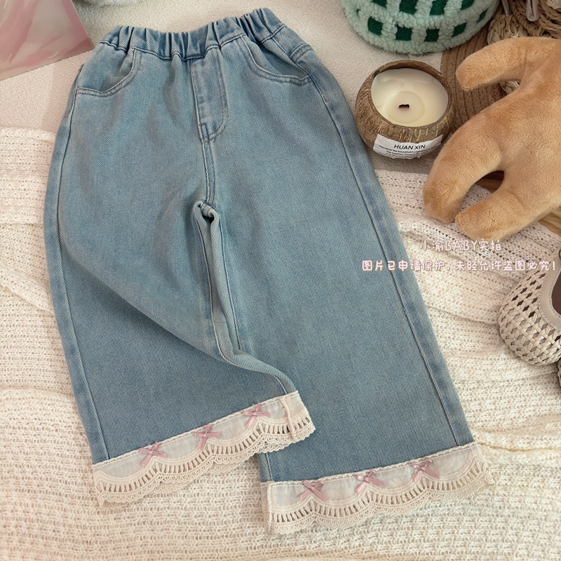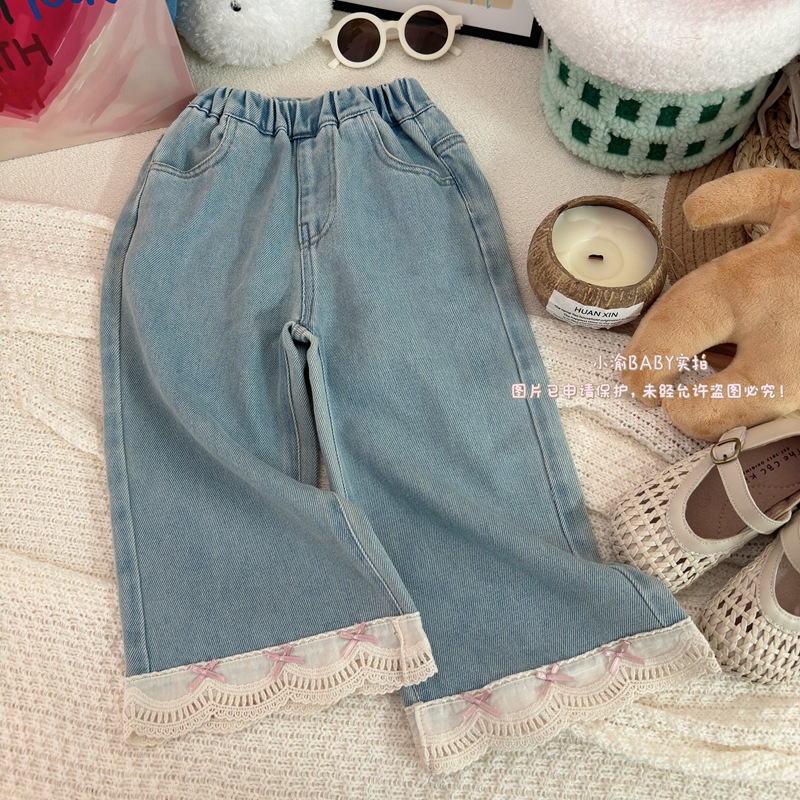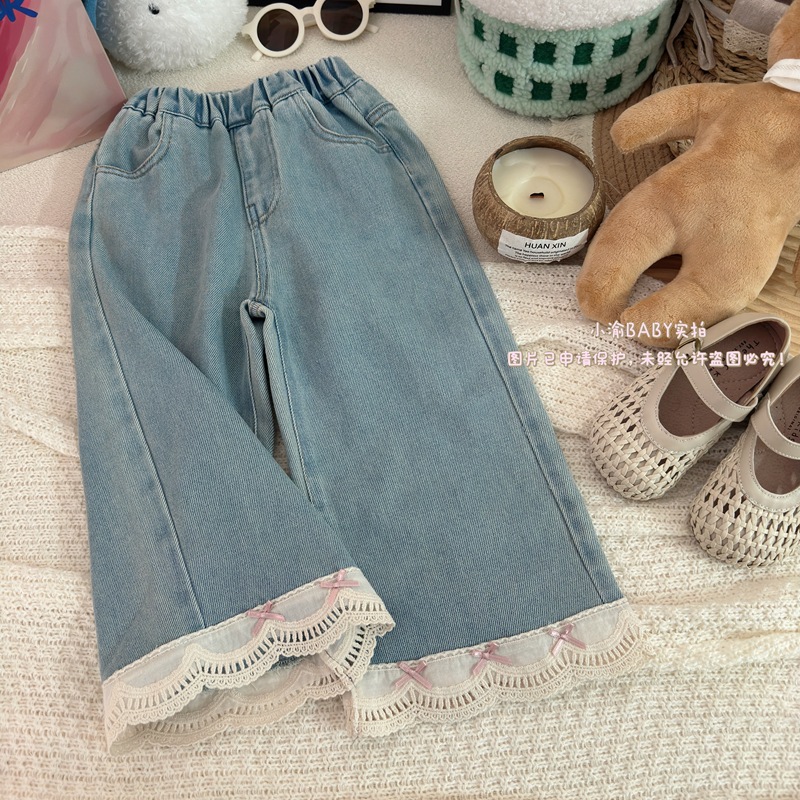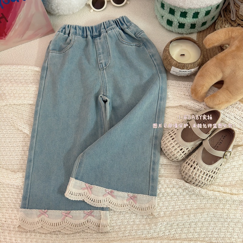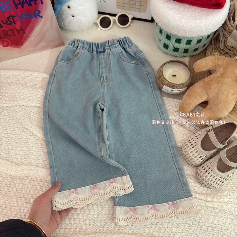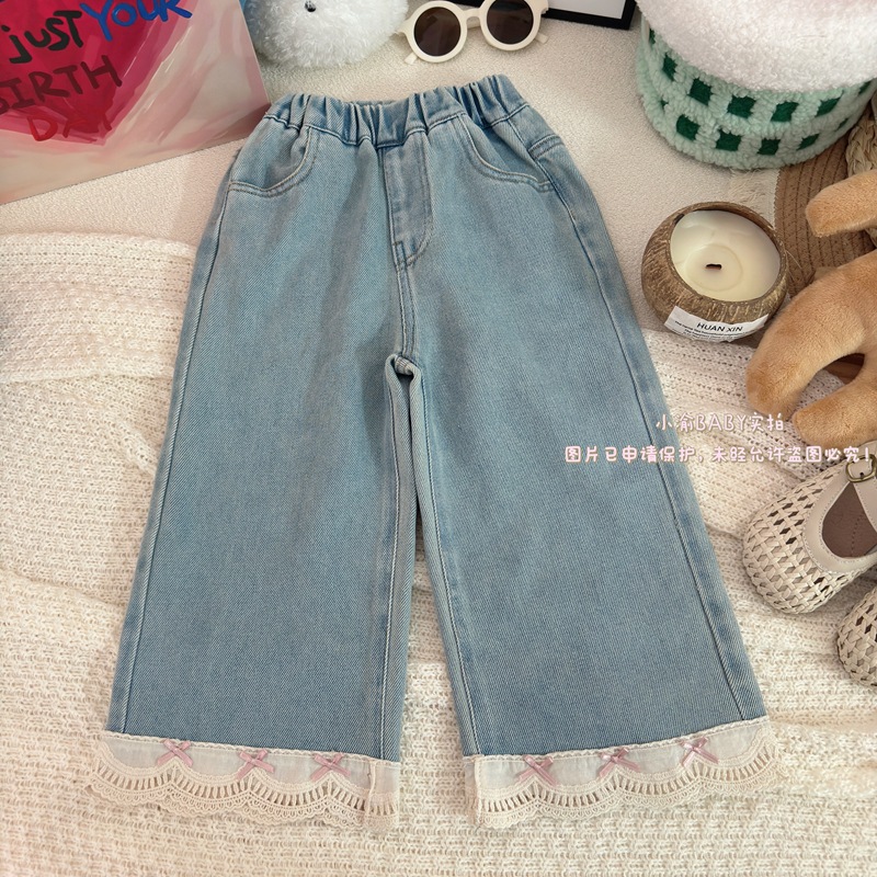 여자 청바지 2025 봄과 가을 새로운 한국 스타일 서양식 레이스 청바지 어린이 여성 보물 올매치 캐주얼 바지스토어 가기