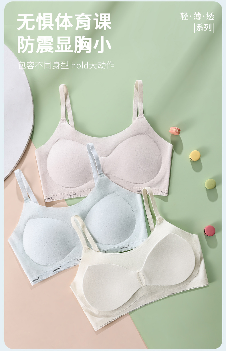 아이스 실크 고정 컵 tracless 속옷 주니어 고등학교 소녀 얇은 반지-자유로운 슬링 아름다운 등 얇은 어깨 스트랩 브래지어 통기성스토어 가기