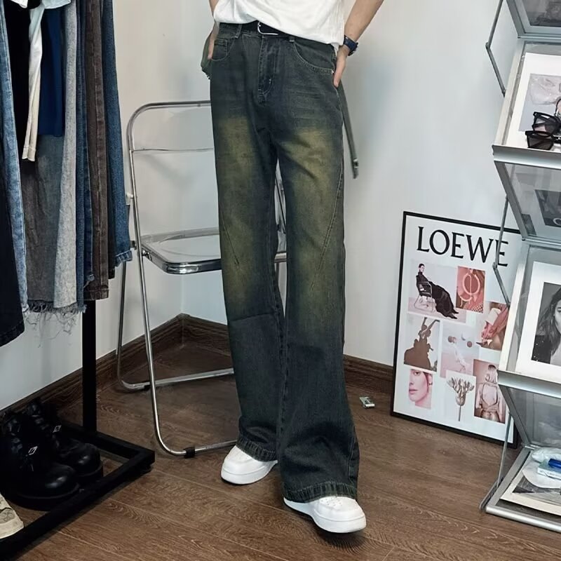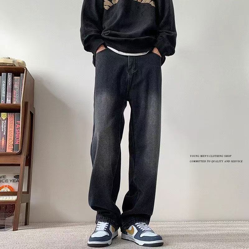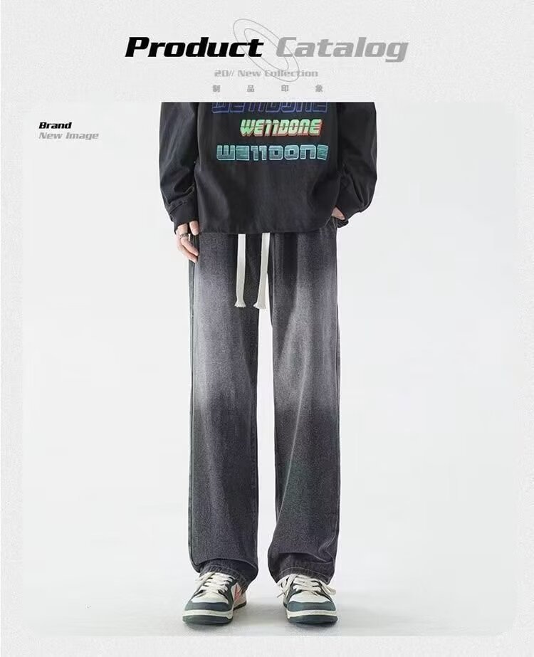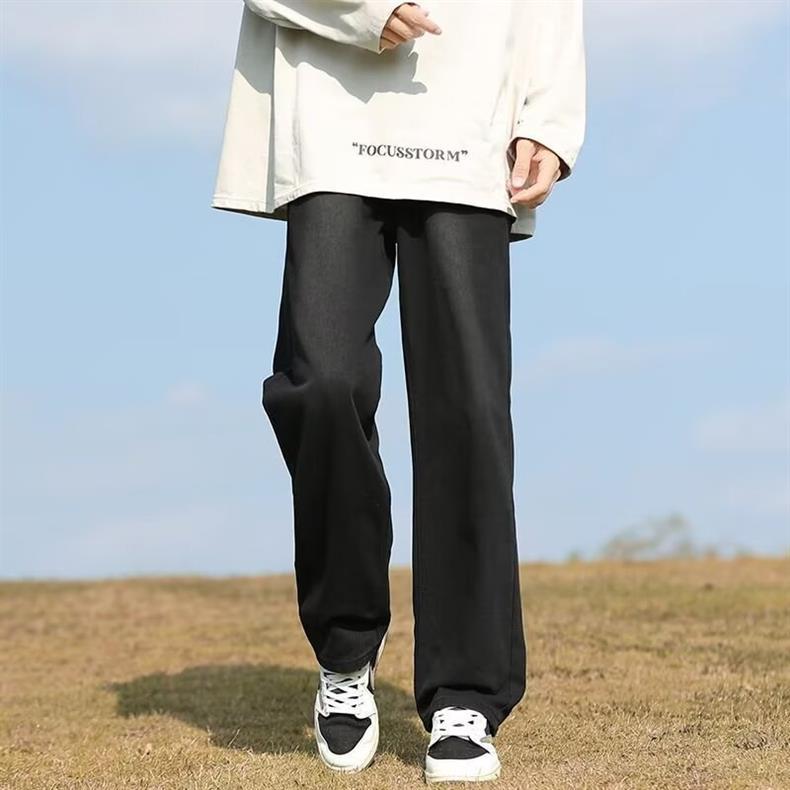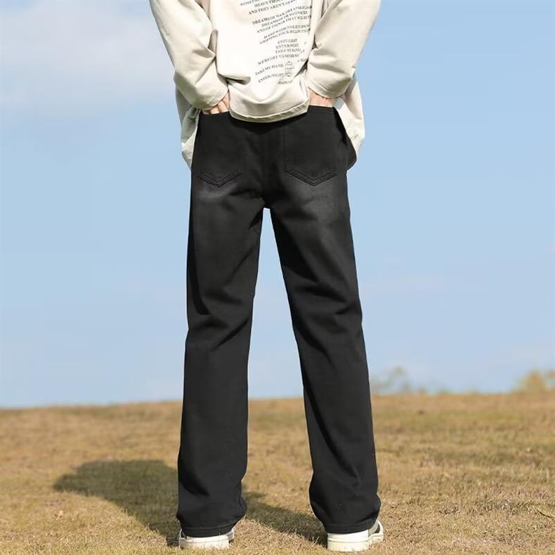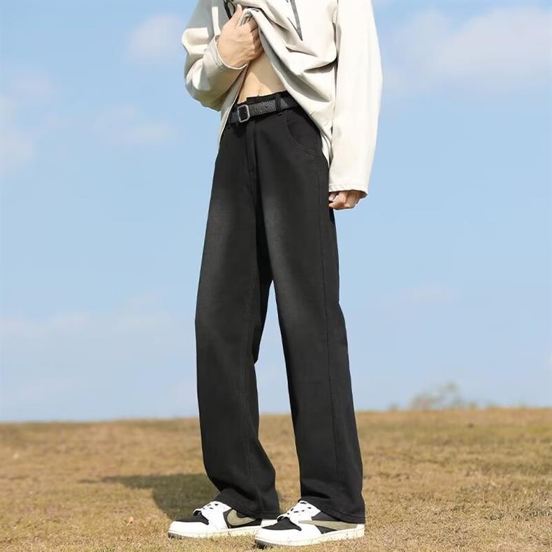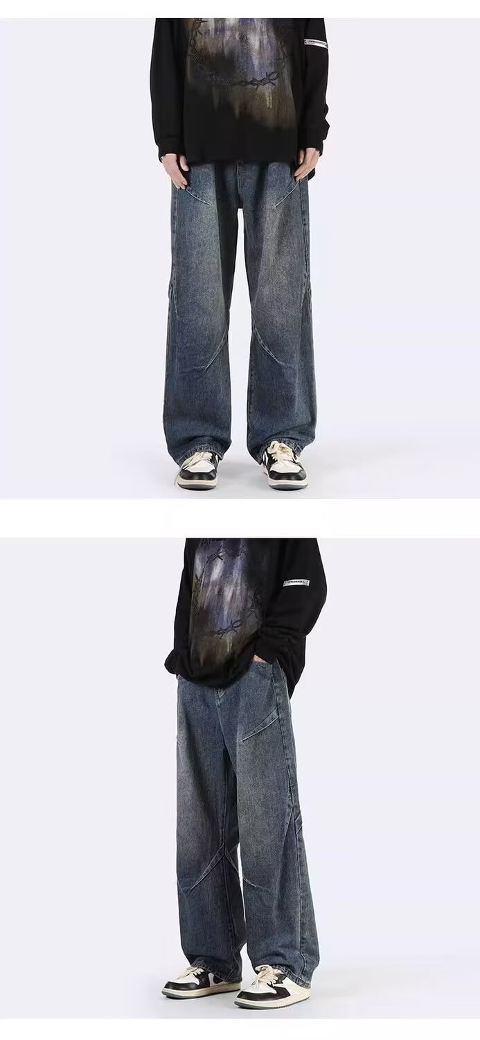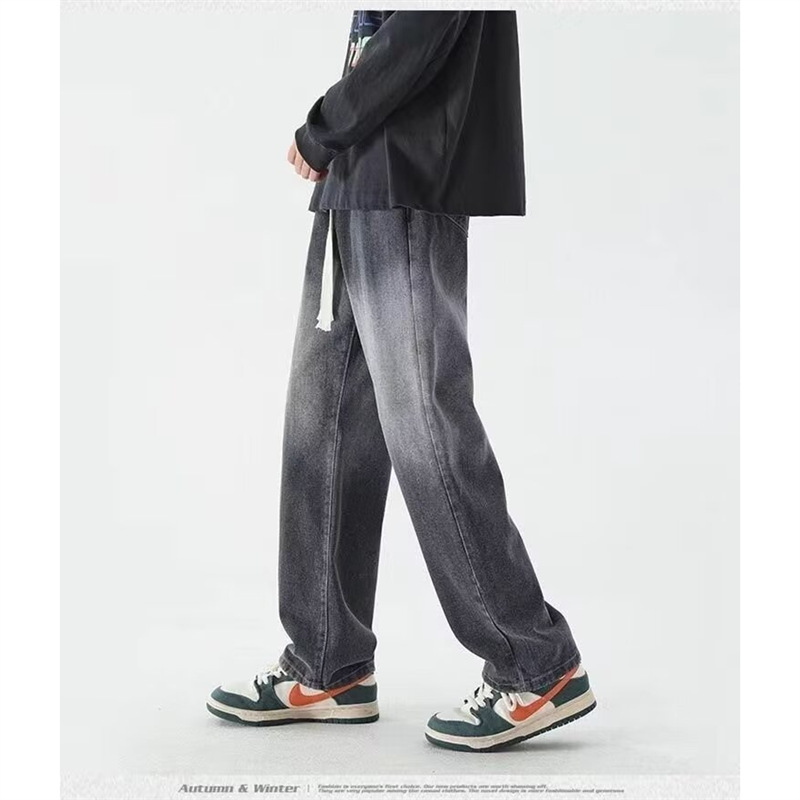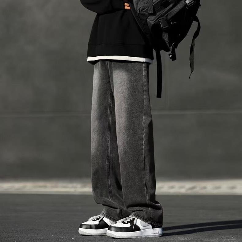 새로운 완벽한 하이 스트리트 세탁 청바지 남성 아메리칸 스타일 레트로 트렌디 브랜드 스트레이트 여름 캐주얼 느슨한 긴 바지스토어 가기