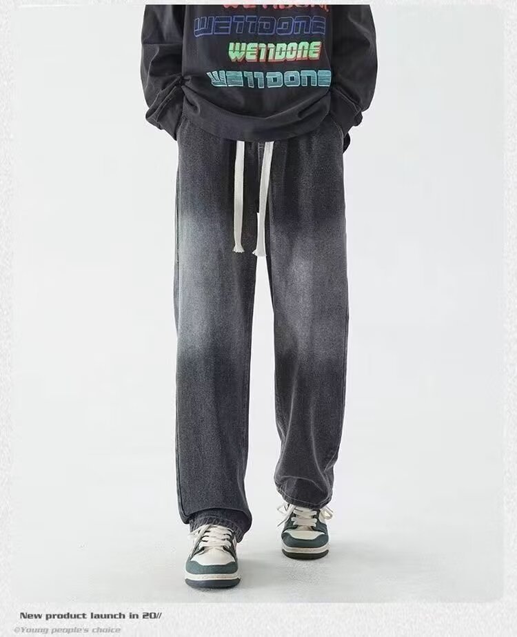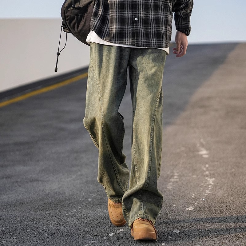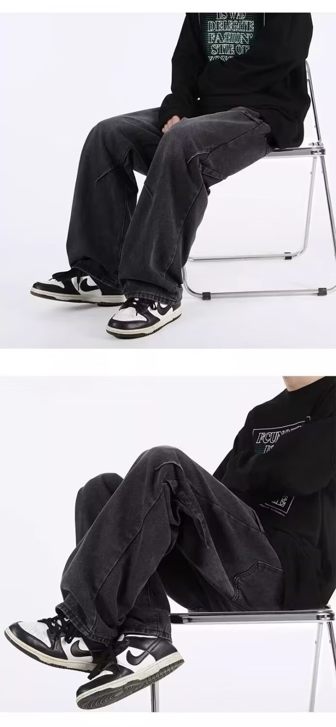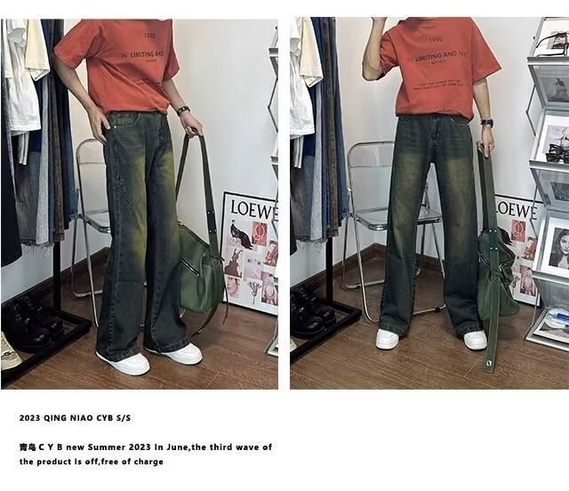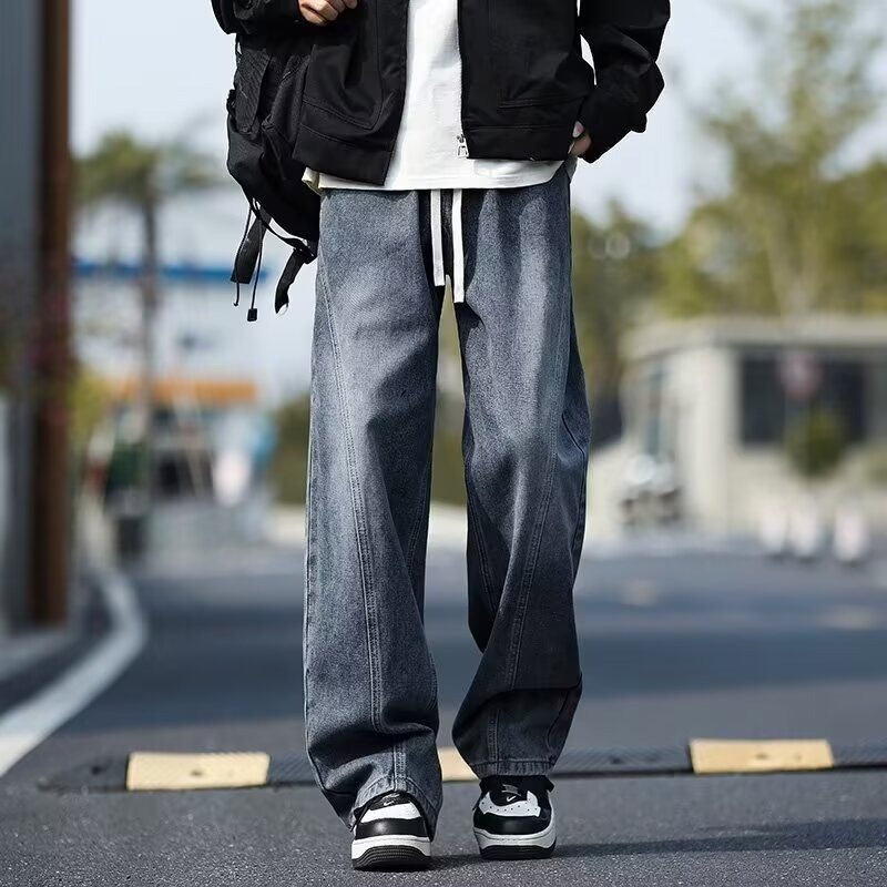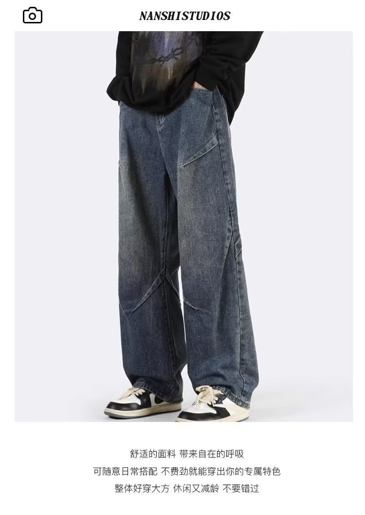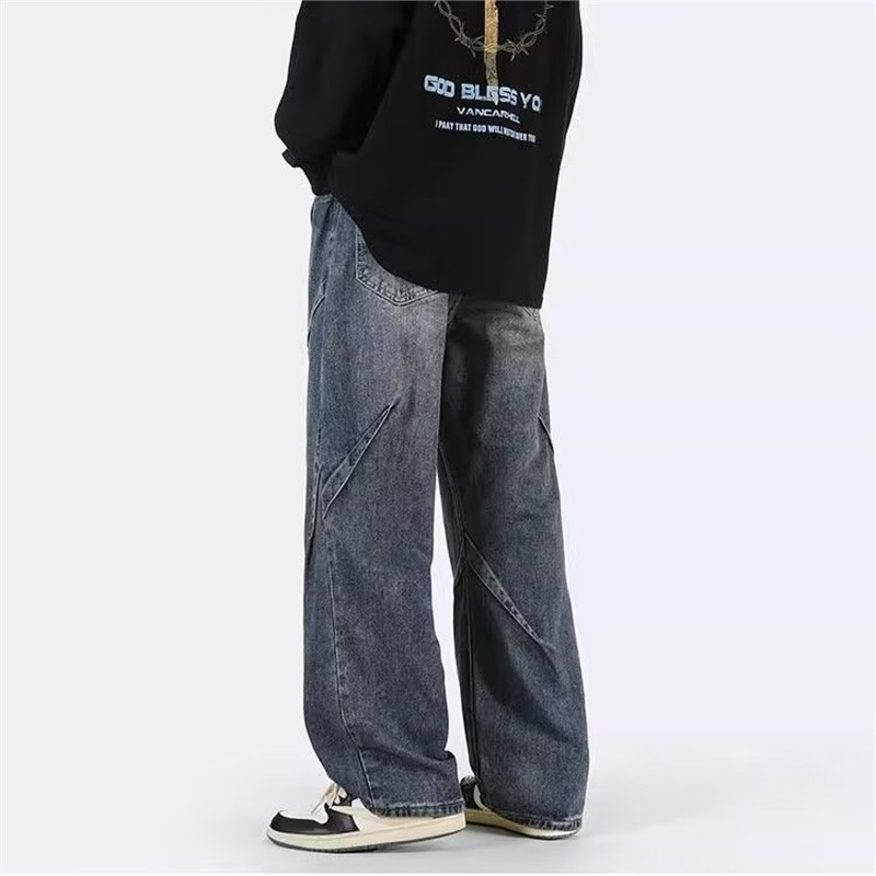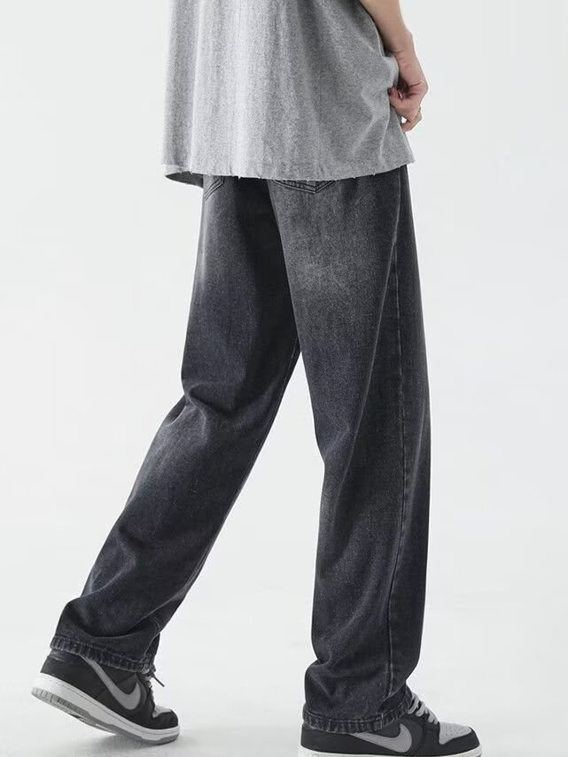 새로운 완벽한 하이 스트리트 세탁 청바지 남성 아메리칸 스타일 레트로 트렌디 브랜드 스트레이트 여름 캐주얼 느슨한 긴 바지스토어 가기