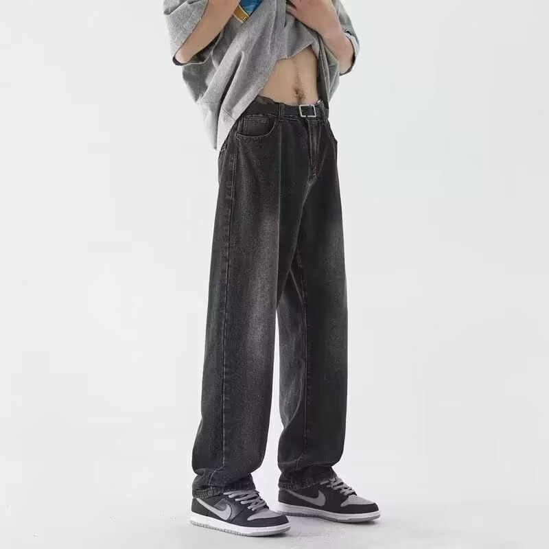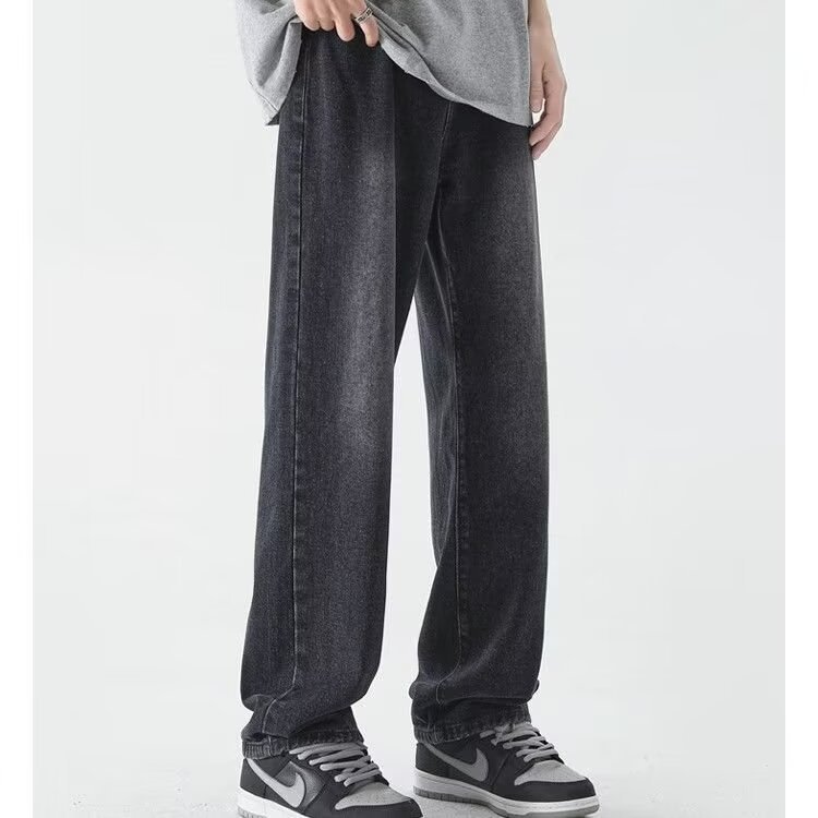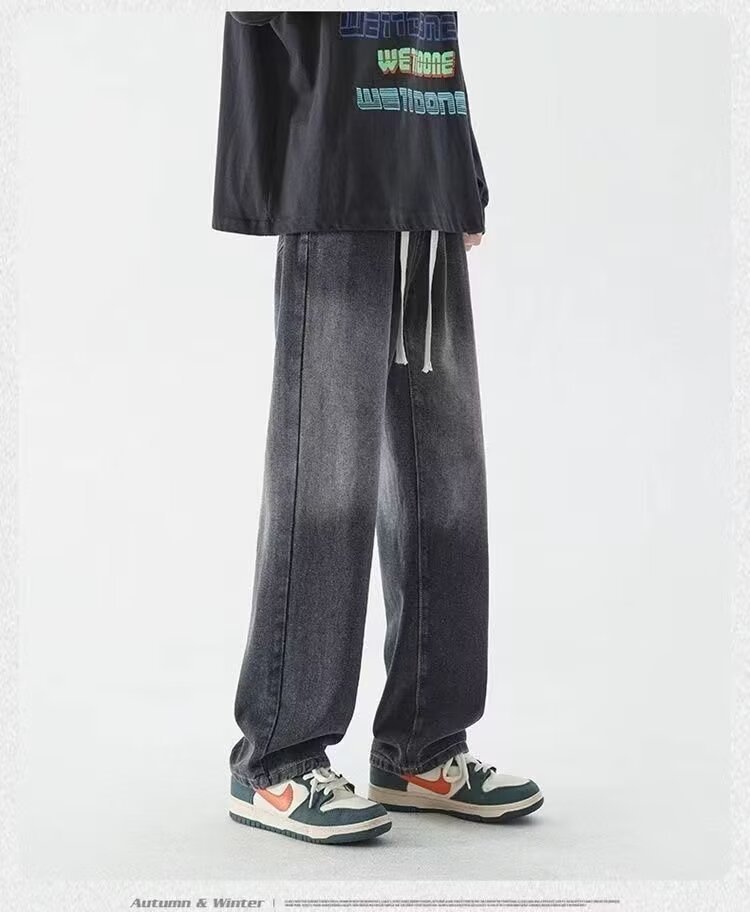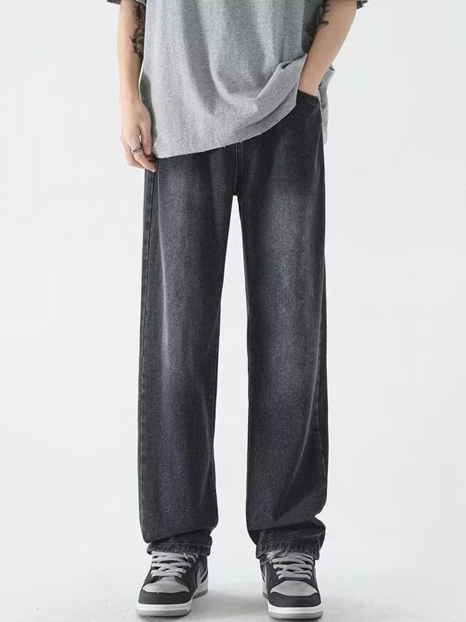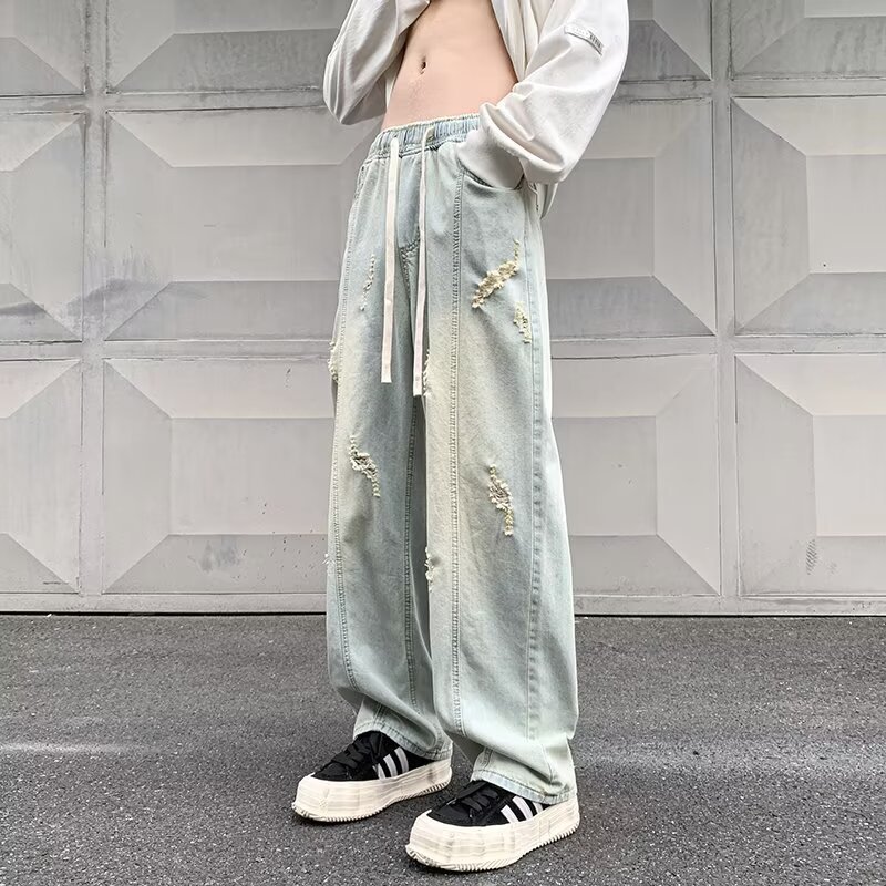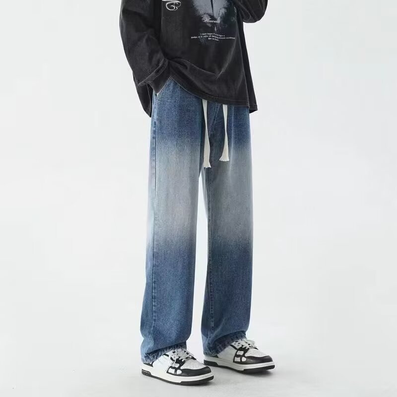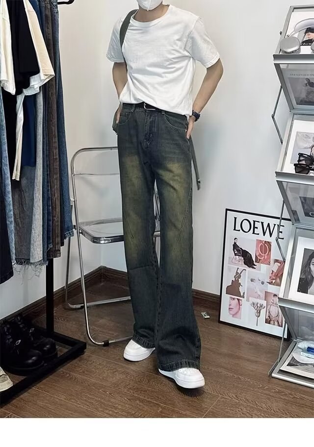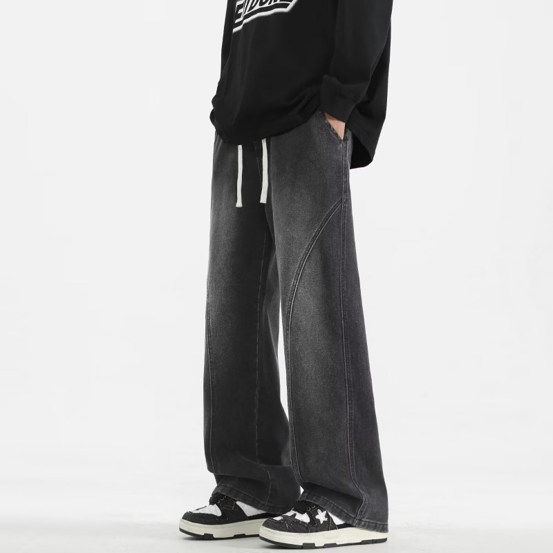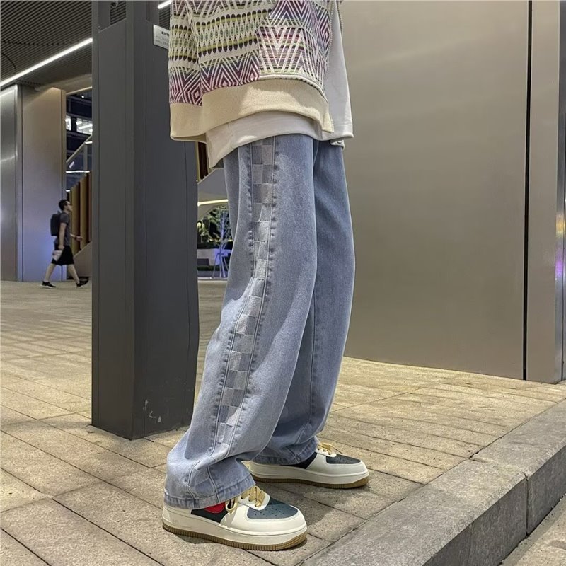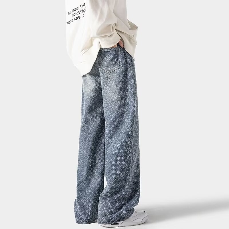 새로운 완벽한 하이 스트리트 세탁 청바지 남성 아메리칸 스타일 레트로 트렌디 브랜드 스트레이트 여름 캐주얼 느슨한 긴 바지스토어 가기