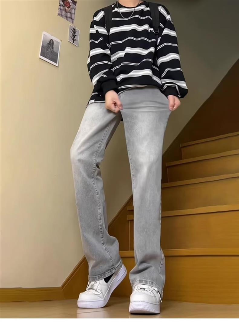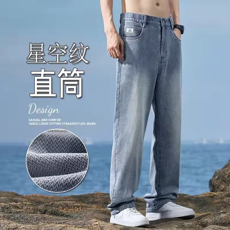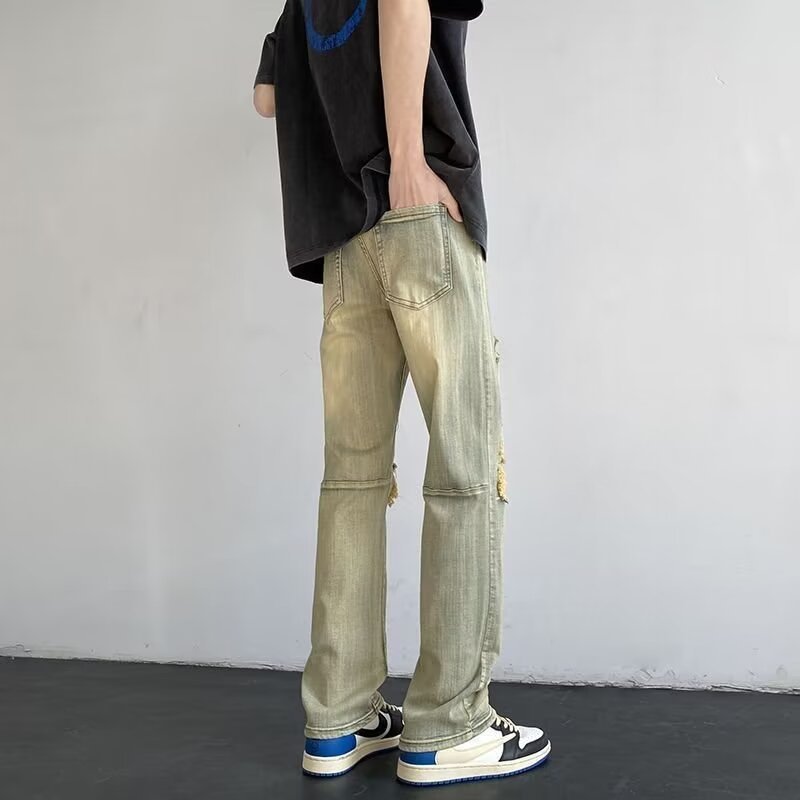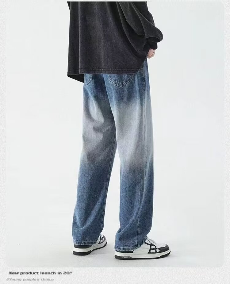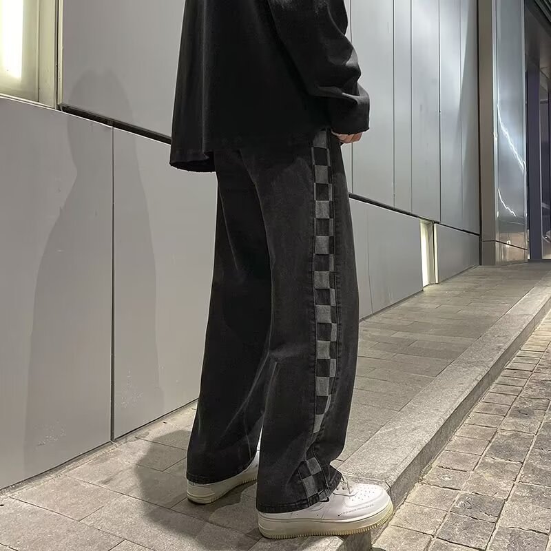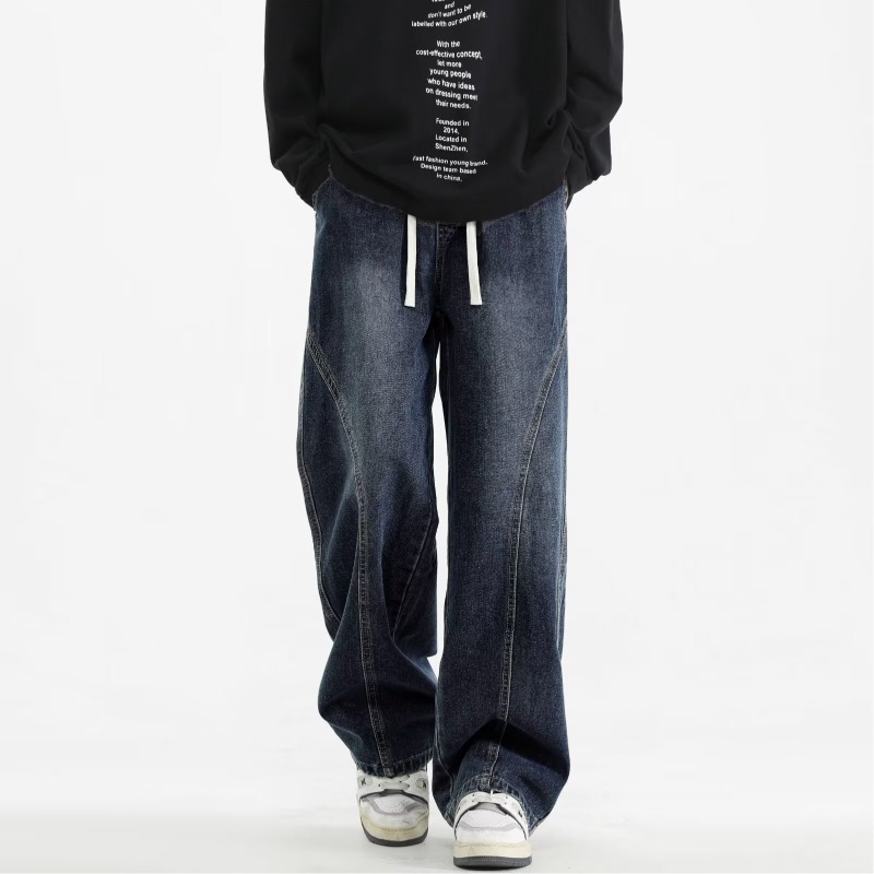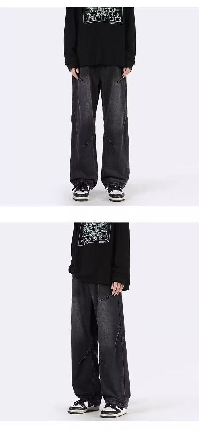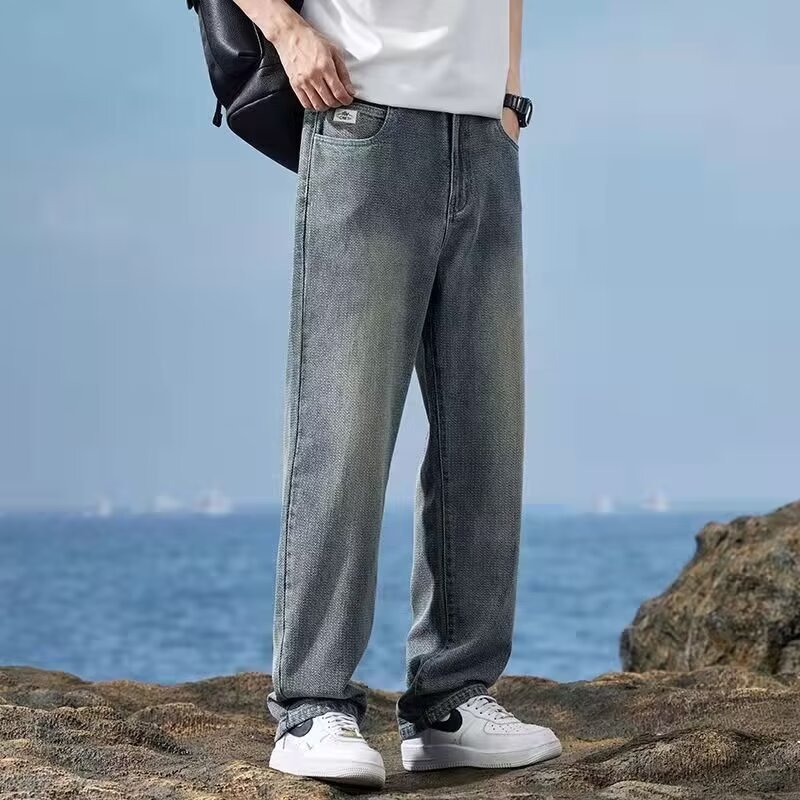 새로운 완벽한 하이 스트리트 세탁 청바지 남성 아메리칸 스타일 레트로 트렌디 브랜드 스트레이트 여름 캐주얼 느슨한 긴 바지스토어 가기