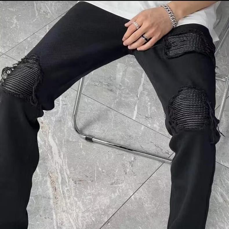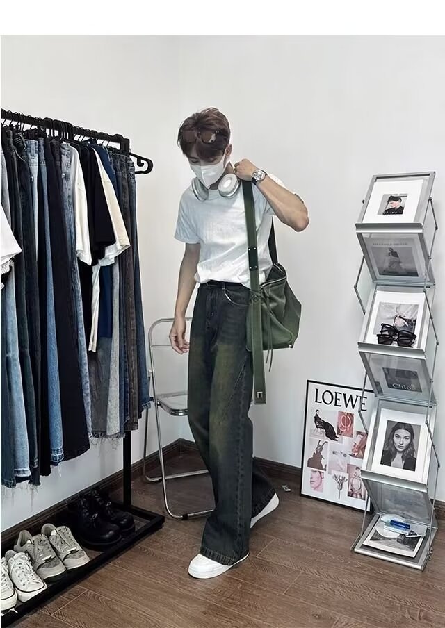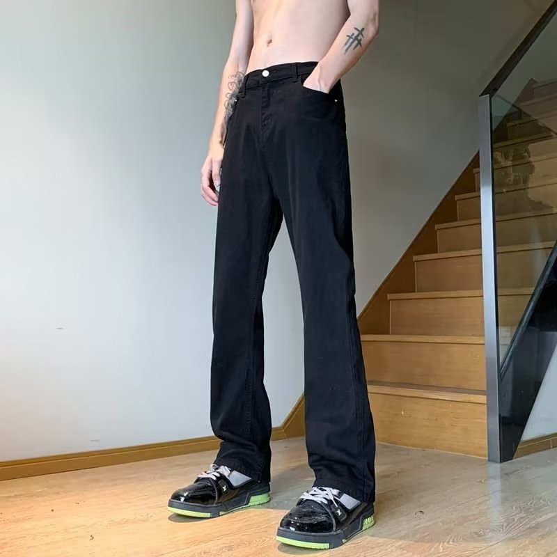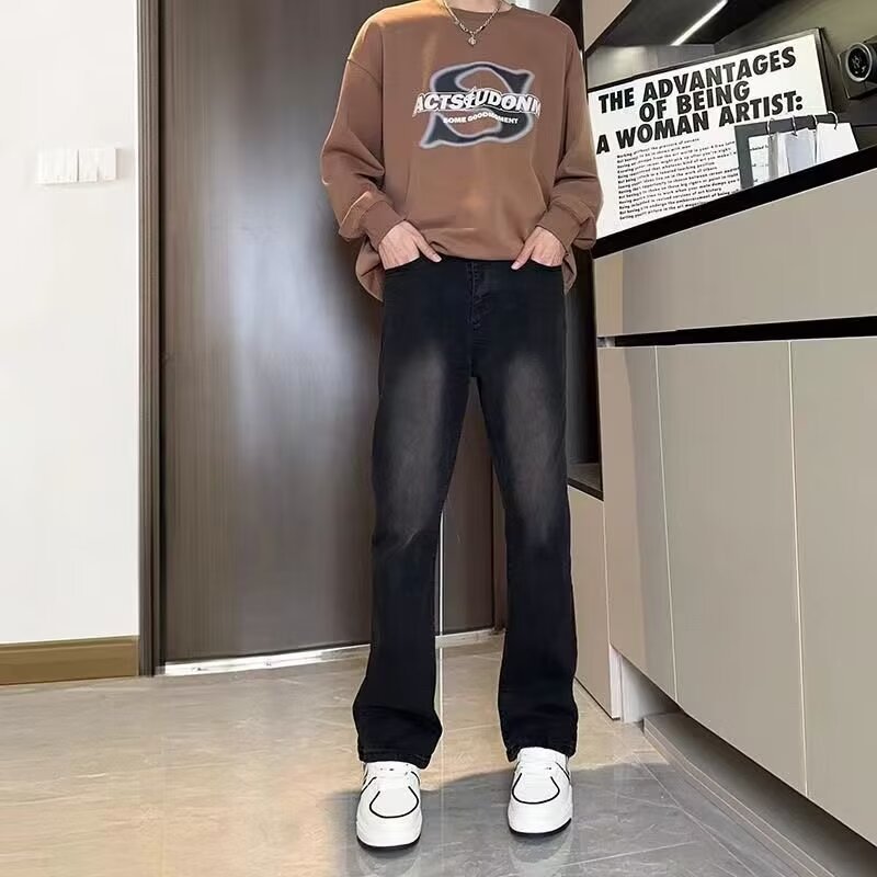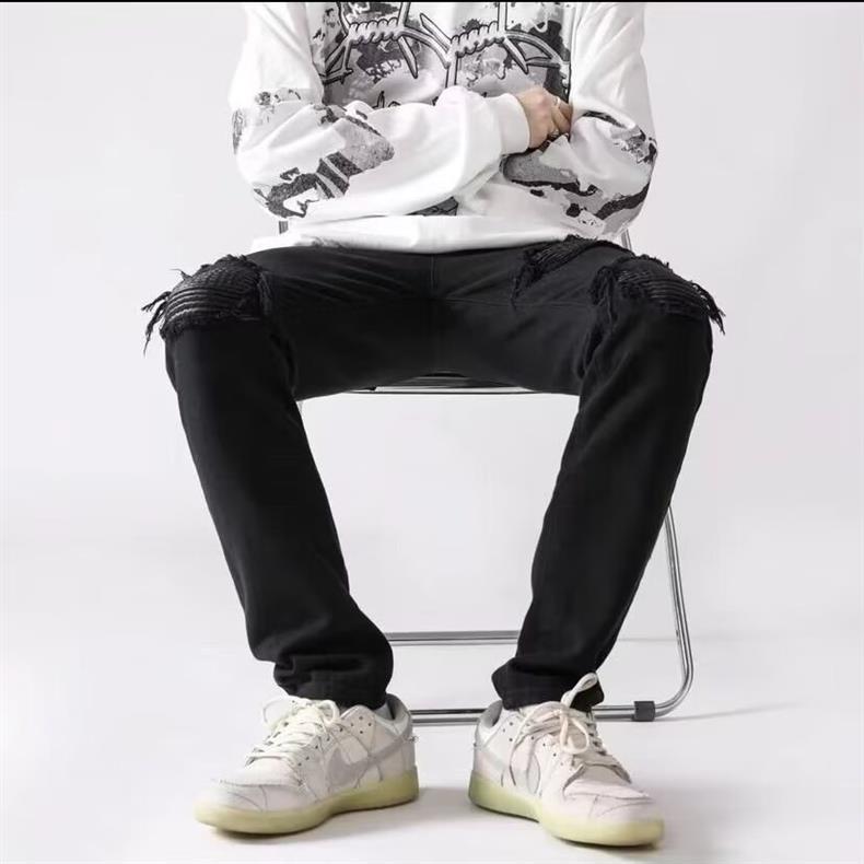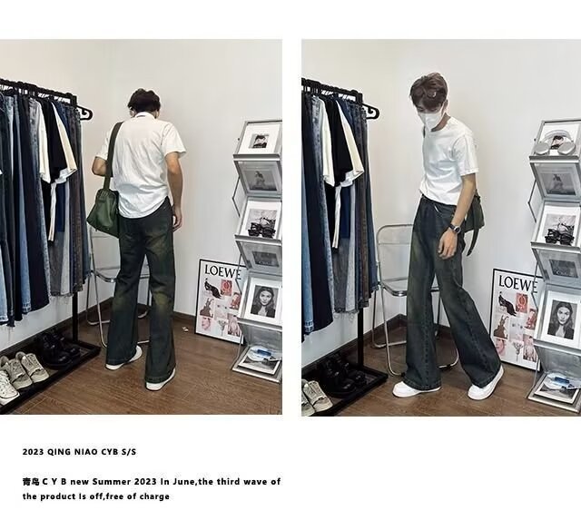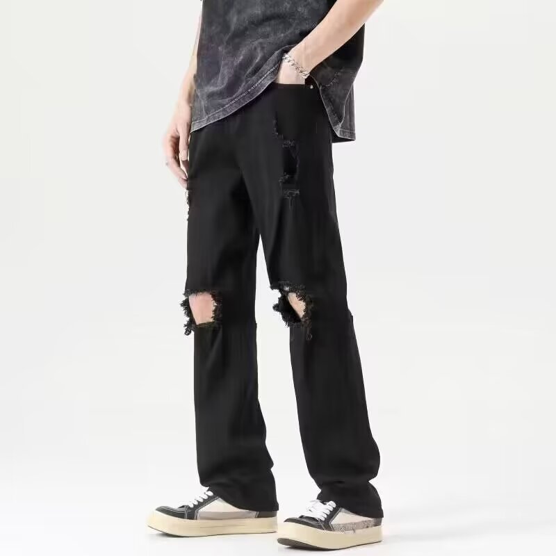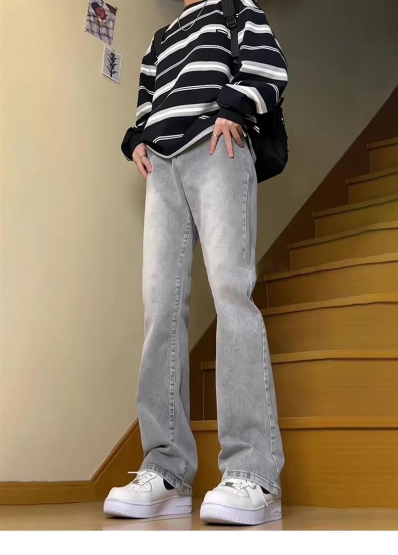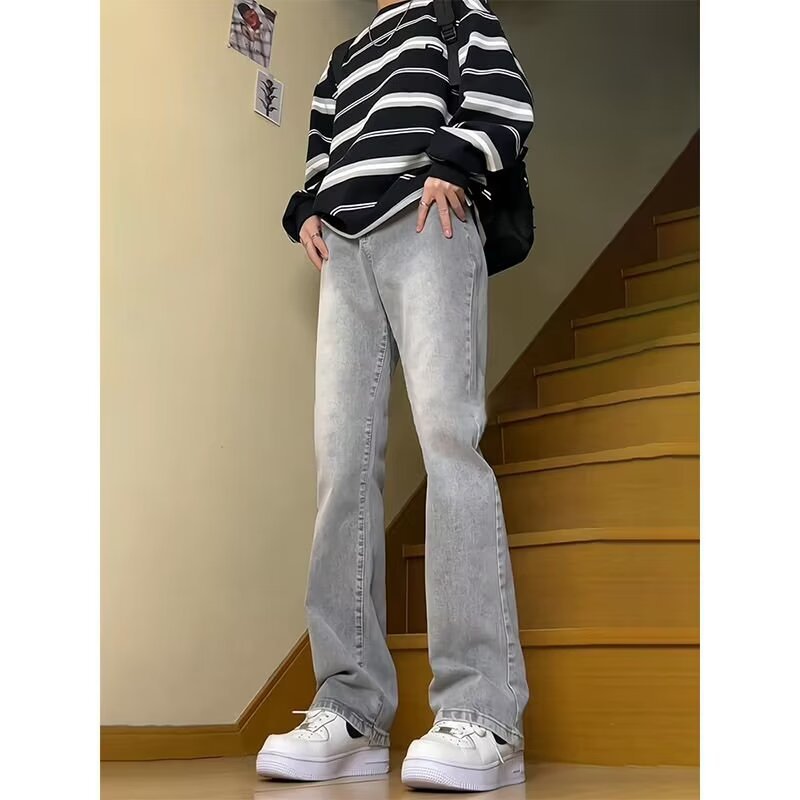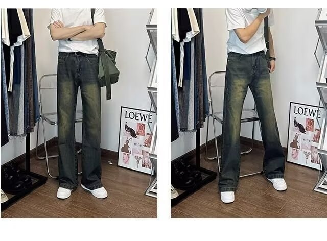 새로운 완벽한 하이 스트리트 세탁 청바지 남성 아메리칸 스타일 레트로 트렌디 브랜드 스트레이트 여름 캐주얼 느슨한 긴 바지스토어 가기