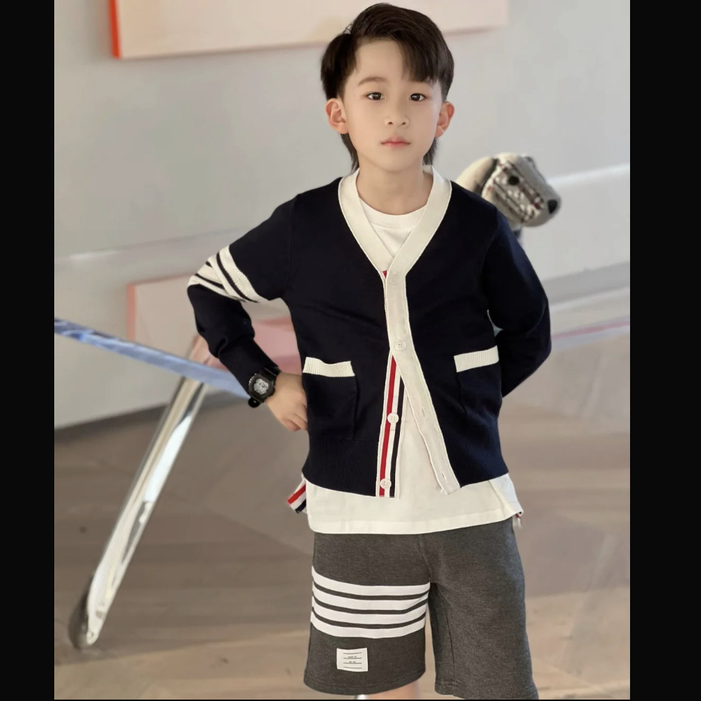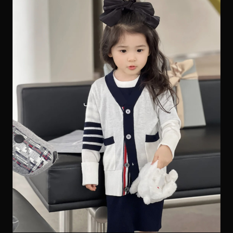 TB 소년 소녀 의류 토끼 자카드 카디건 스웨터 봄, 가을 새로운 어린이 양모 스웨터 중형 및 대형 아동용 재킷스토어 가기