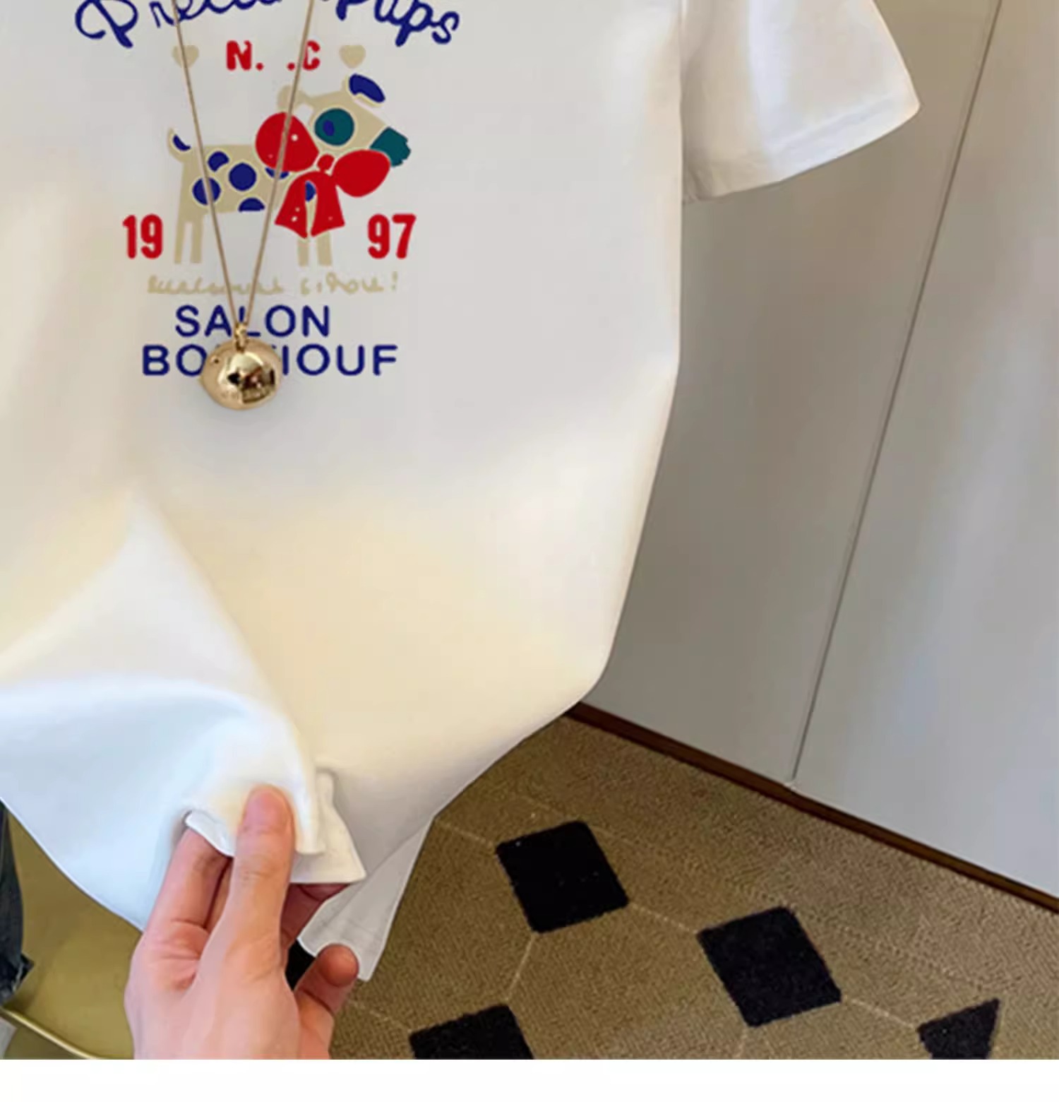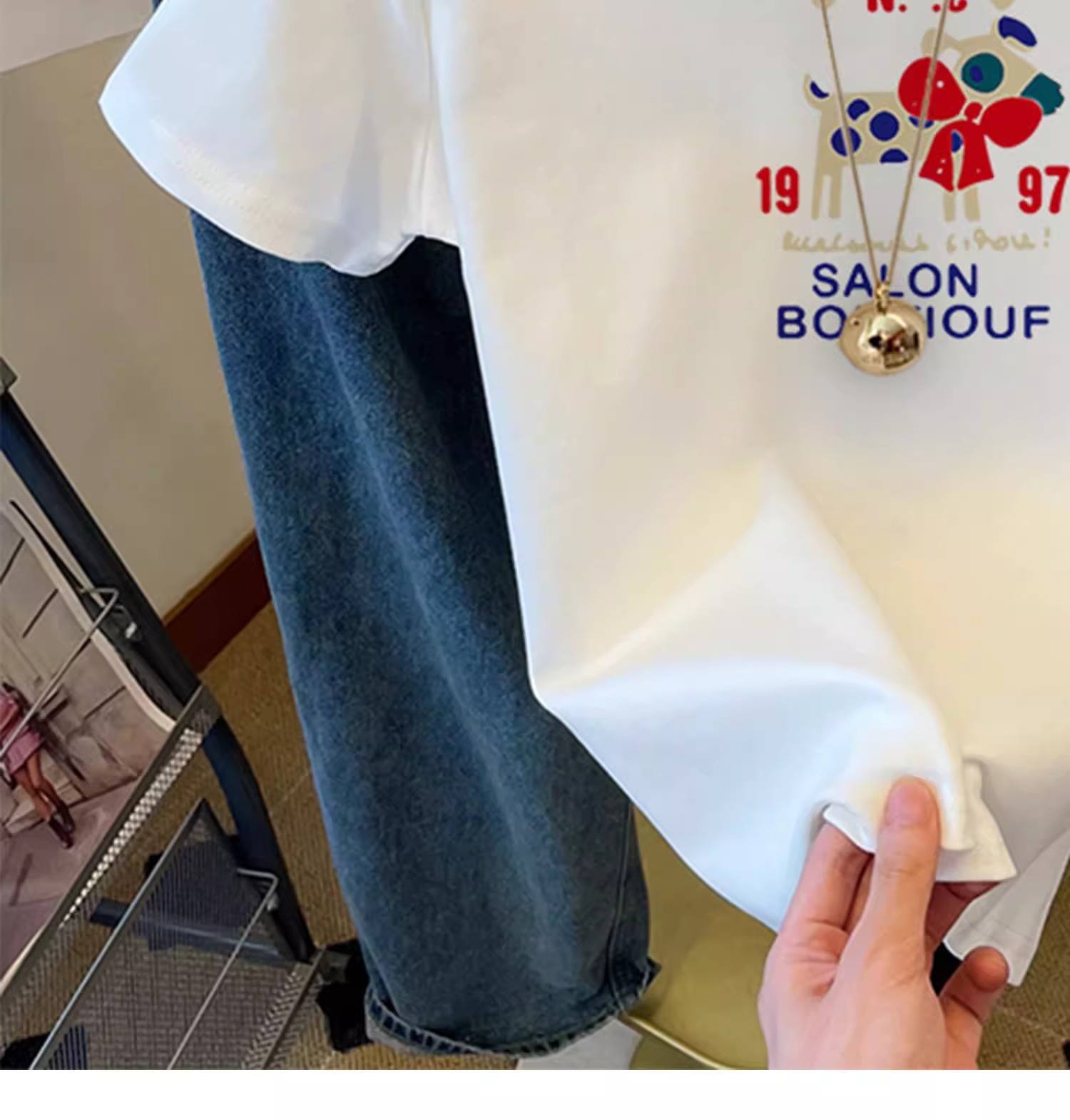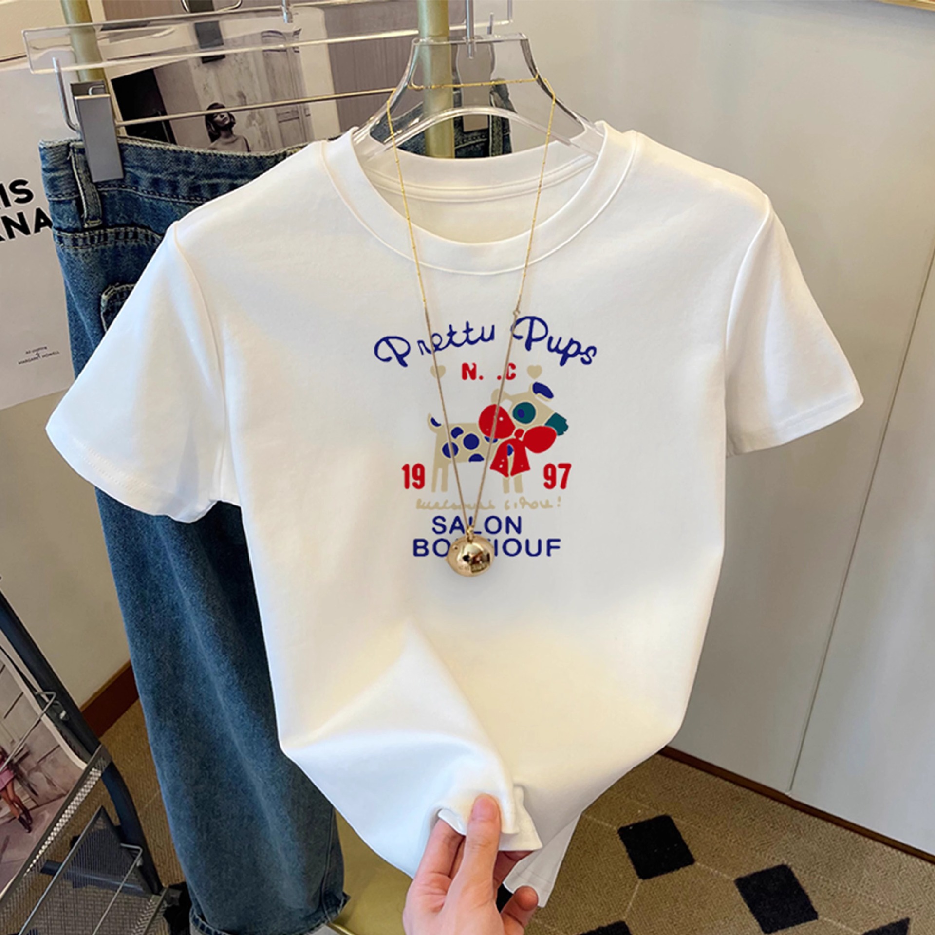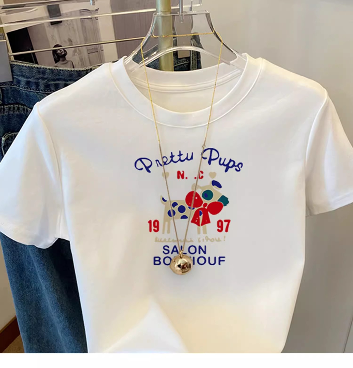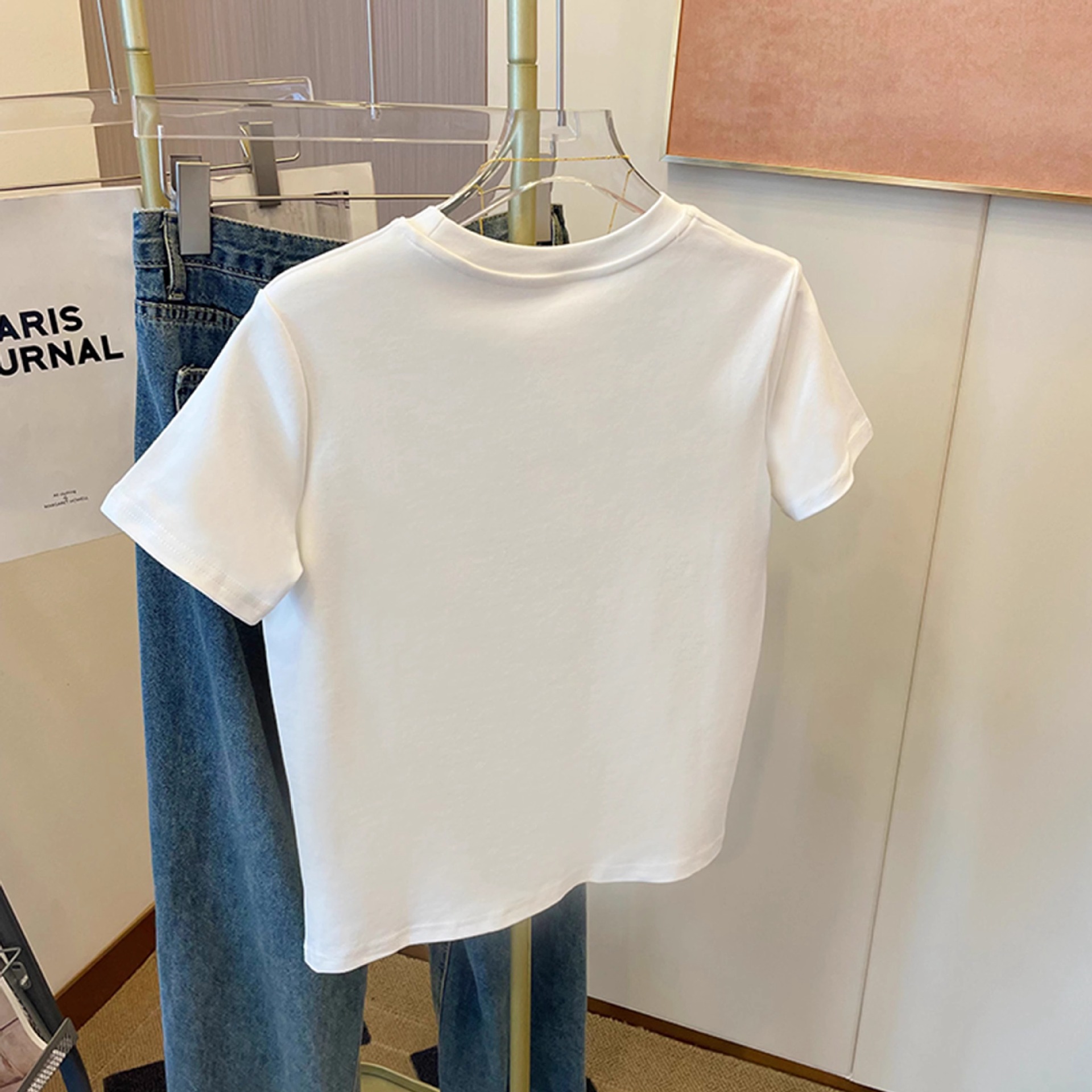화이트 반팔 티셔츠 여성 여름 2025 새로운 올 매치 슬림 핏 느슨한 틈새 디자인 센스 어깨 퓨어 코튼 탑스토어 가기