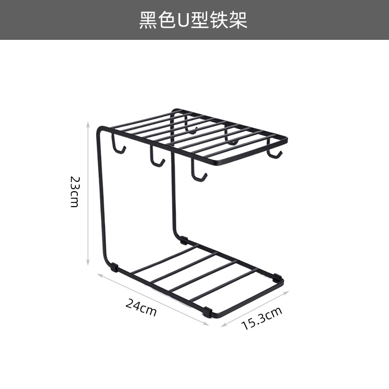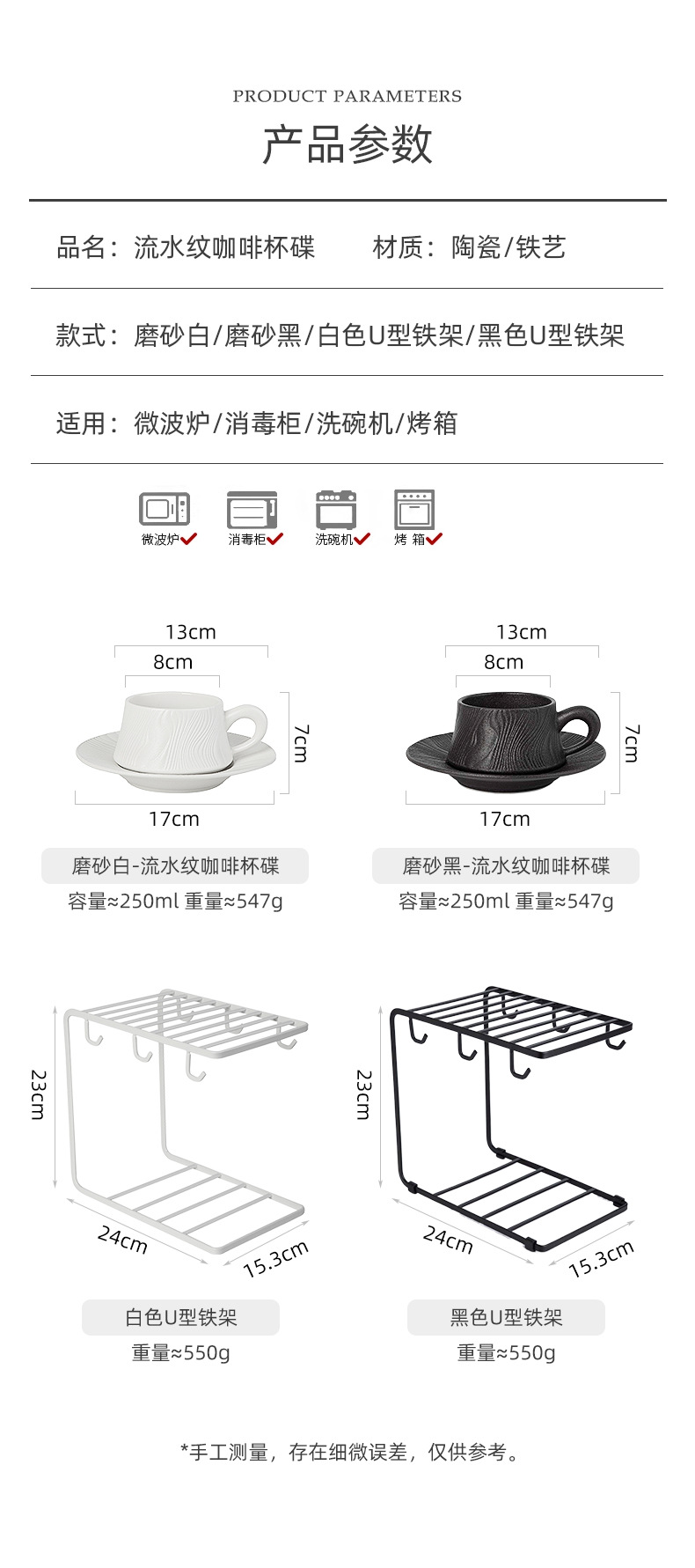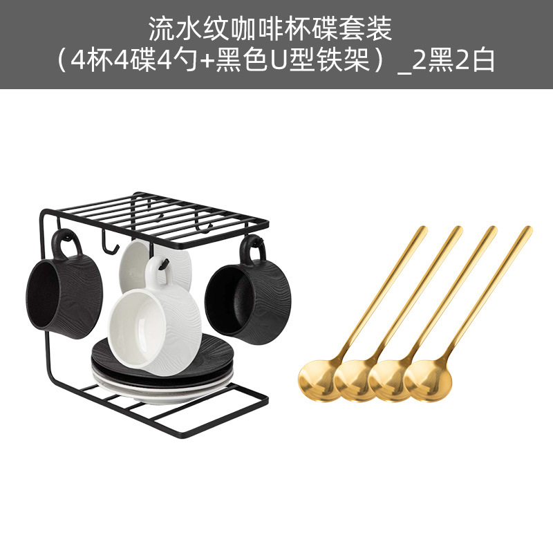• 매트 블랙 2개 매트 화이트 물무늬 컵과 접시 2개 + 블랙 선반