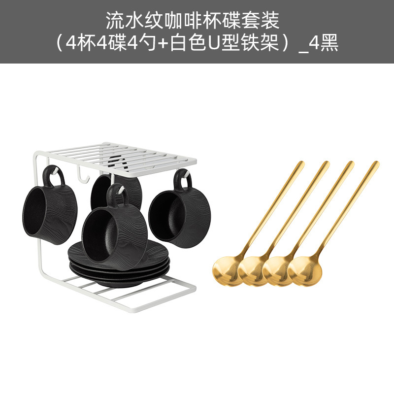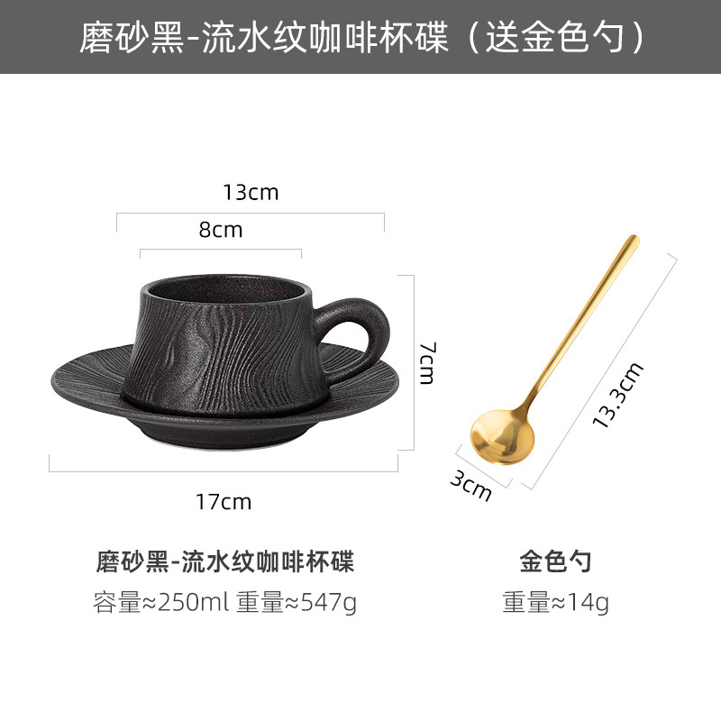 • 무광 블랙 워터 패턴 커피 컵(골드 스푼 포함)