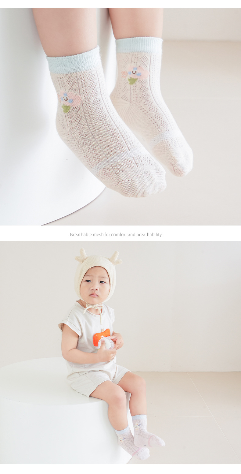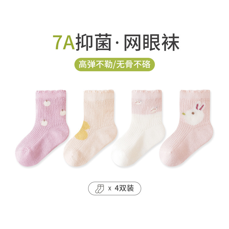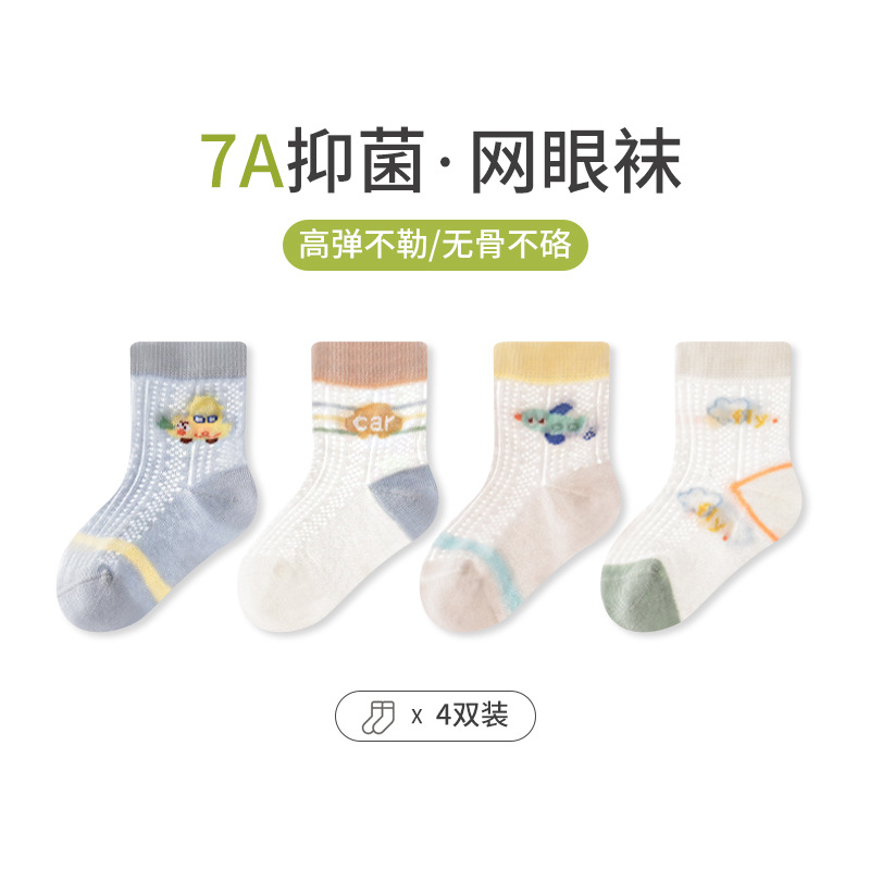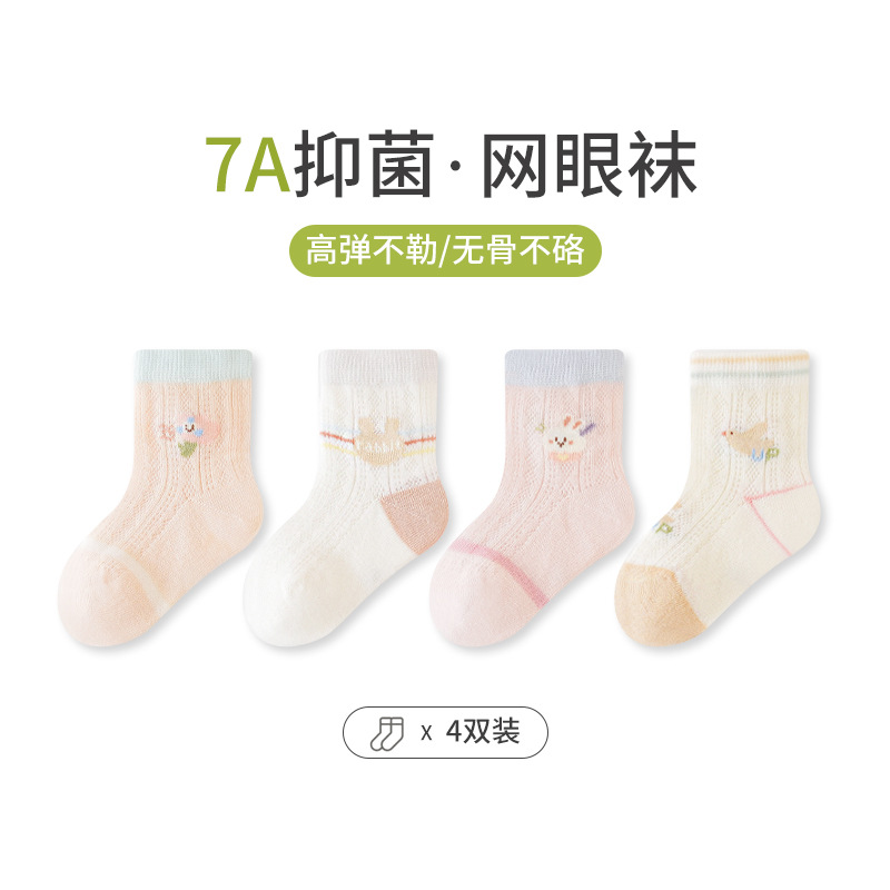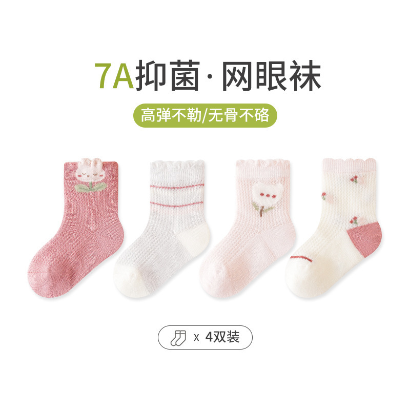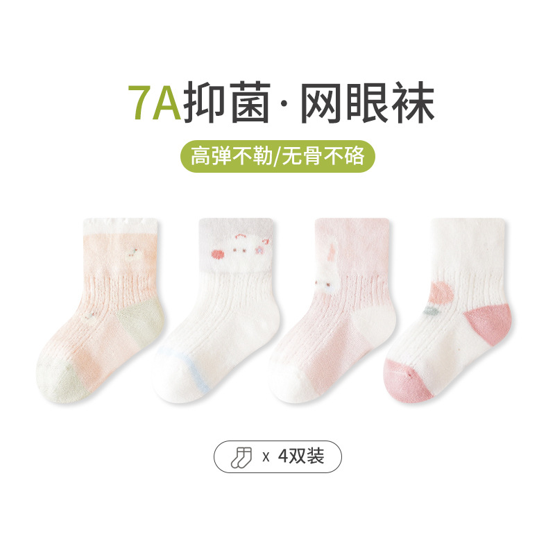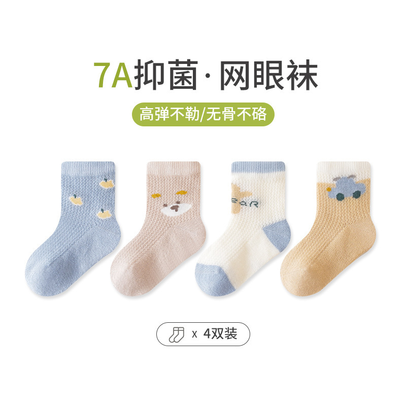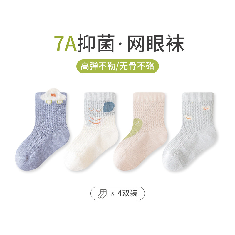 엄선된 4켤레 세트 아동 메쉬 양말, 코마사 면 소재 아기 중목 양말, 무봉제 발목 조임 없는 아동 양말 A급스토어 가기
