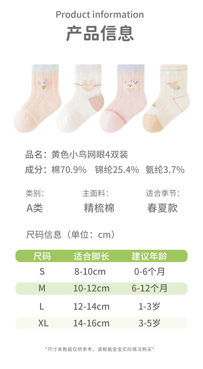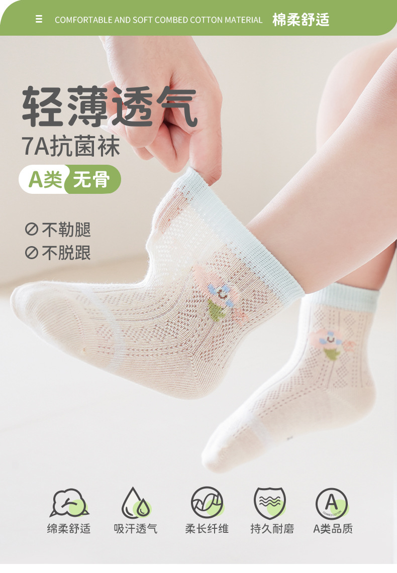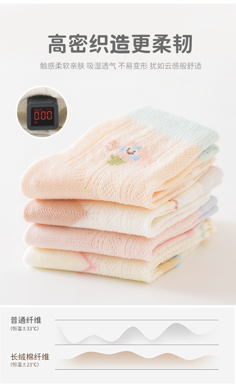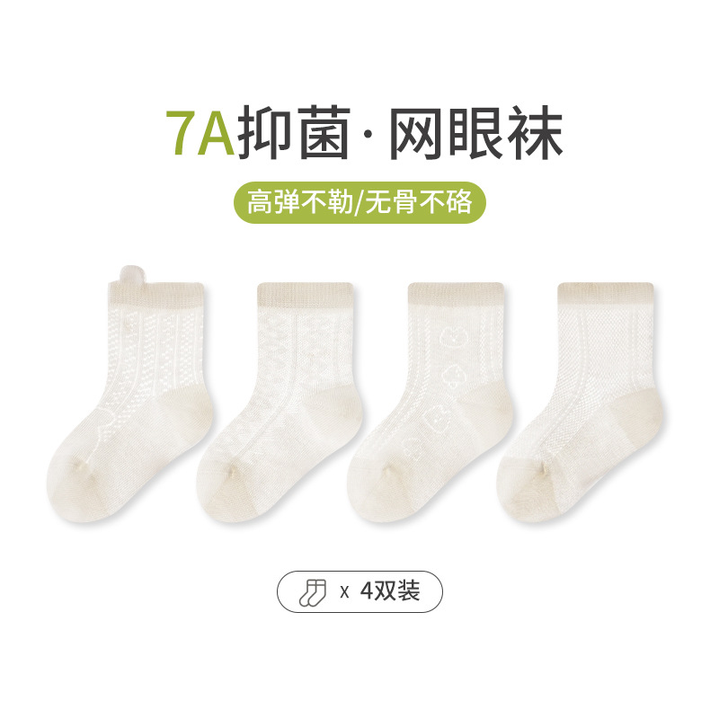 엄선된 4켤레 세트 아동 메쉬 양말, 코마사 면 소재 아기 중목 양말, 무봉제 발목 조임 없는 아동 양말 A급