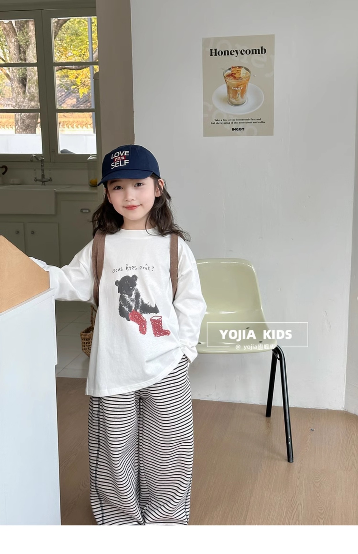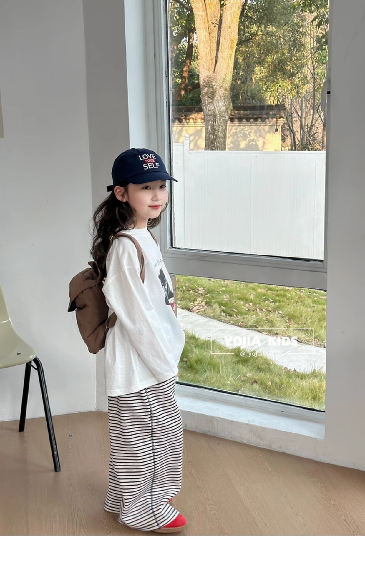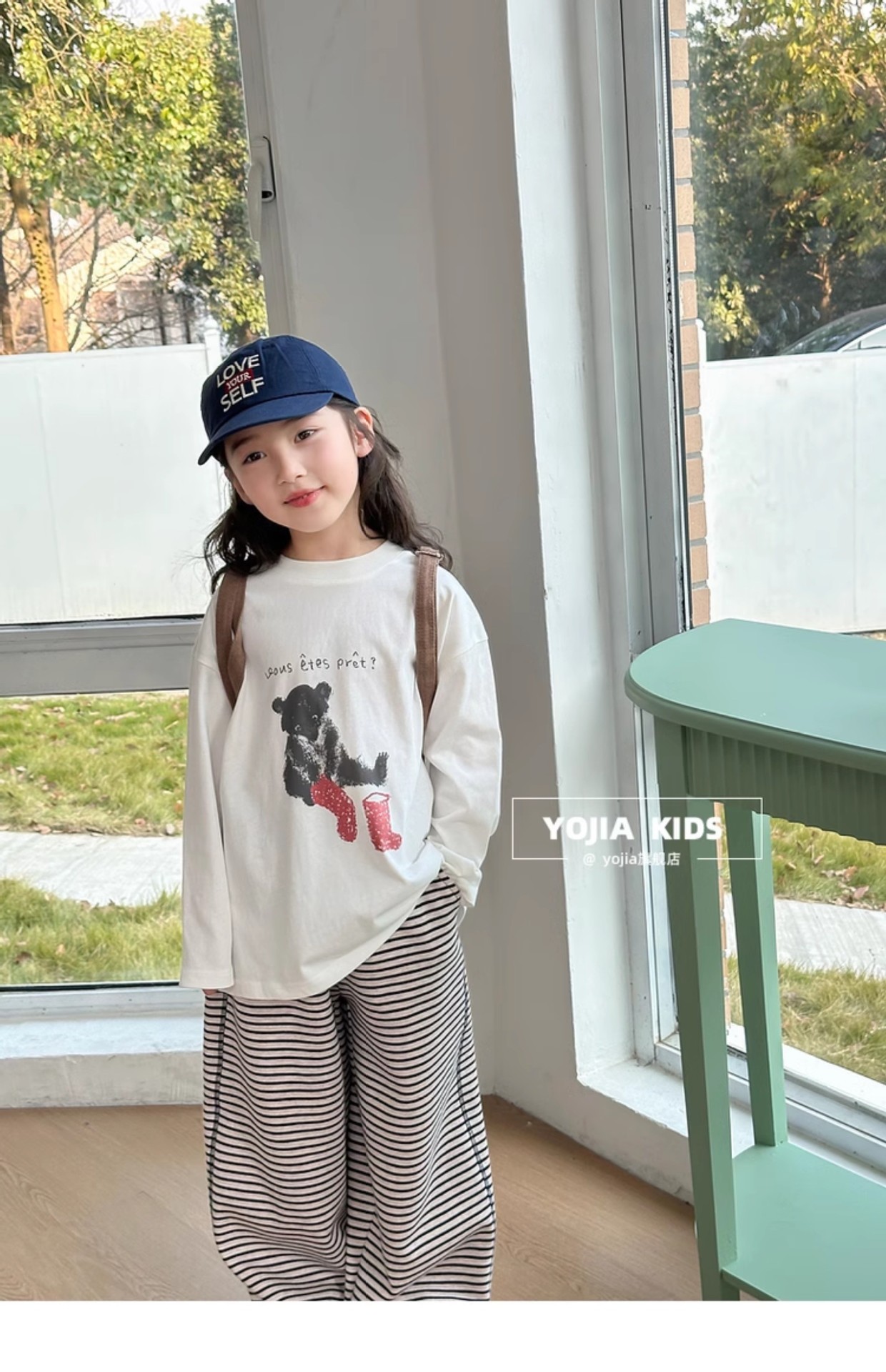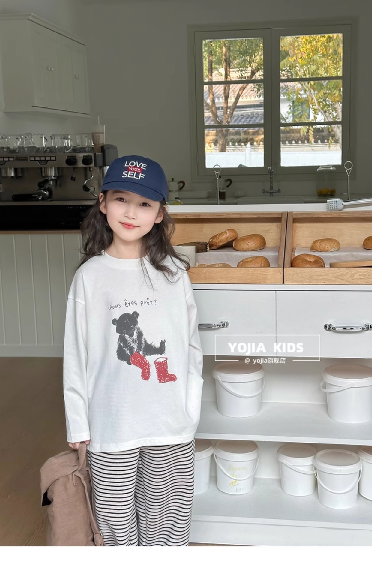 YOJIA 소녀 바지 셔츠 봄과 가을 2025 새로운 올 매치 코튼 어린 소녀 긴팔 티셔츠 어린이 최고 봄스토어 가기