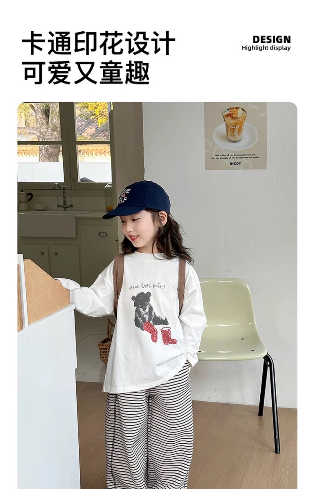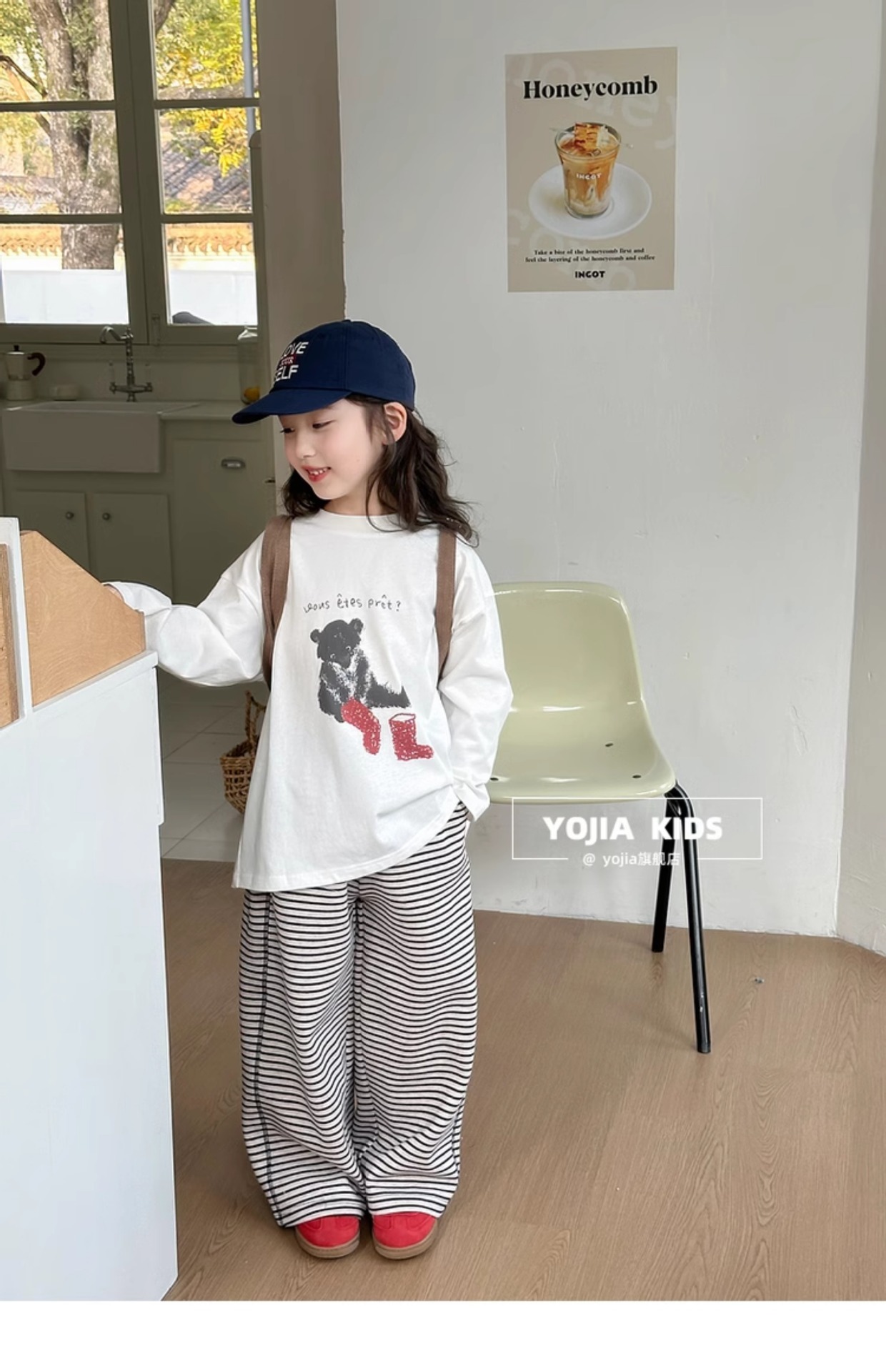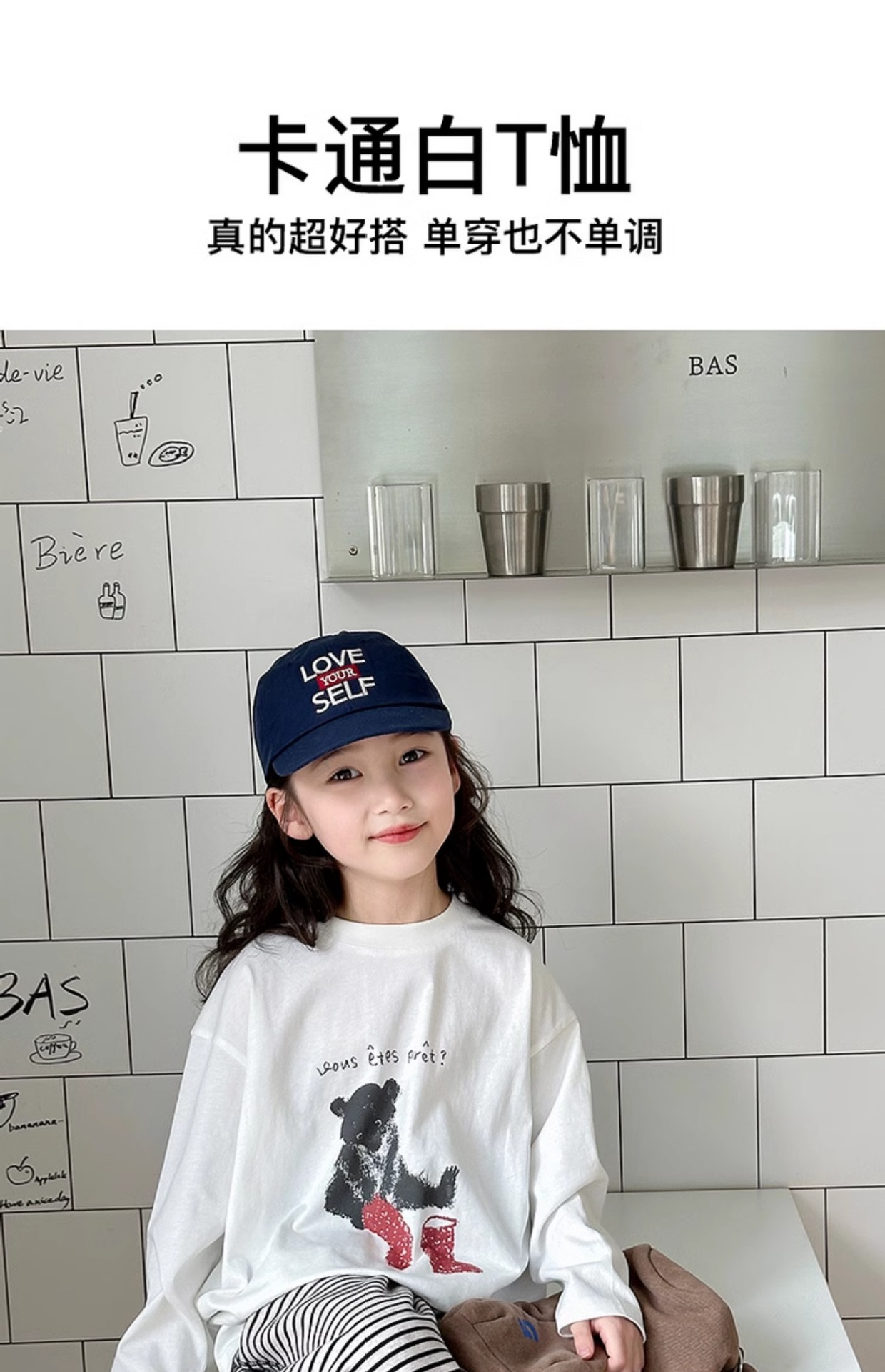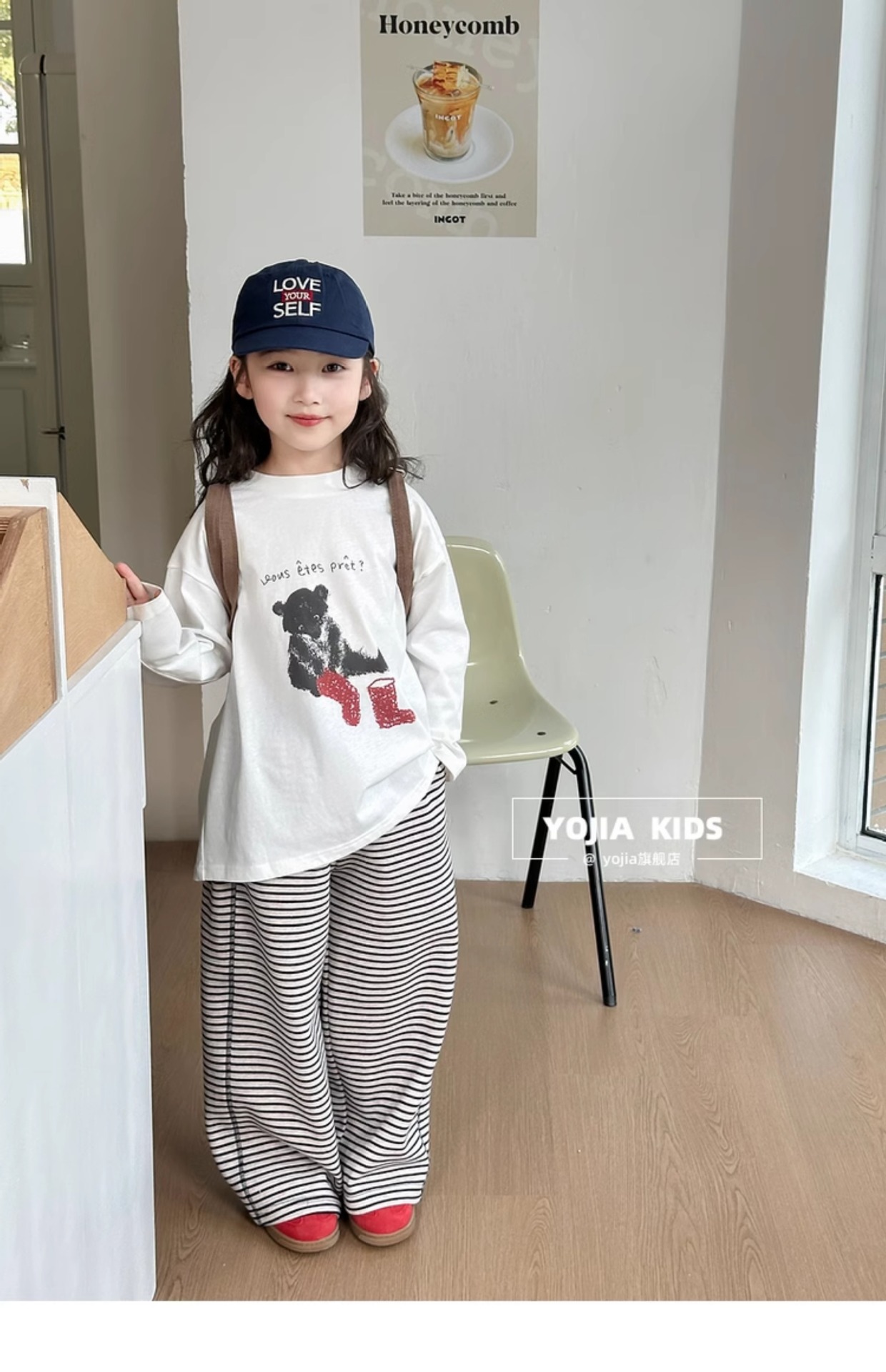 YOJIA 소녀 바지 셔츠 봄과 가을 2025 새로운 올 매치 코튼 어린 소녀 긴팔 티셔츠 어린이 최고 봄스토어 가기