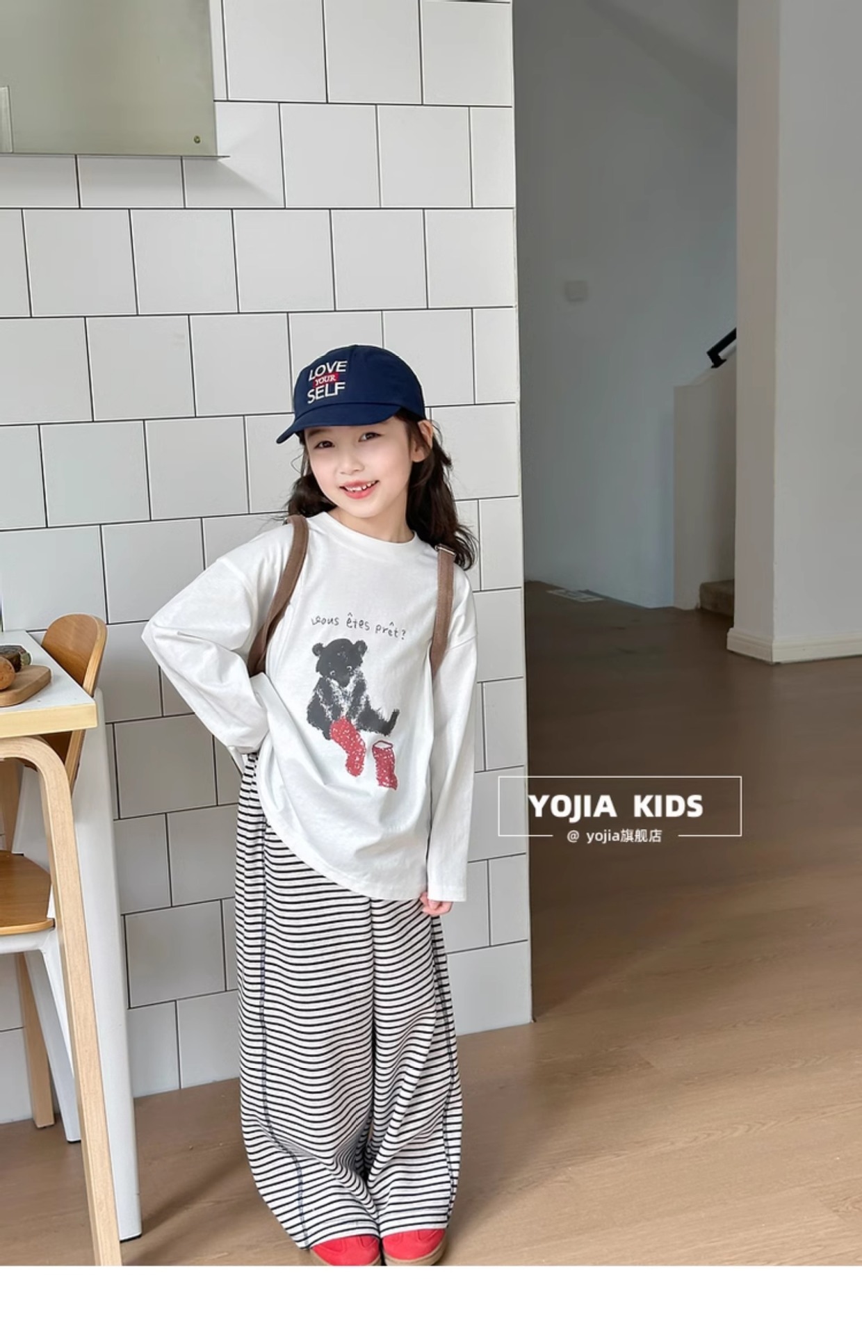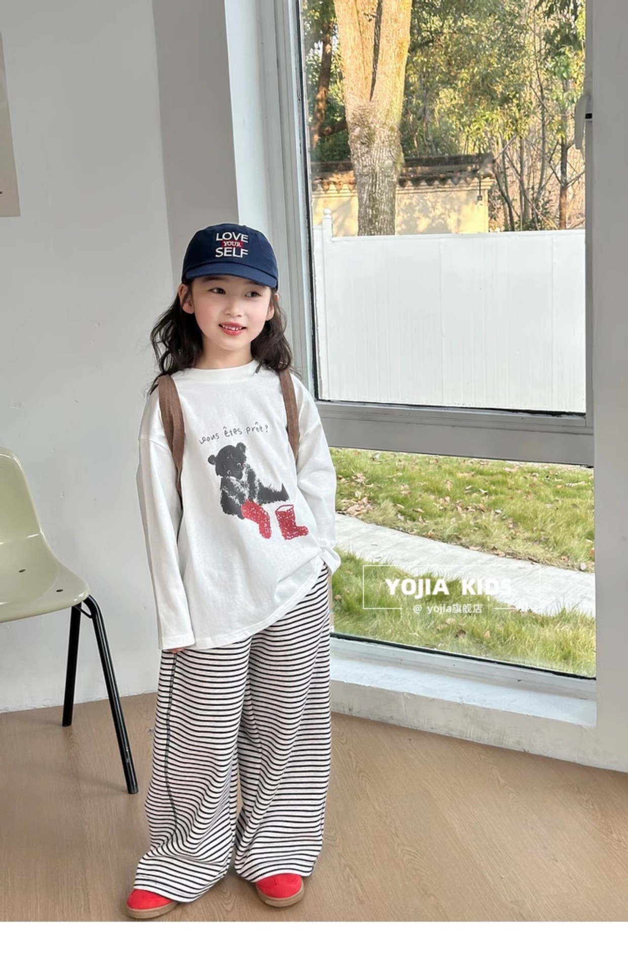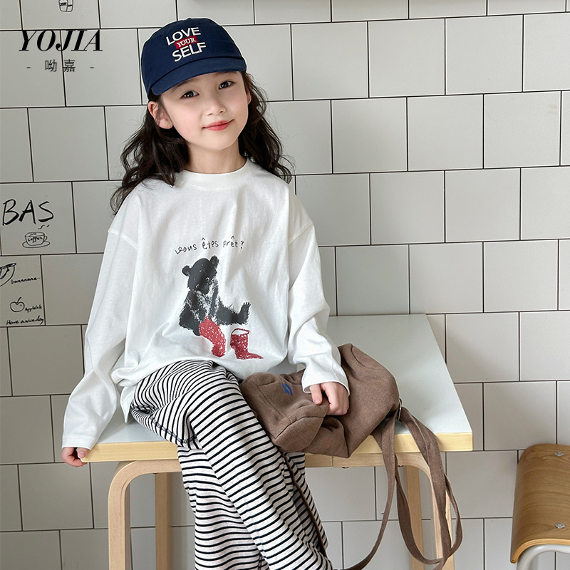 YOJIA 소녀 바지 셔츠 봄과 가을 2025 새로운 올 매치 코튼 어린 소녀 긴팔 티셔츠 어린이 최고 봄