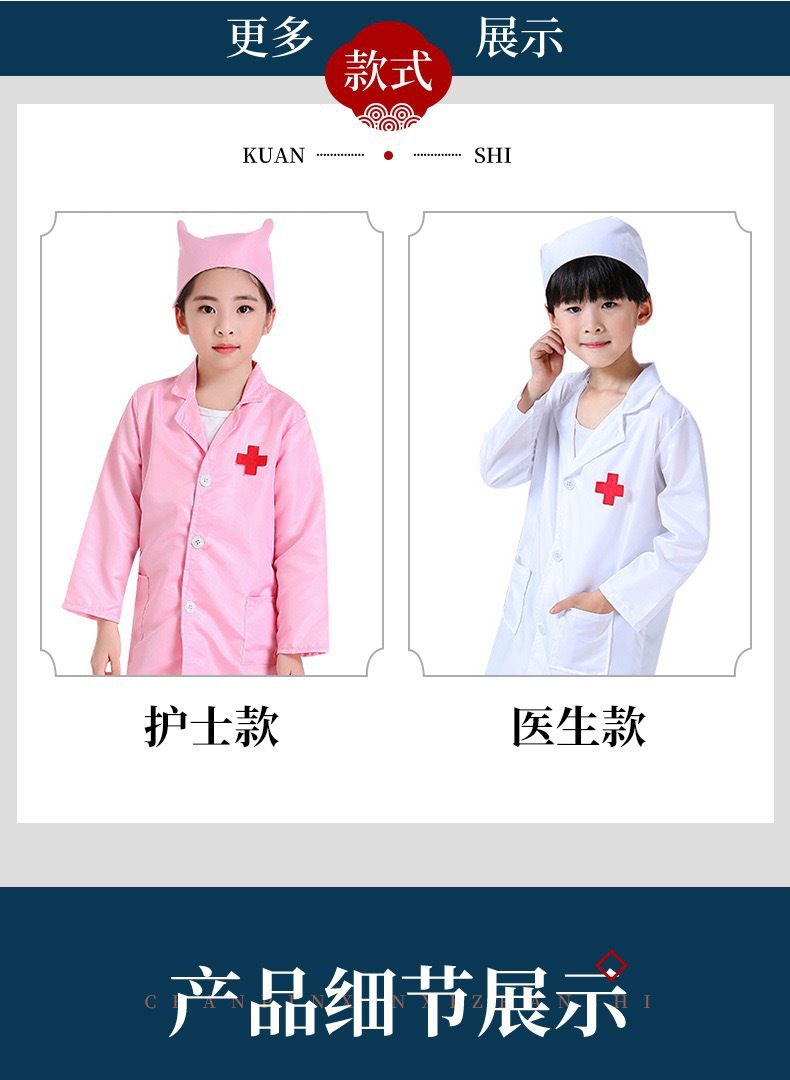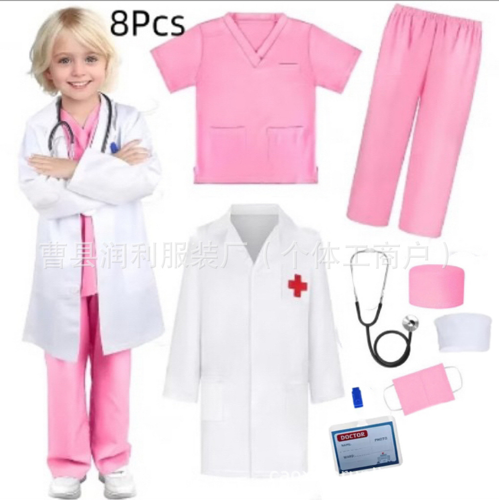 어린이 의사 의류 화이트 코트 간호사 의류 수술 의류 치과 구강 전문 롤 플레잉 의류 과학 실험실 의류스토어 가기