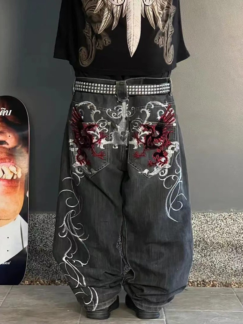 크로스보더 아메리칸 레트로 루즈핏 청바지 남성 스트리트 힙합 프린트 트렌디 만능 하라주쿠 와이드 팬츠 도매스토어 가기