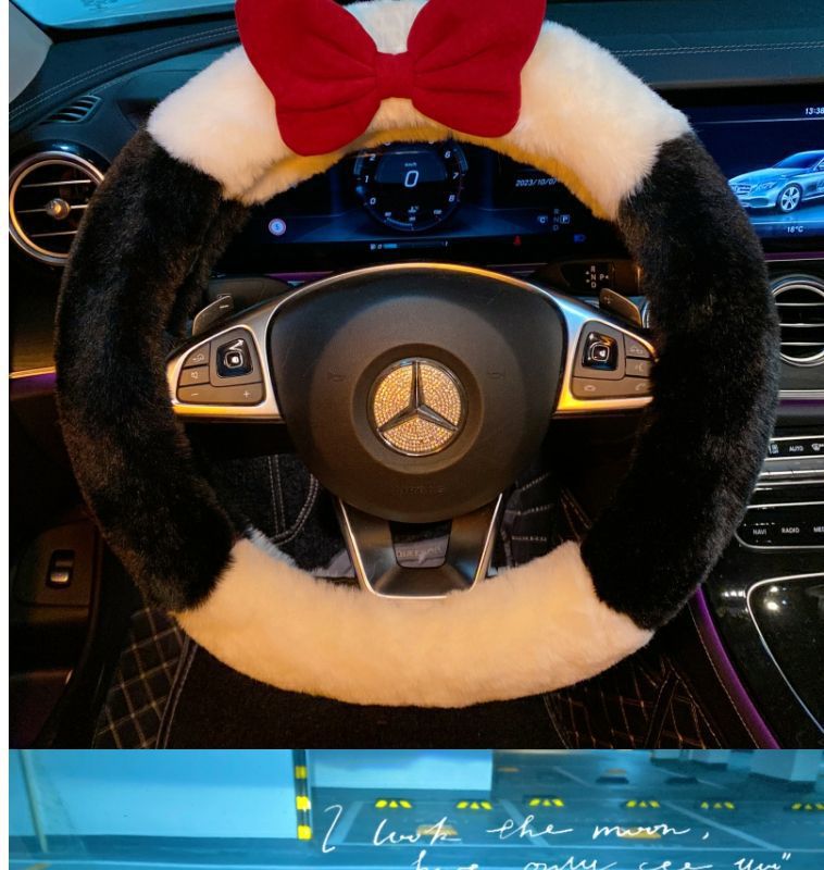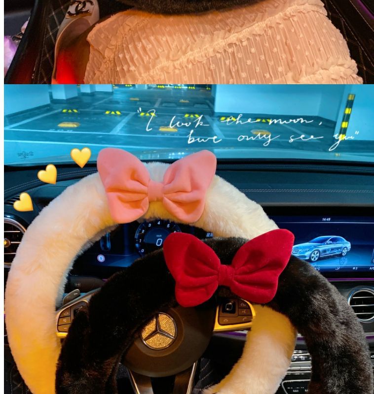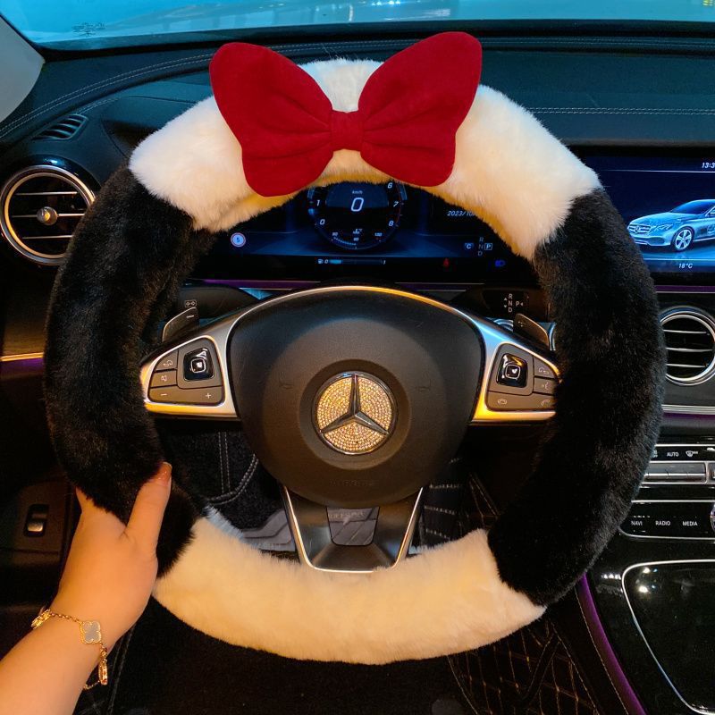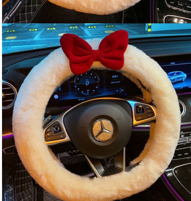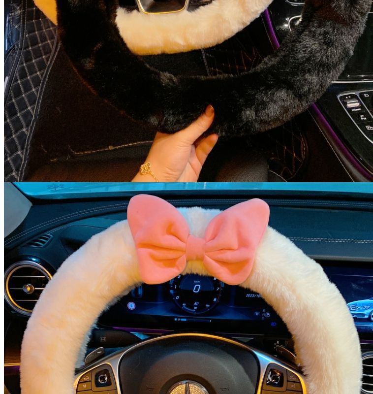 탈출 공주 귀여운 스티어링 휠 커버 여성의 활 겨울 따뜻한 봉제 장식 자동차 핸들 커버 사계절