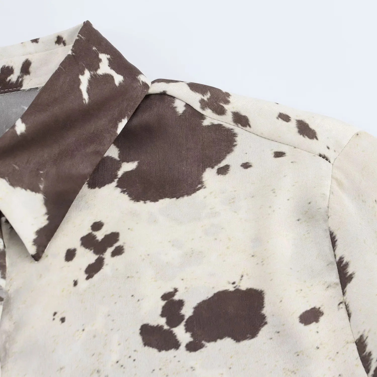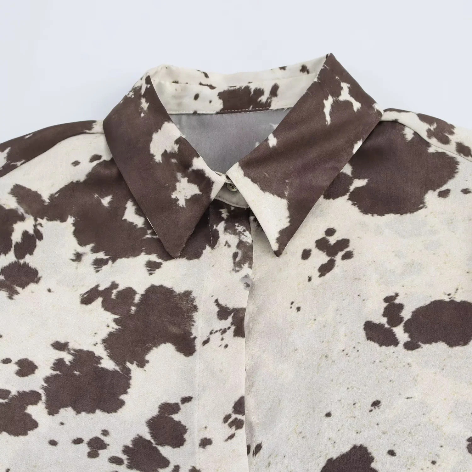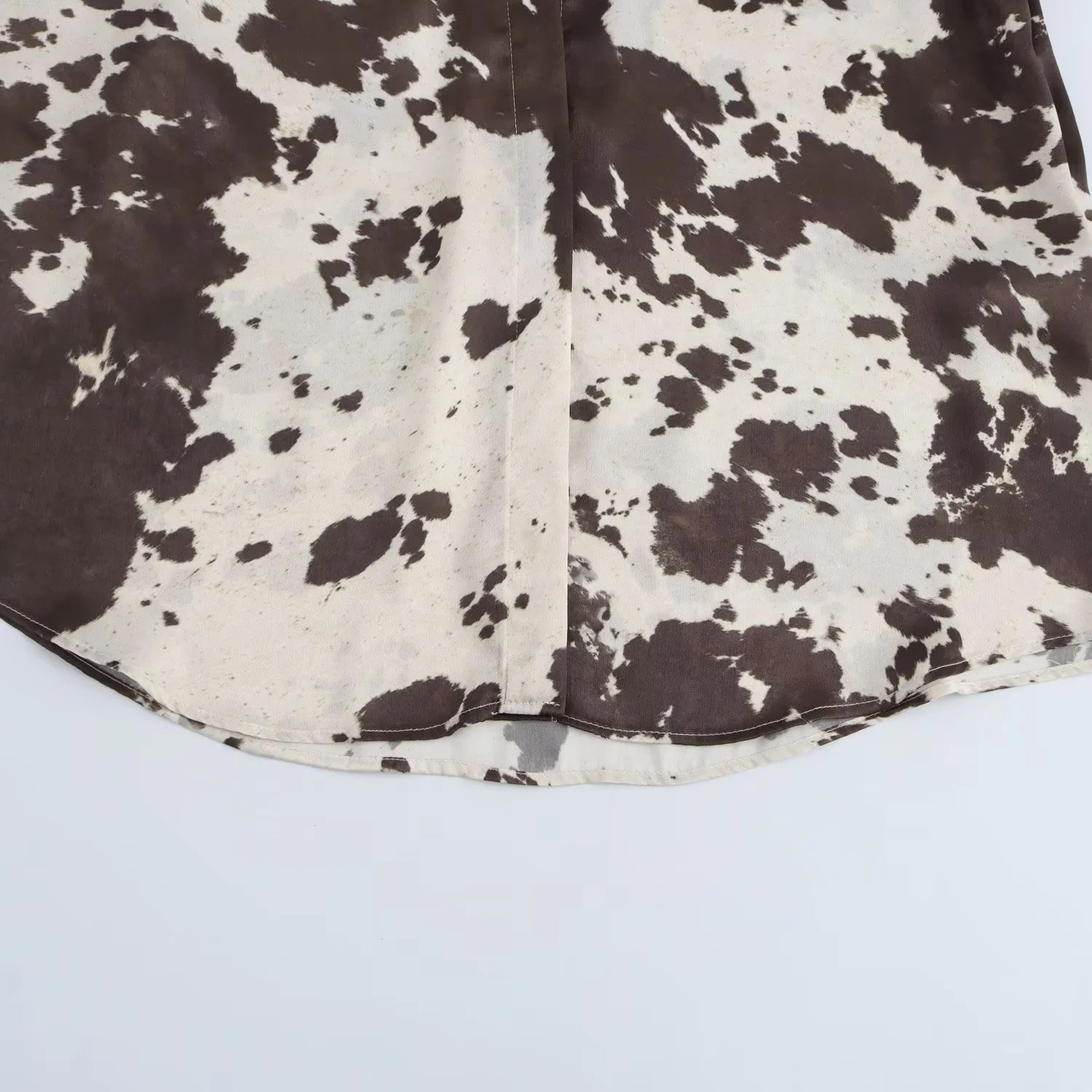 국경 간 유럽과 미국 여성의 AliExpress INS 폭발 동물 인쇄 셔츠 벨트 실크 질감 원피스 세트
