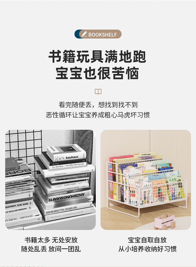 책장 어린이 데스크탑 그림책 보관 랙 아기의 책 보관 상자 책상 선반 침대 옆 베이 창 작은 책장