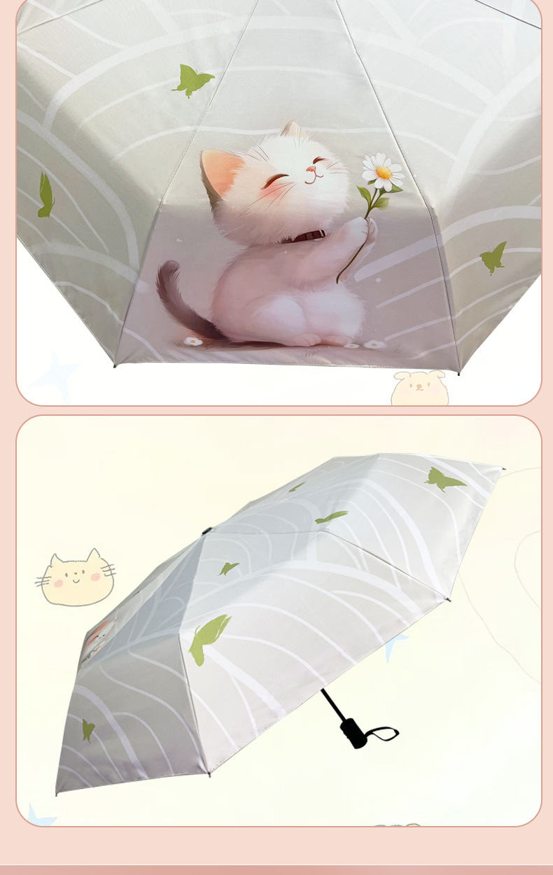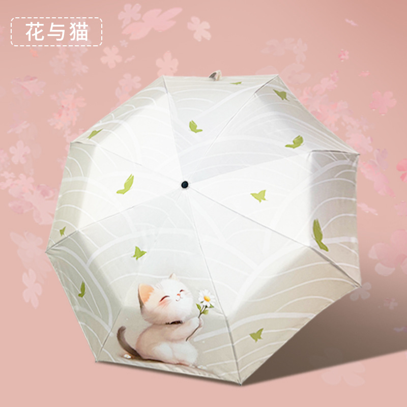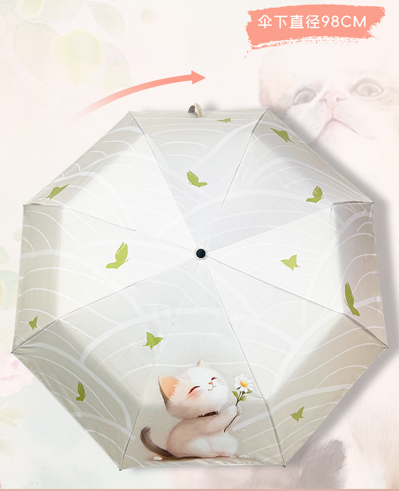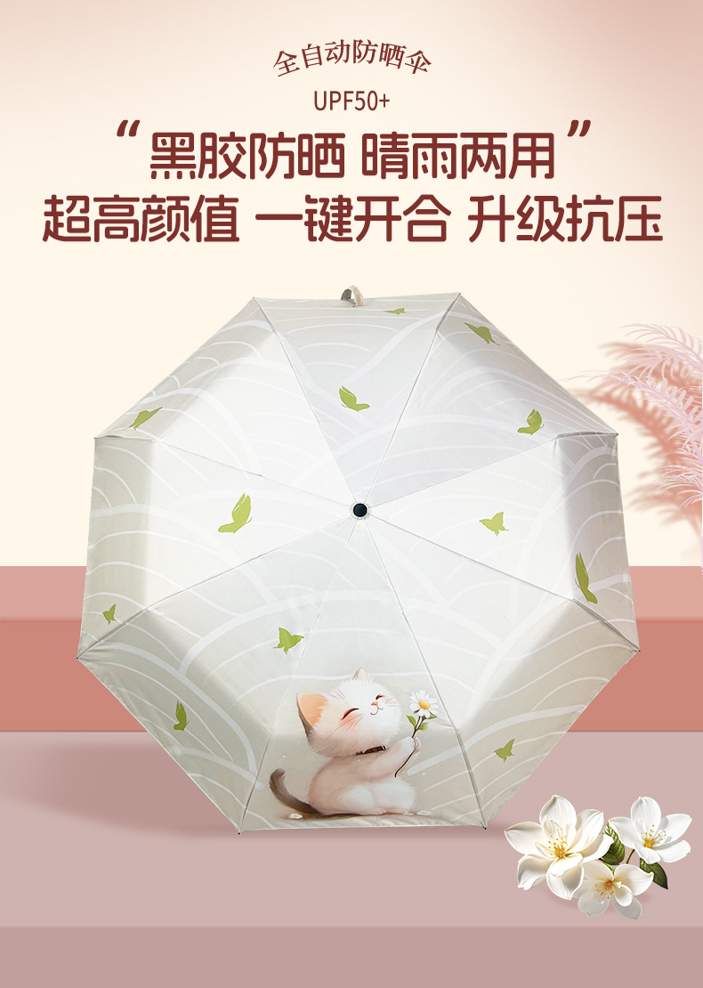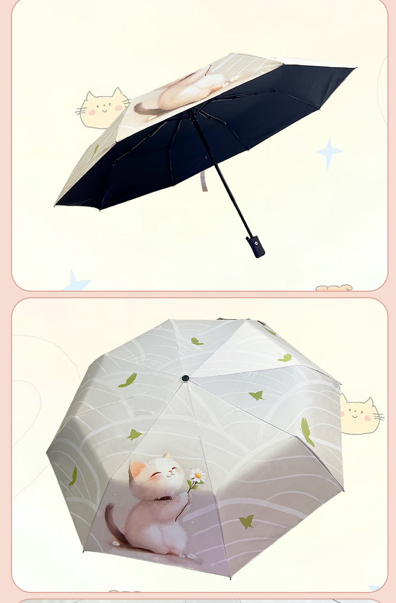 완전 자동 우산 맑고 비 이중 목적 검은 고무 3 배 태양 보호 UV 보호 태양 우산 햇빛 귀여운 고양이스토어 가기