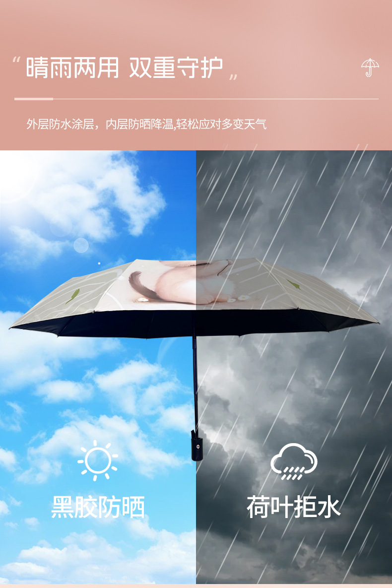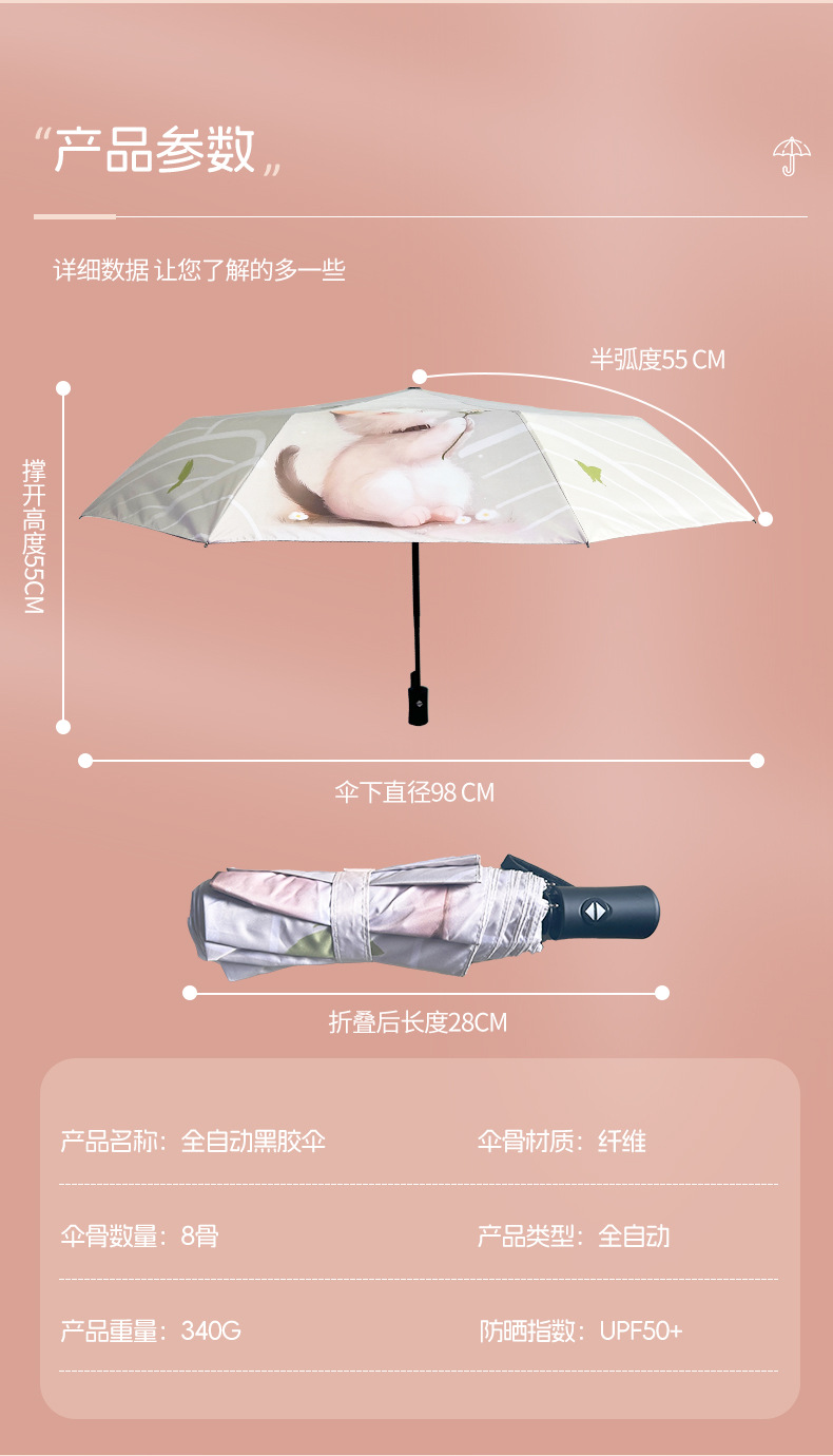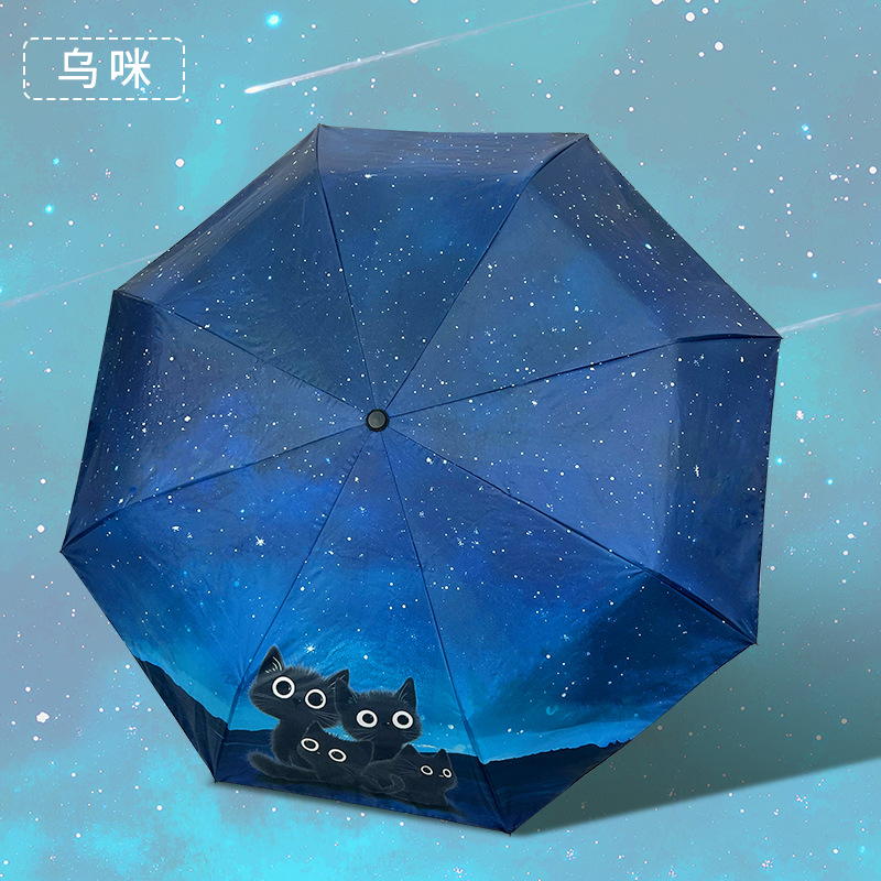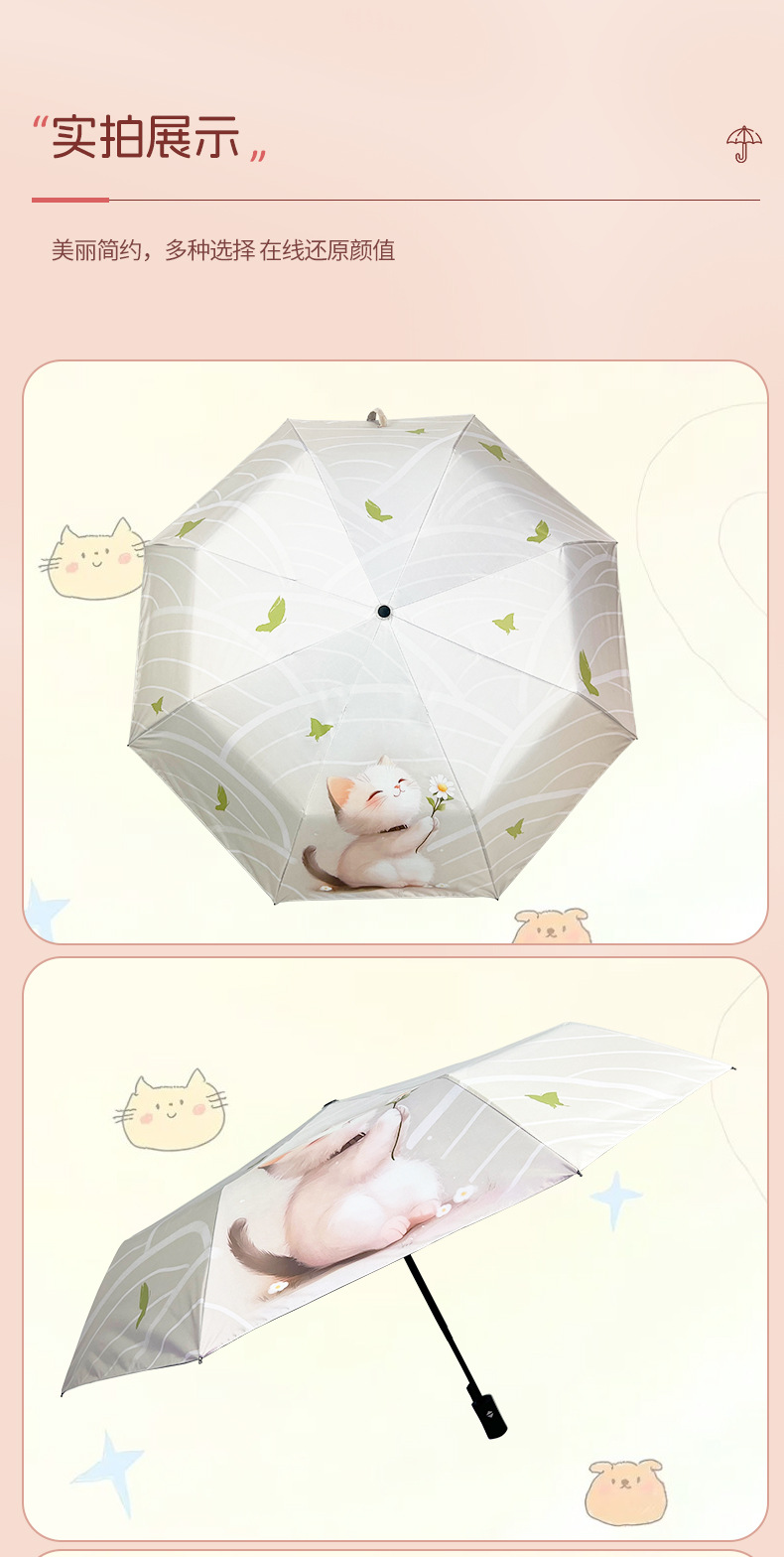 완전 자동 우산 맑고 비 이중 목적 검은 고무 3 배 태양 보호 UV 보호 태양 우산 햇빛 귀여운 고양이스토어 가기