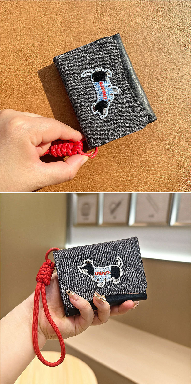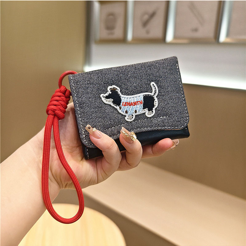 한국 스타일 만화 귀여운 작은 지갑 Ins 닥스 헝겊 스티커 다기능 여성의 30% 접이식 휴대용 지갑 지갑스토어 가기