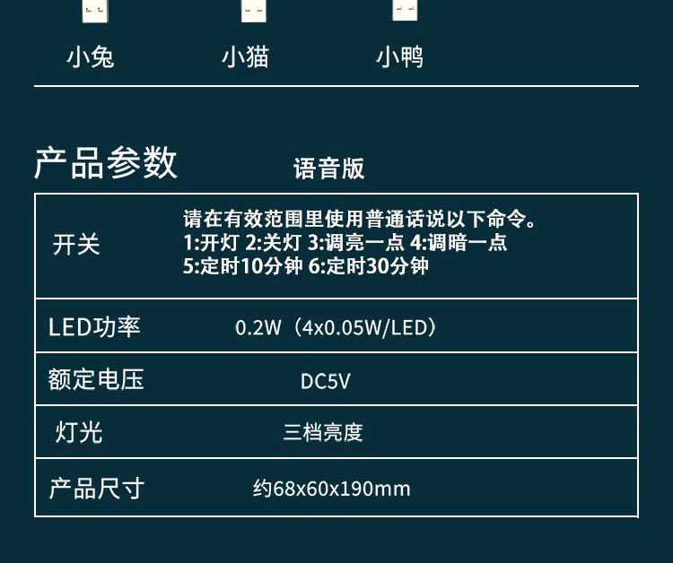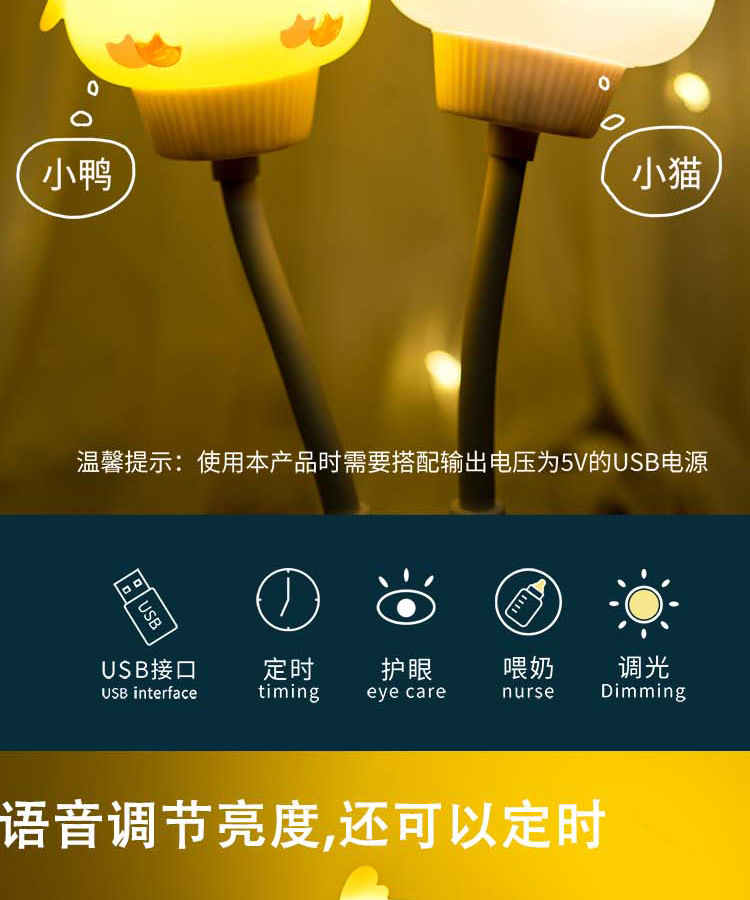스마트 음성 야간 토끼 창조적 인 귀여운 만화 어린이 방 기숙사 스트레이트 USB 빛 음성 제어 침대 옆 램프
