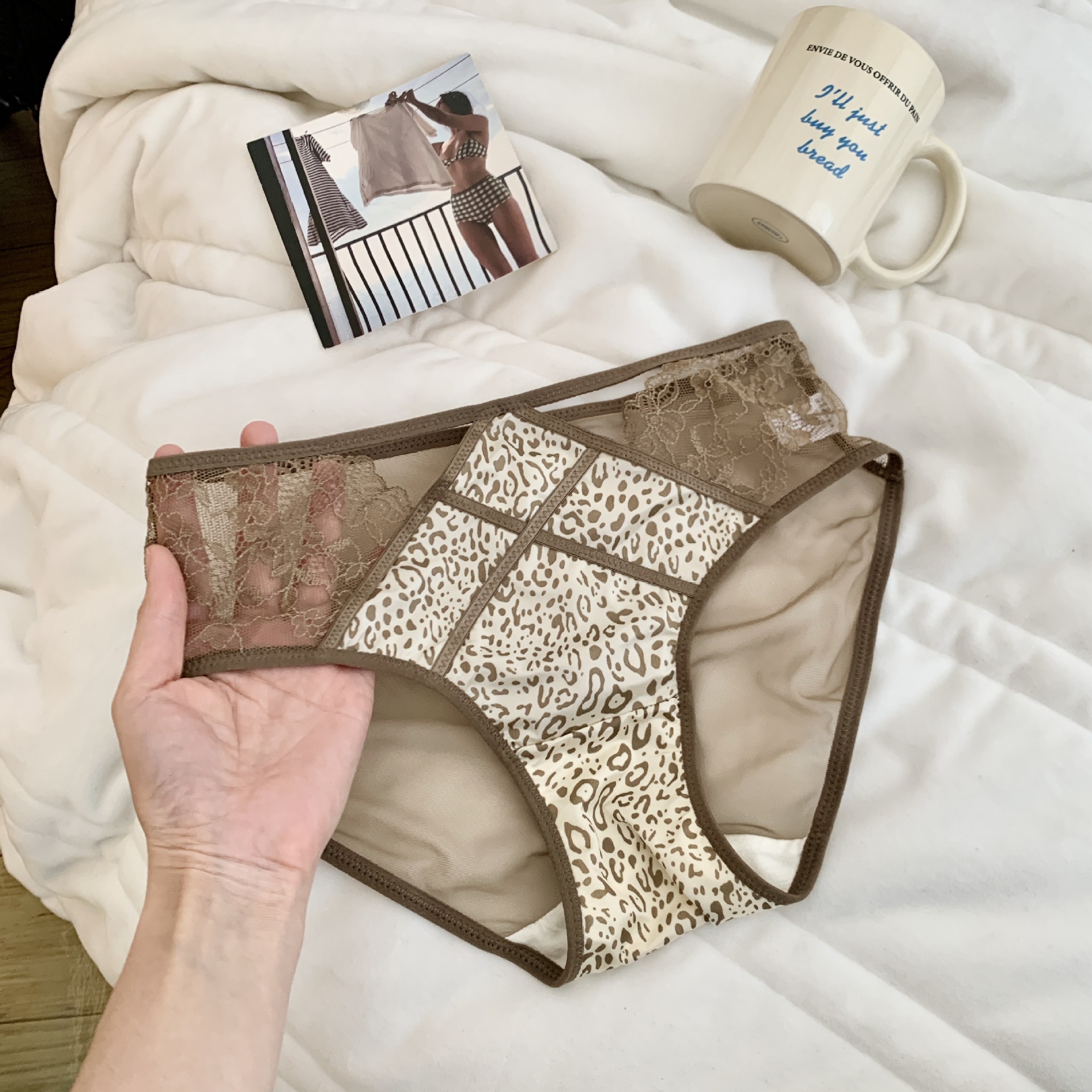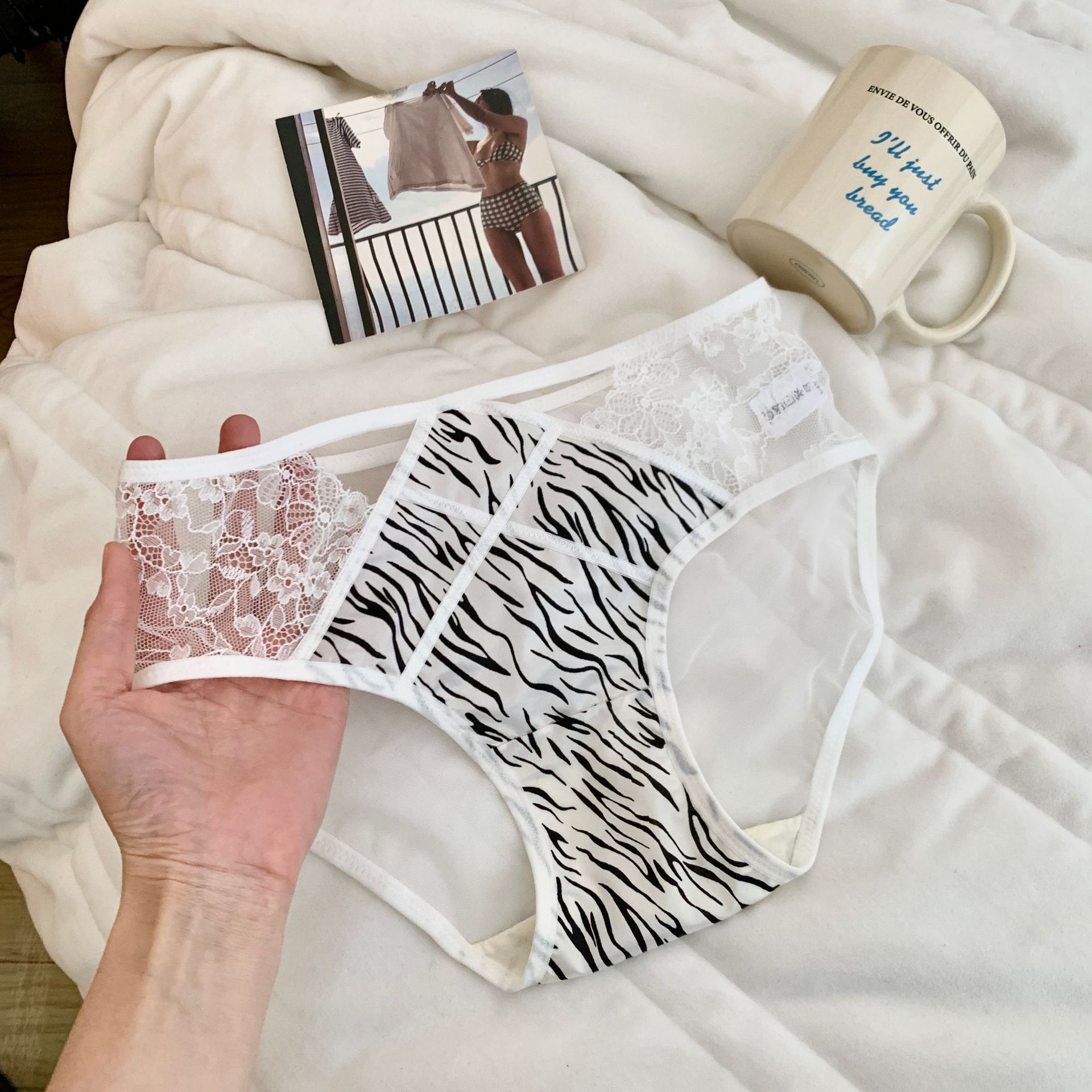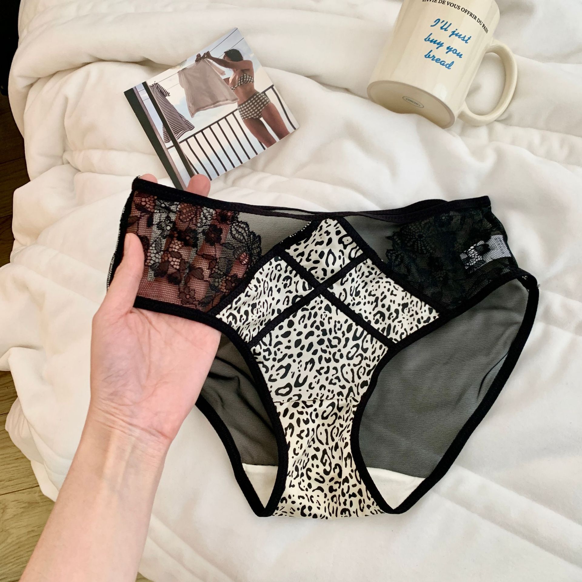 일본식 섹시한 레오파드 무늬 순수한 욕망 레이스 속옷 여성용 할로우 메쉬 스티칭 얼룩말 패턴 소녀 중간 허리 삼각형 반바지스토어 가기