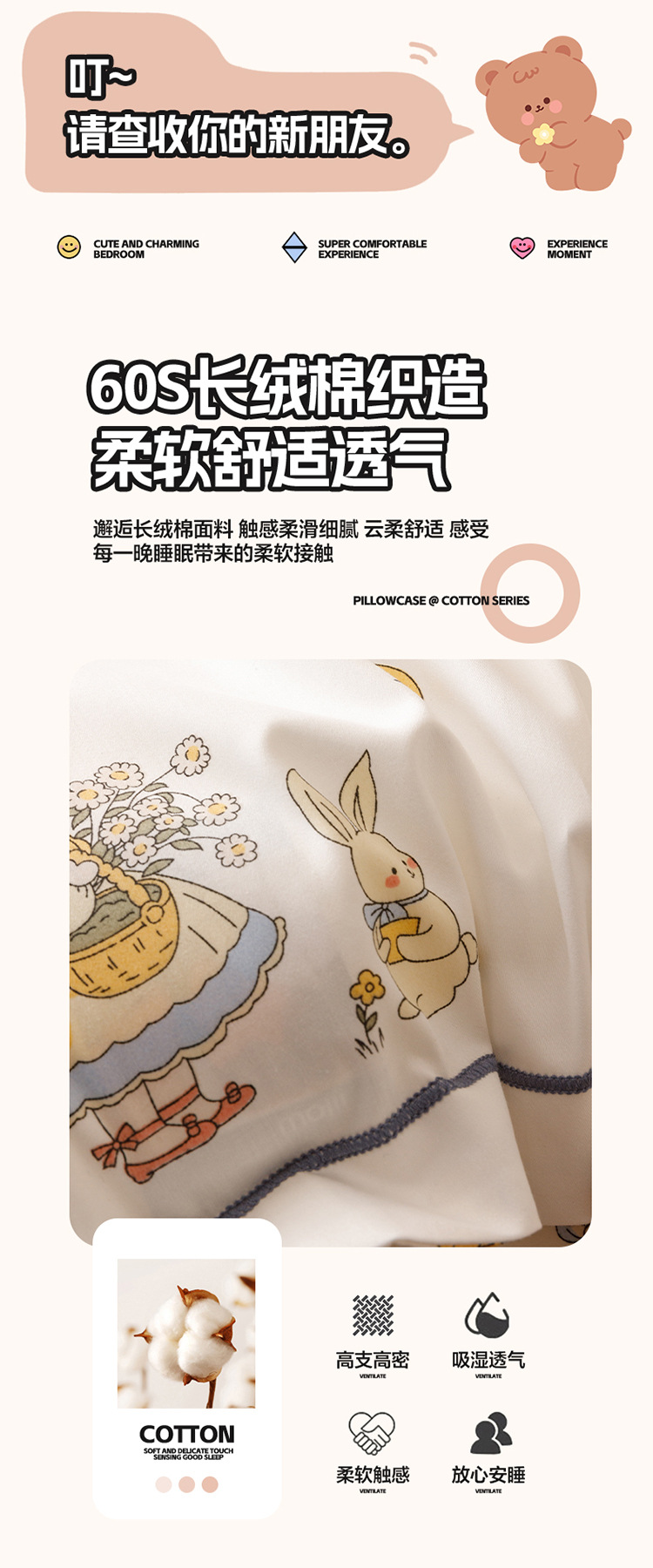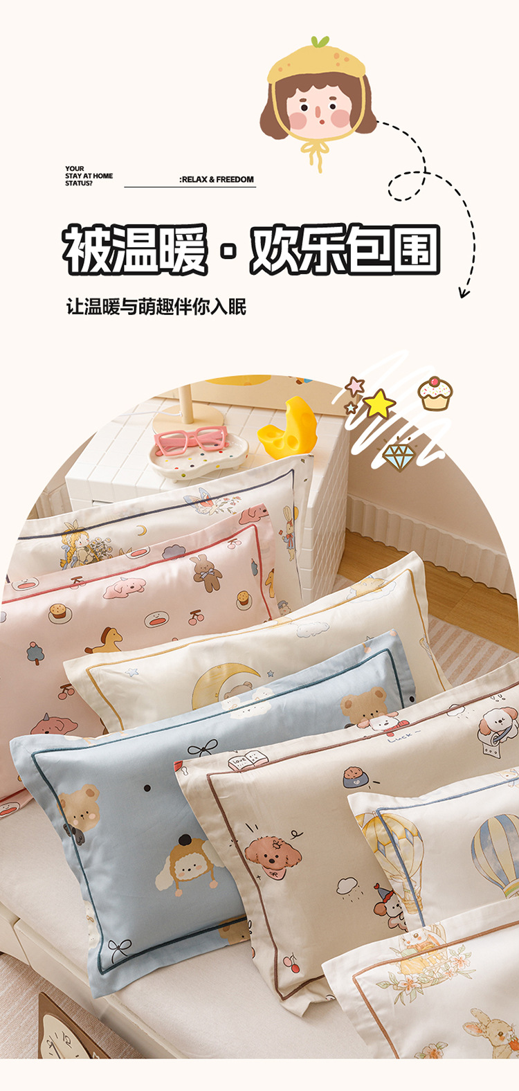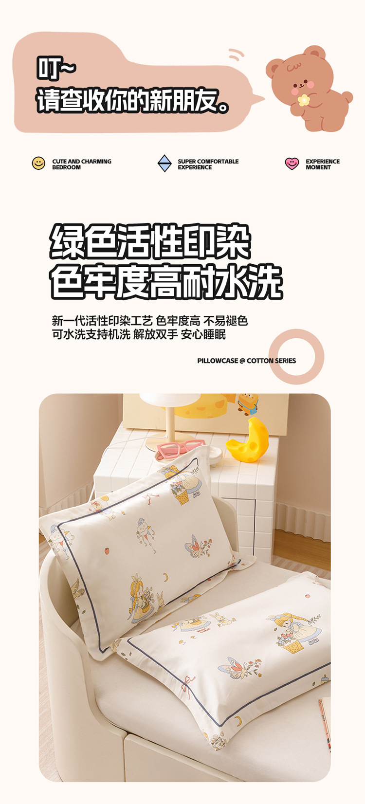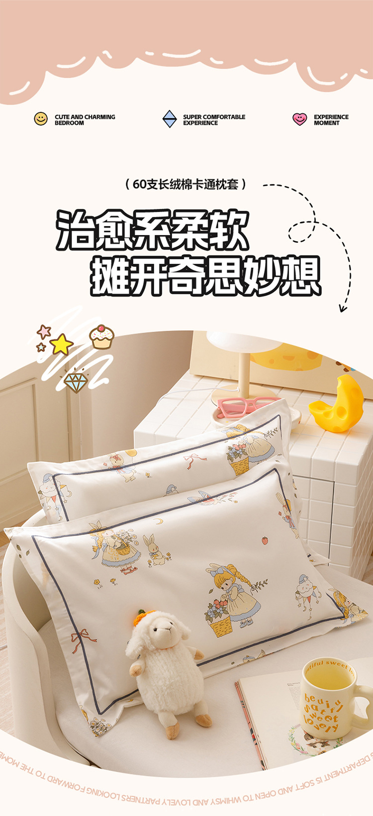 면 어린이 긴 스테이플 면화 베개 케이스 60 면 가정 만화 공주 작은 베개 케이스 30*50 머리카락 세대스토어 가기